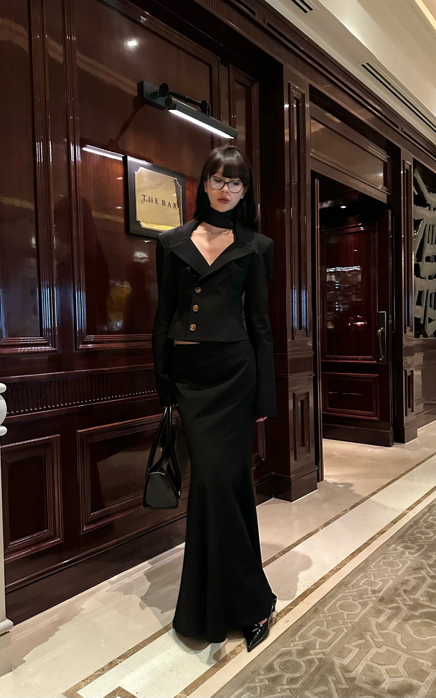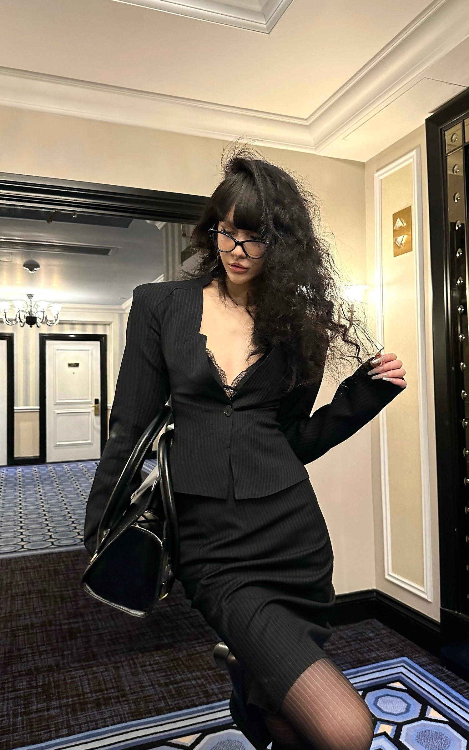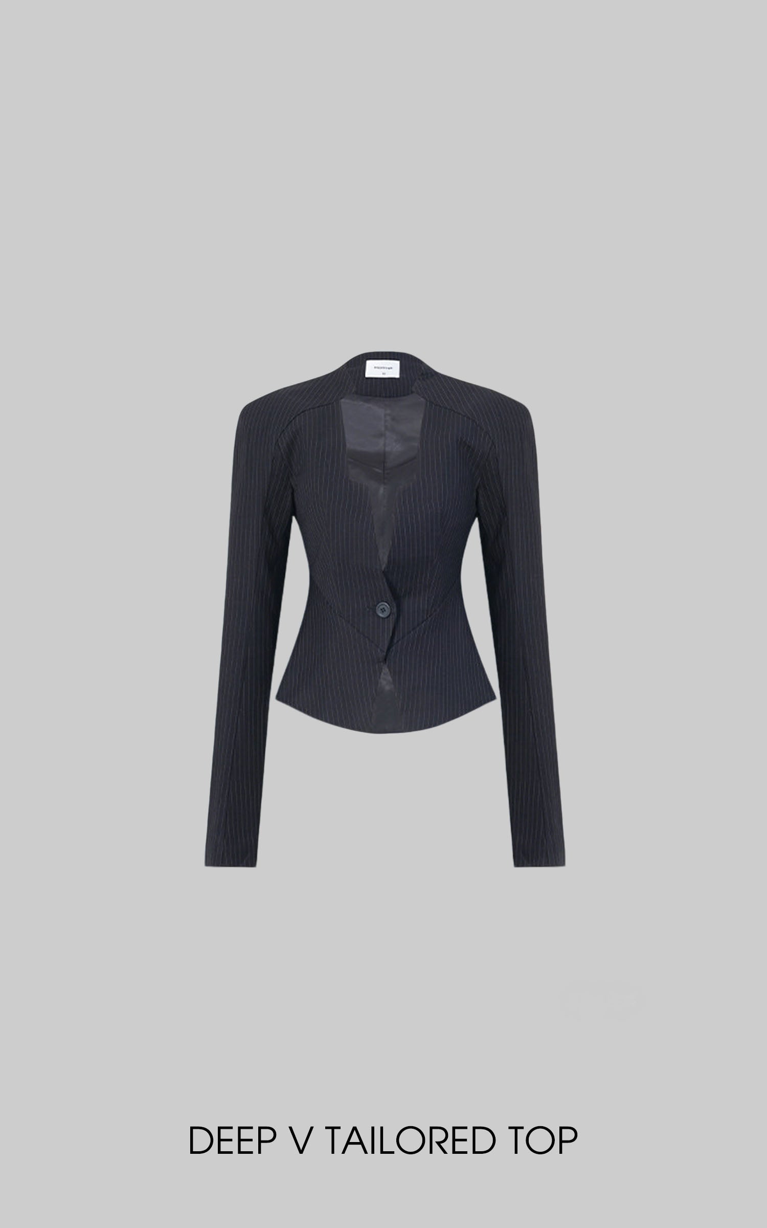0122stepll ディープVテーラードトップ&ローライズスカートセット