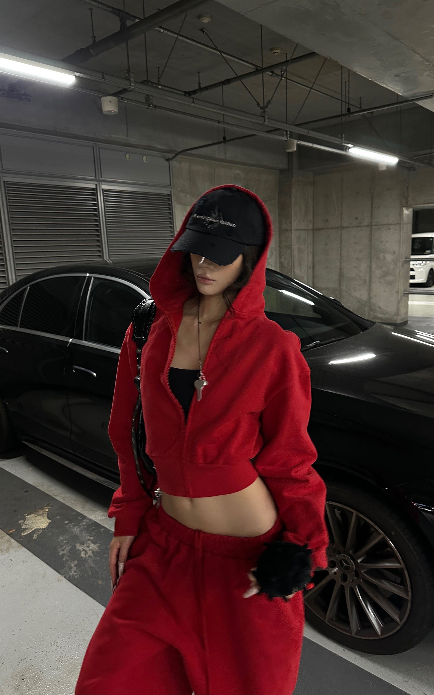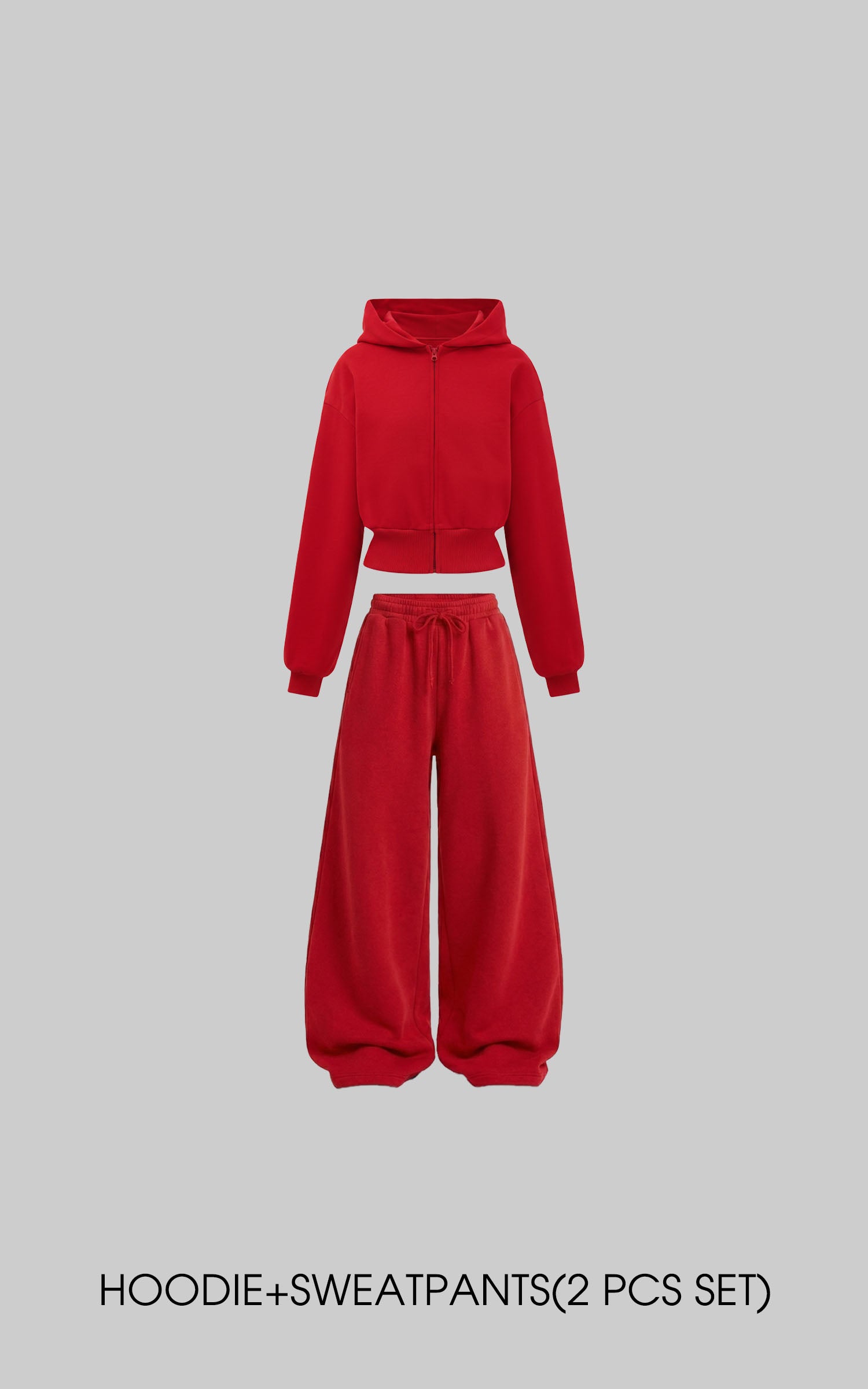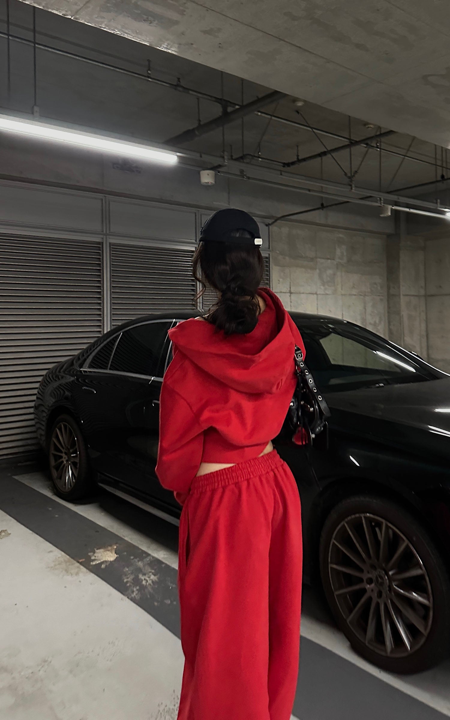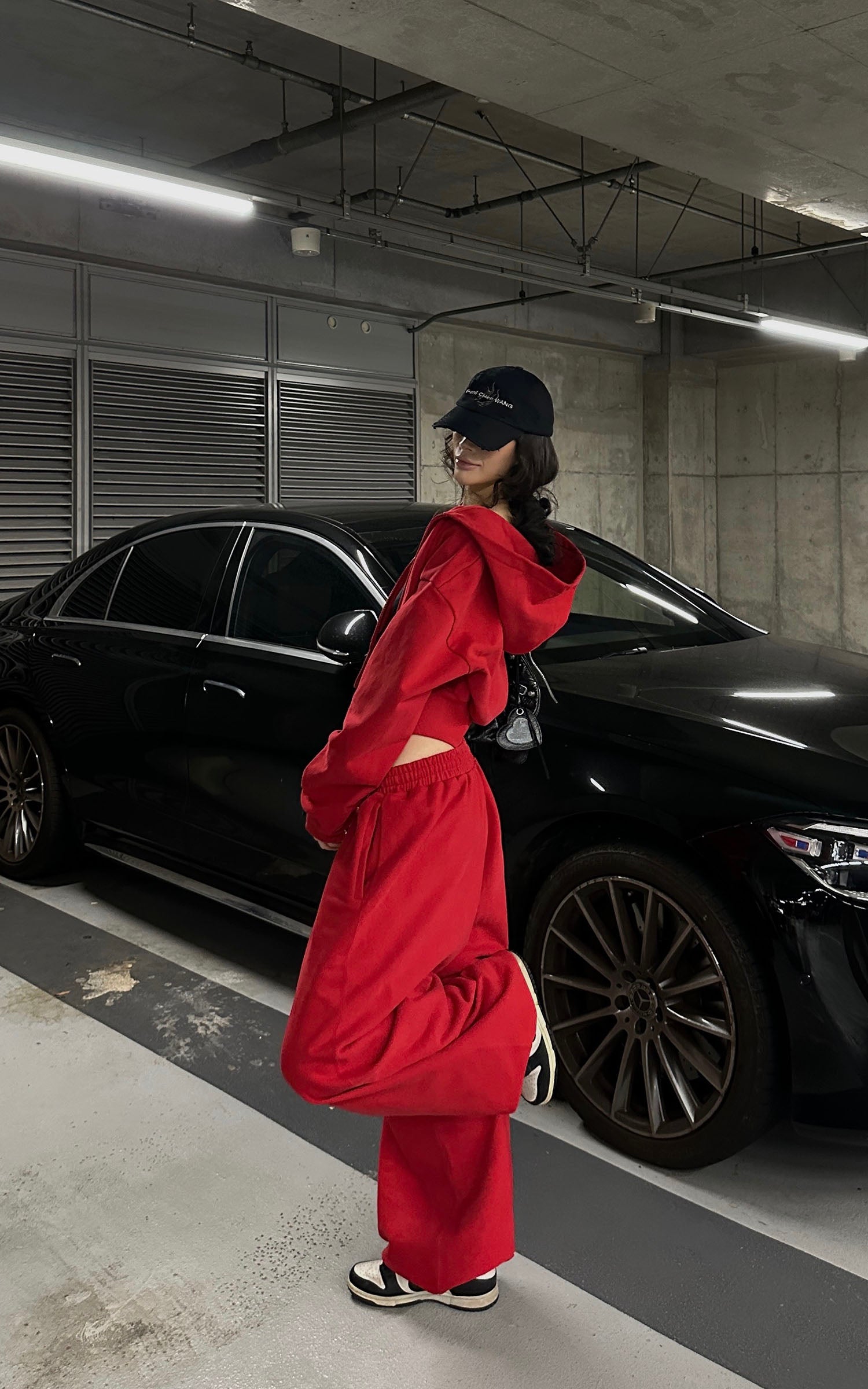 0122stepll クロップドジップフーディー&ワイドスウェットパンツ セット
