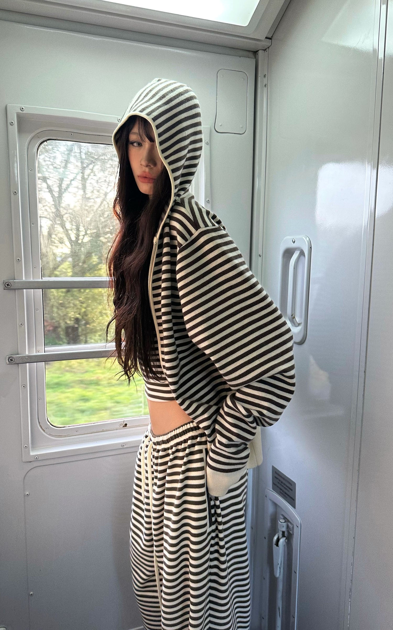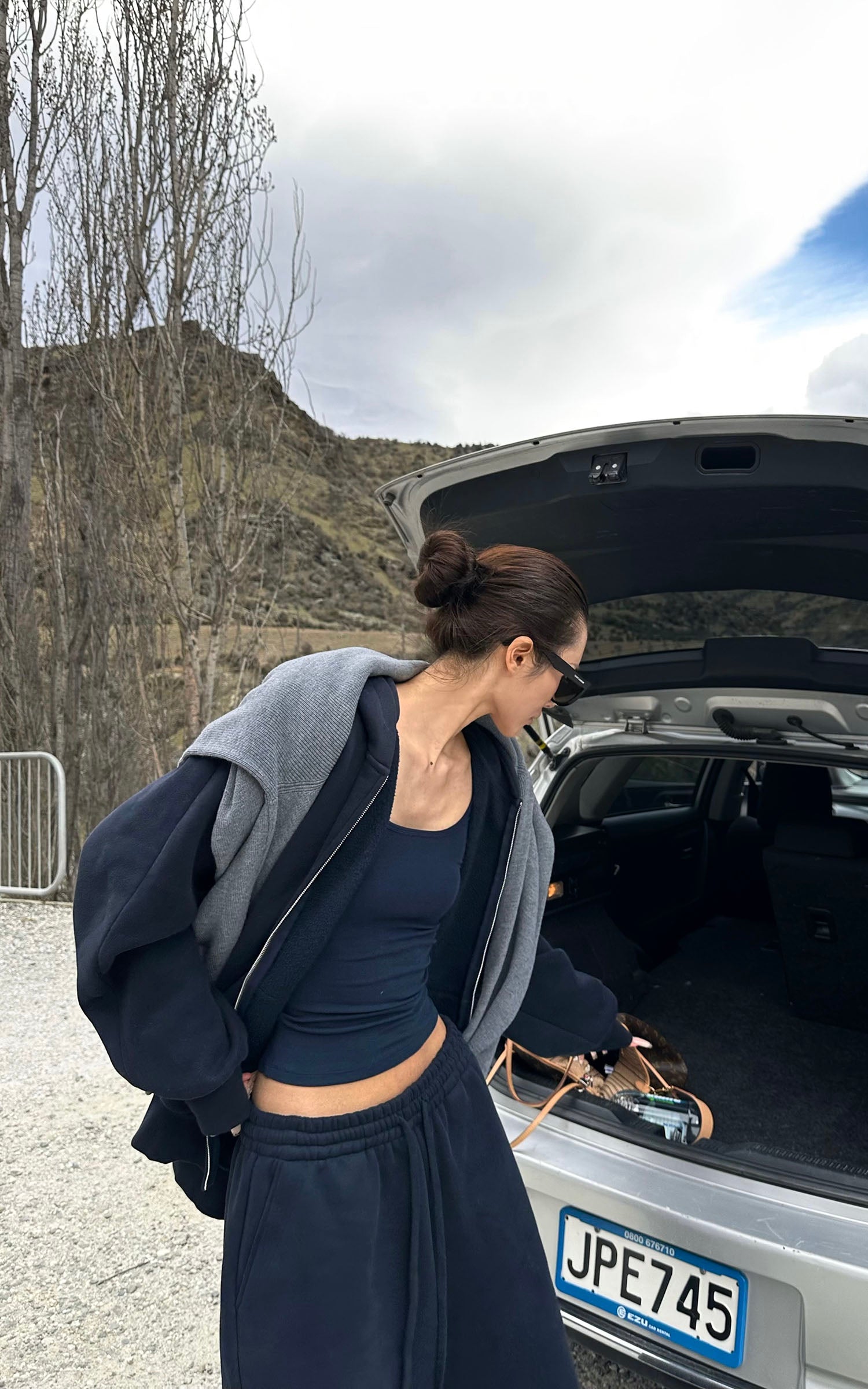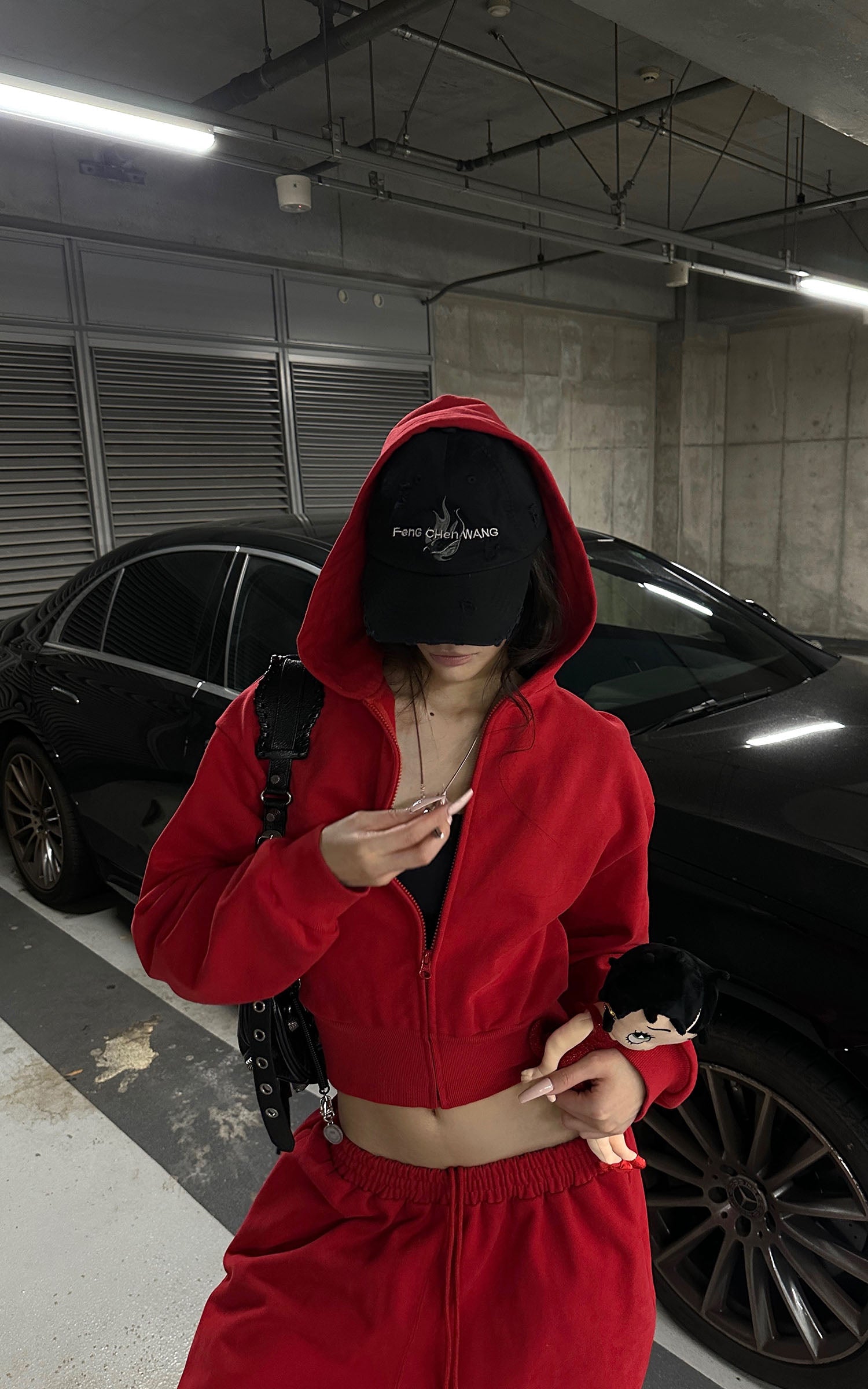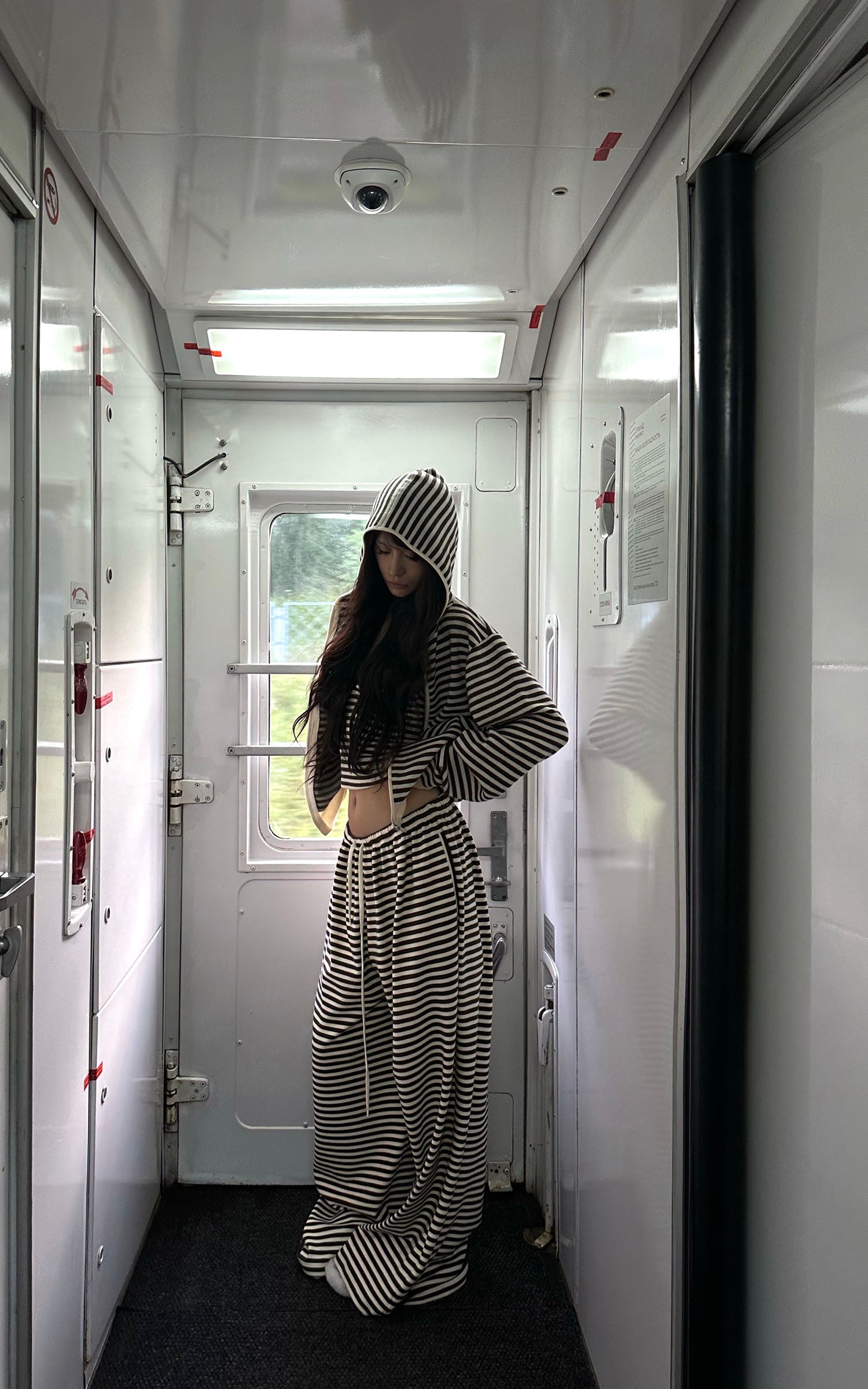 0122stepll クロップドジップフーディー&ワイドスウェットパンツ セット