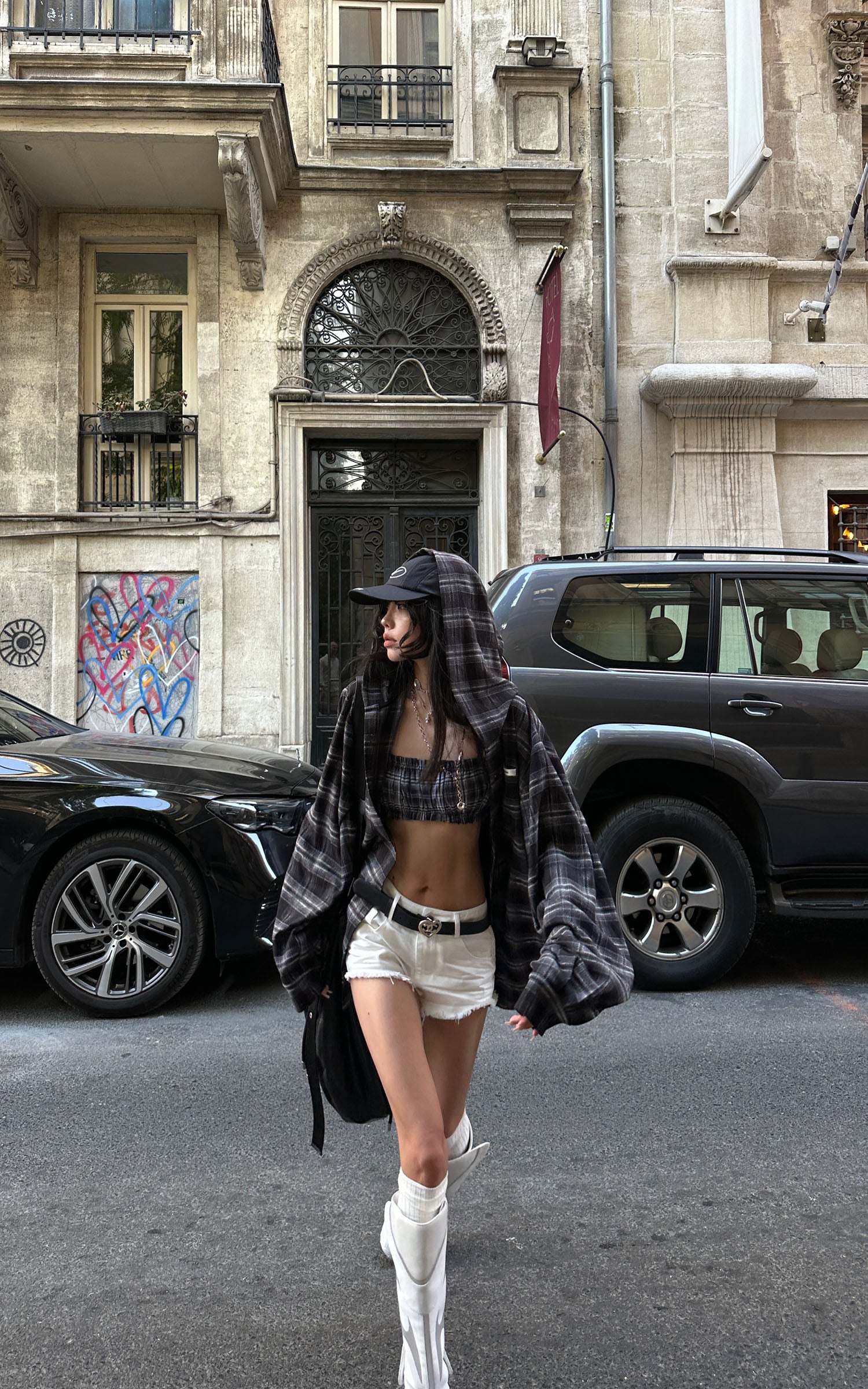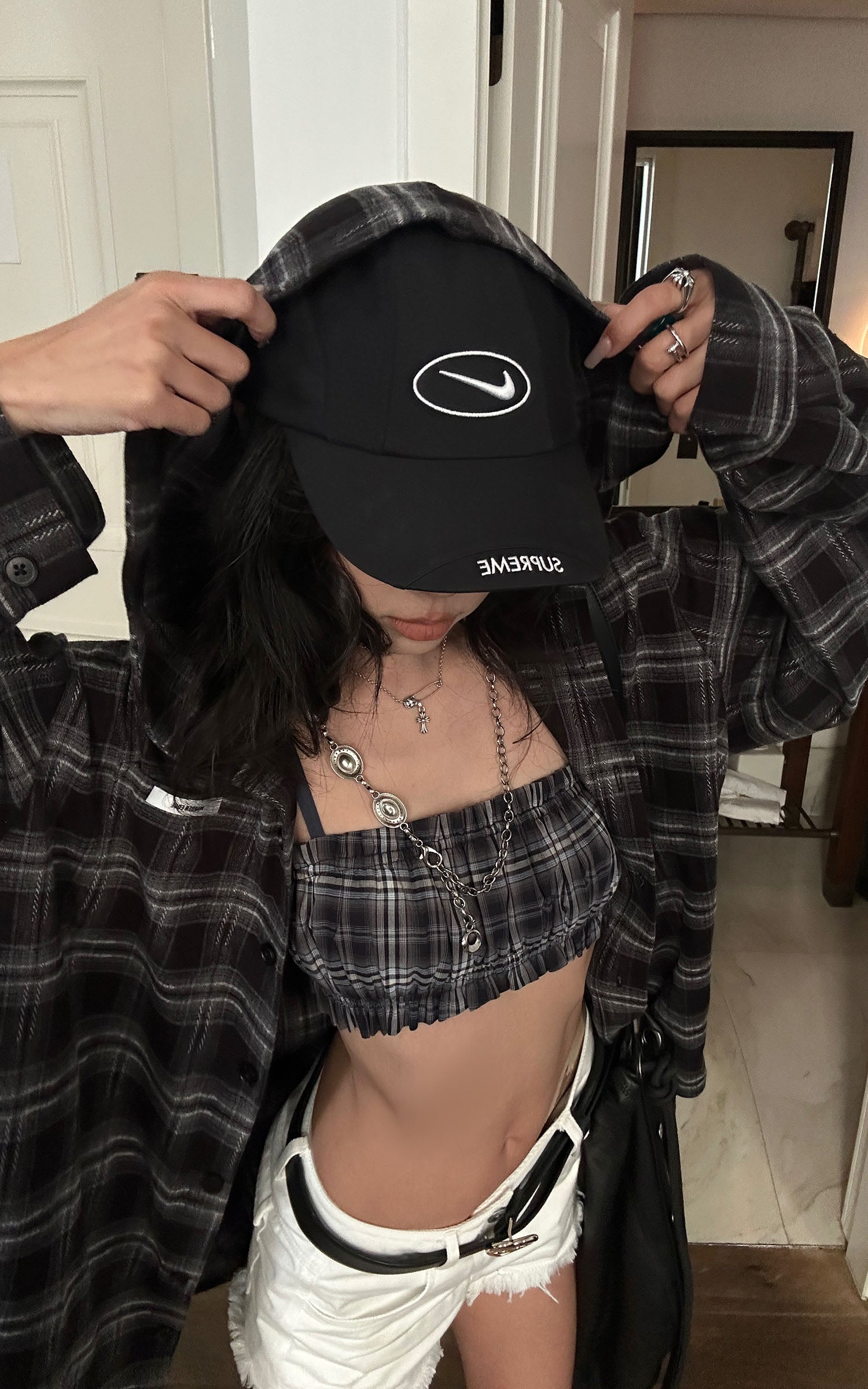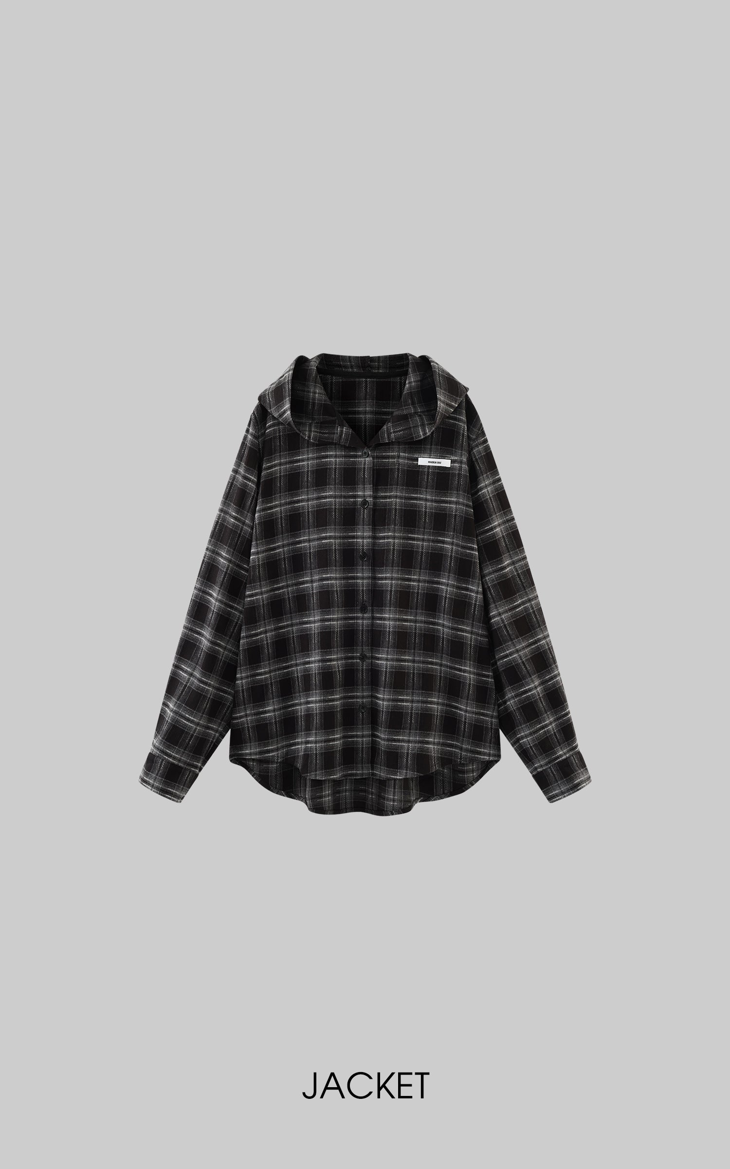 WARDEN EDGE チェック柄フード付きシャツジャケット&お揃いチェック柄チューブトップセット