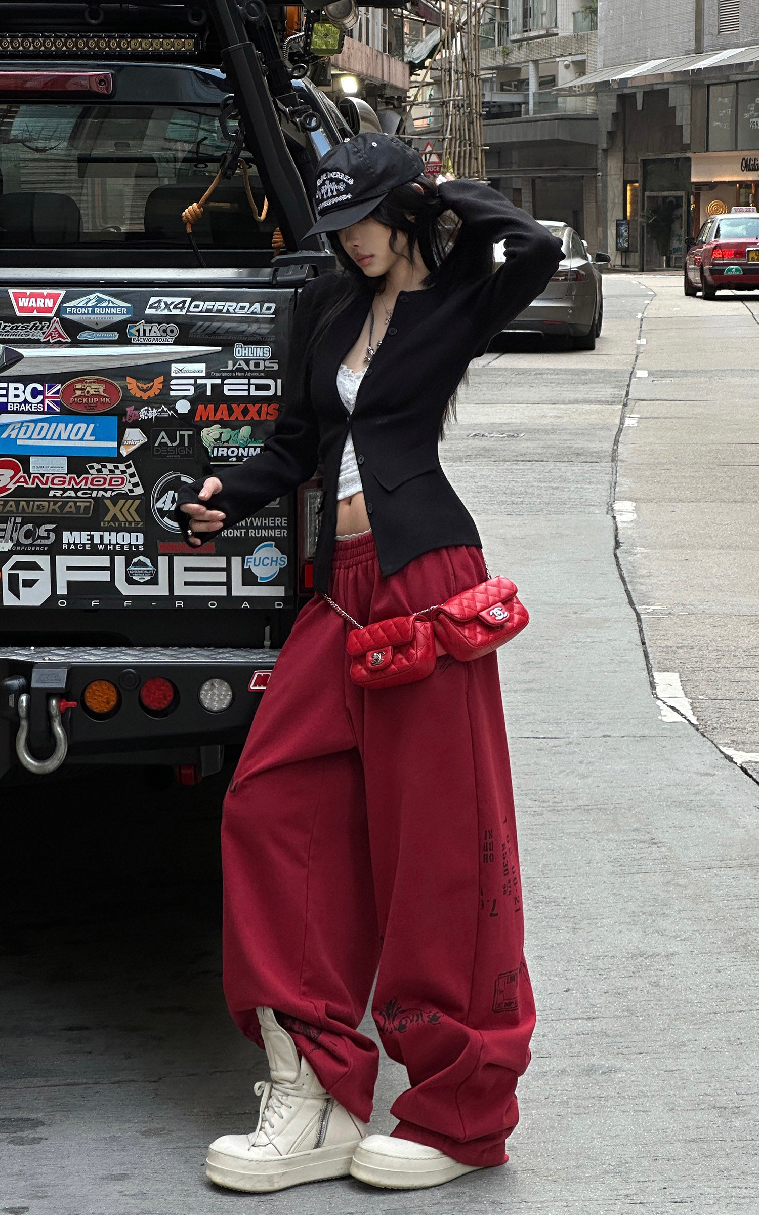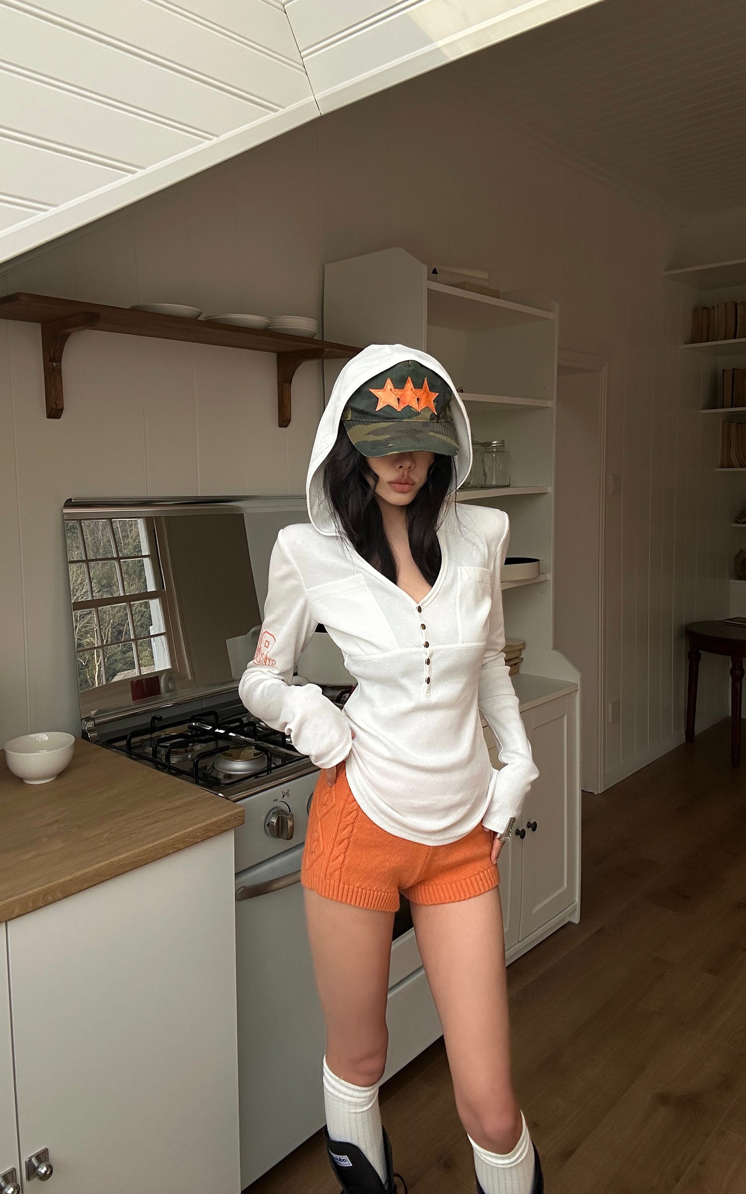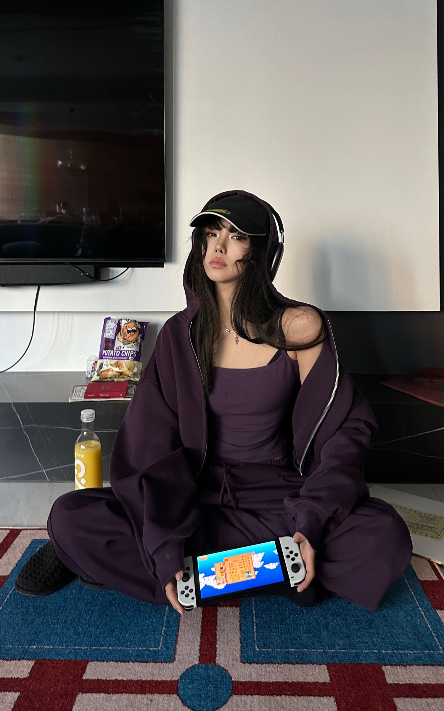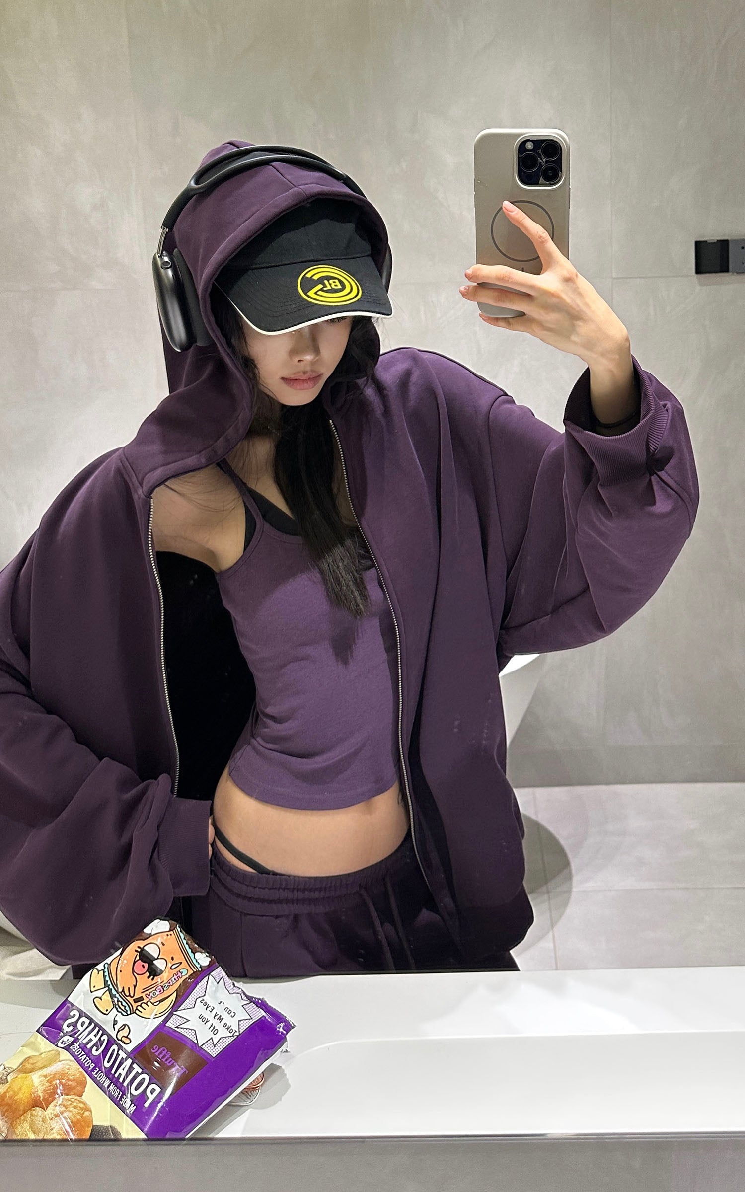 WARDEN EDGE フード付きジップジャケット、ワイドレッグパンツ、フィットしたキャミソールの3点セット