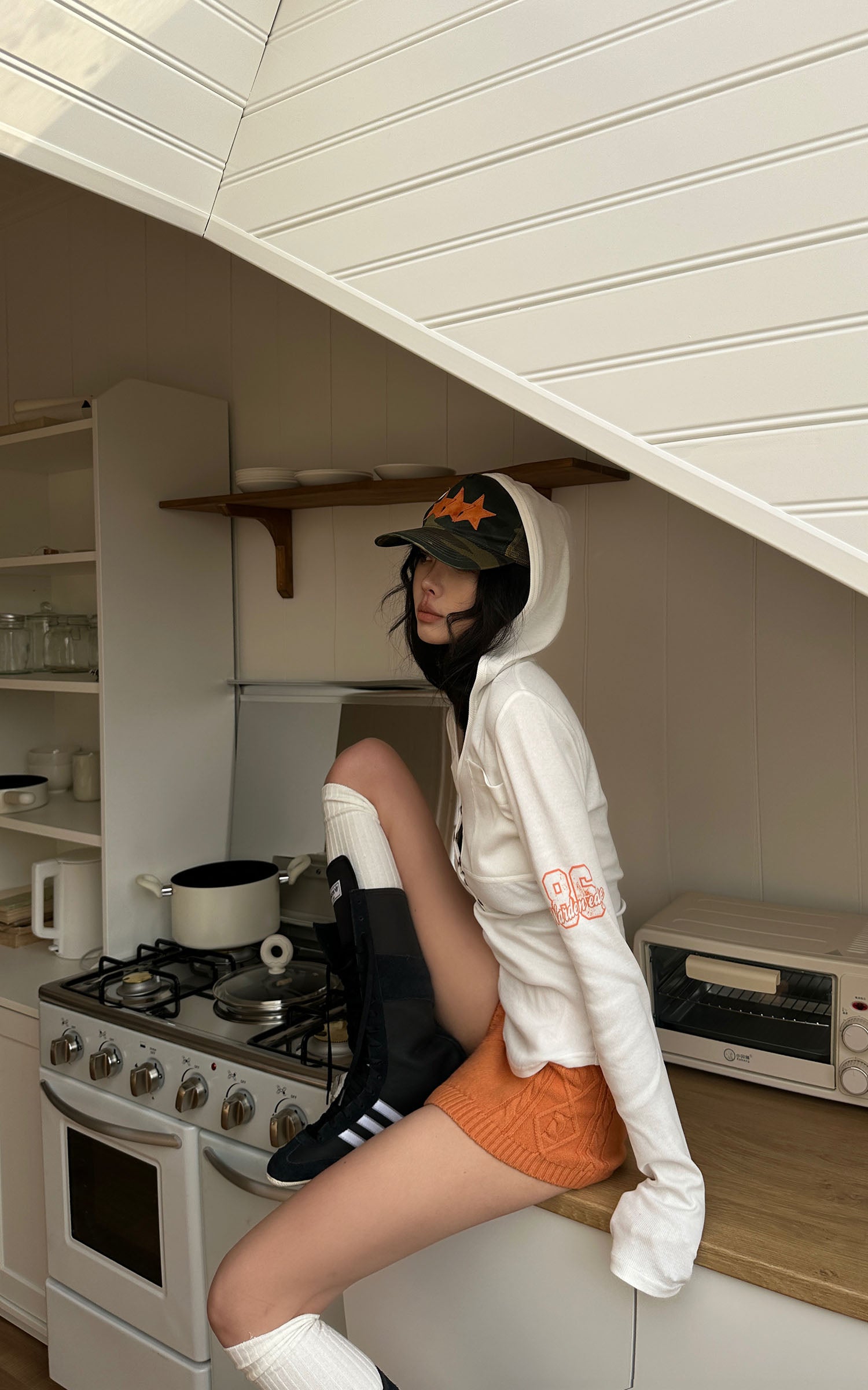 WARDEN EDGE リボンフード付きクロップドジップパーカー&プリーツミニスカートセット