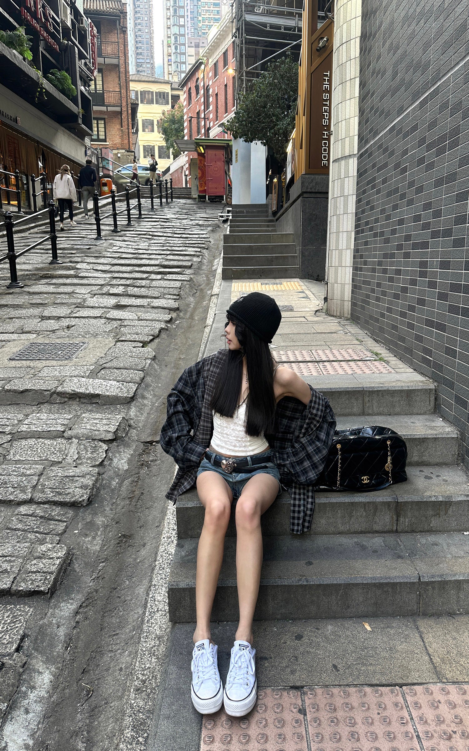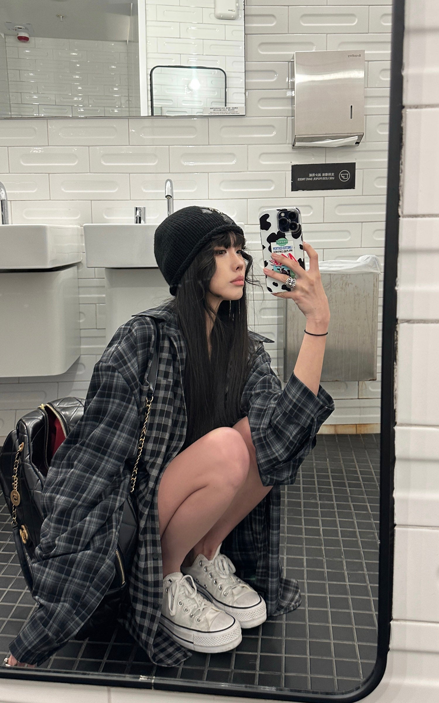 パッチワークチェック リラックスフィットシャツ