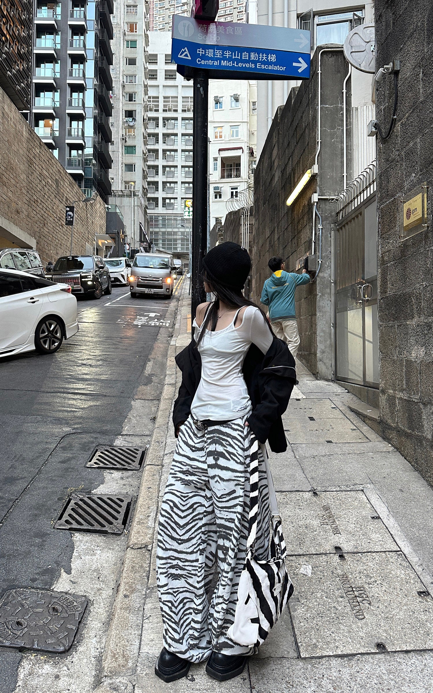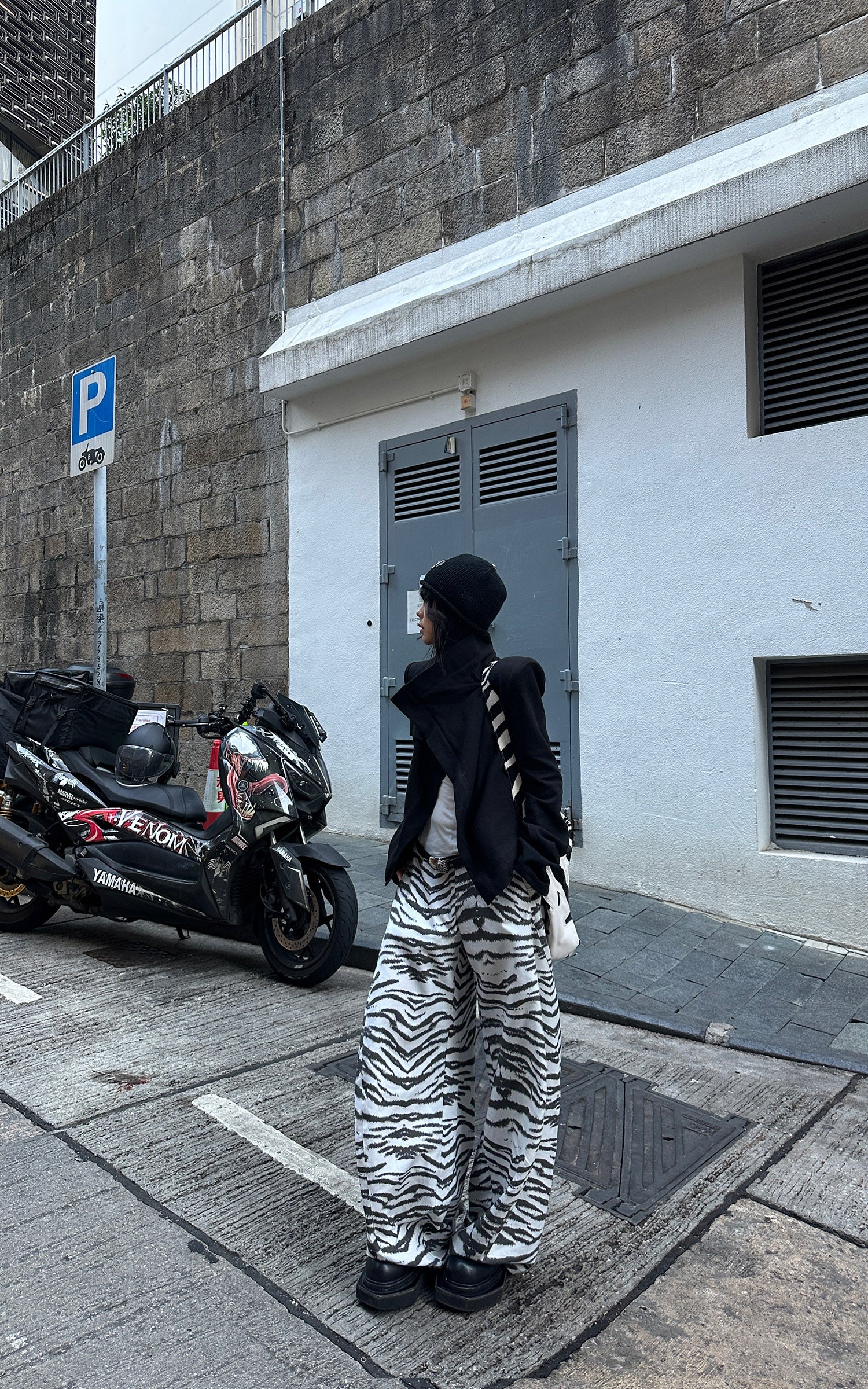 WARDEN EDGE ホワイトゼブラパターンワイドレッグトラウザーズ