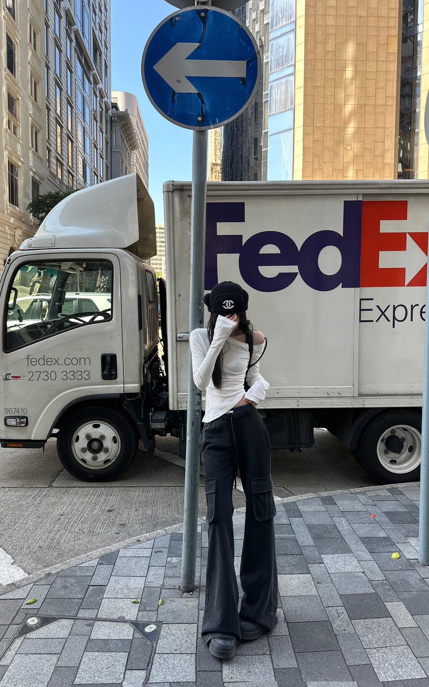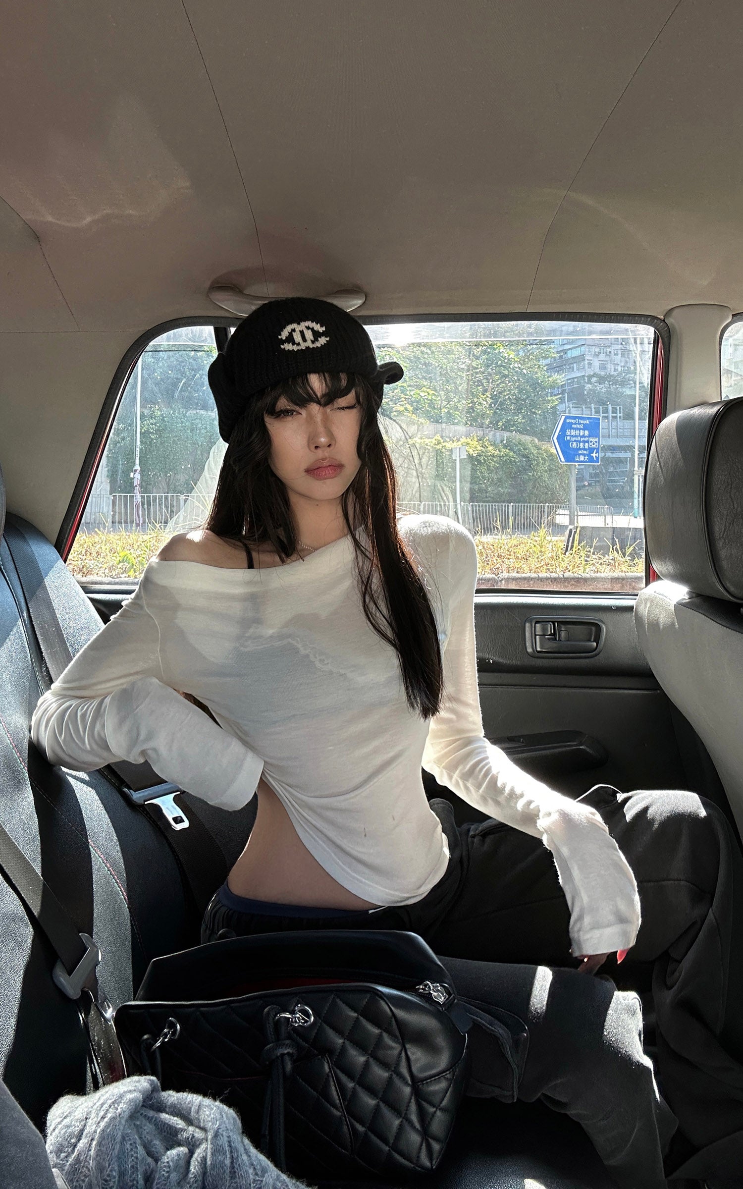 アシンメトリーネック フィット長袖Tシャツ