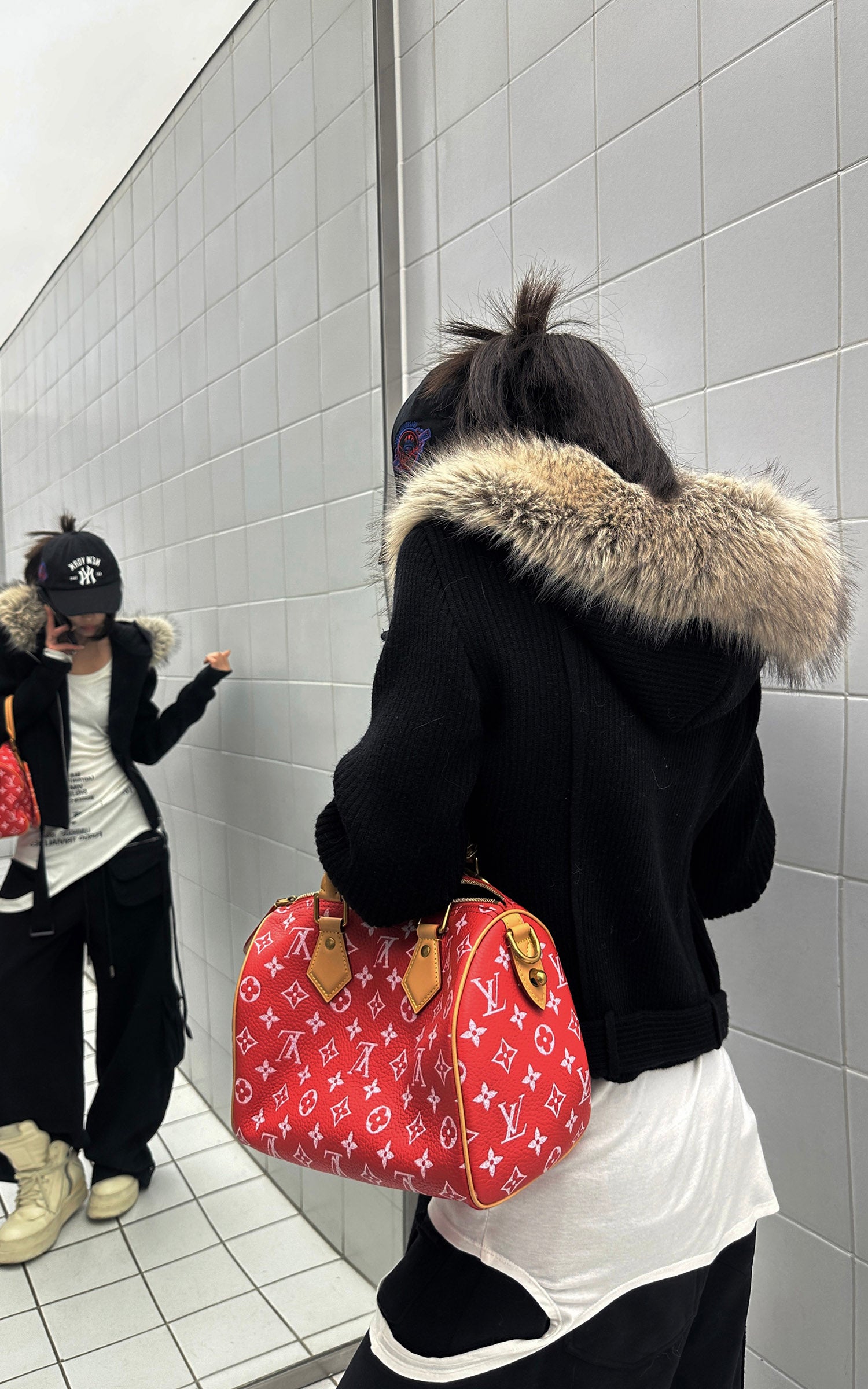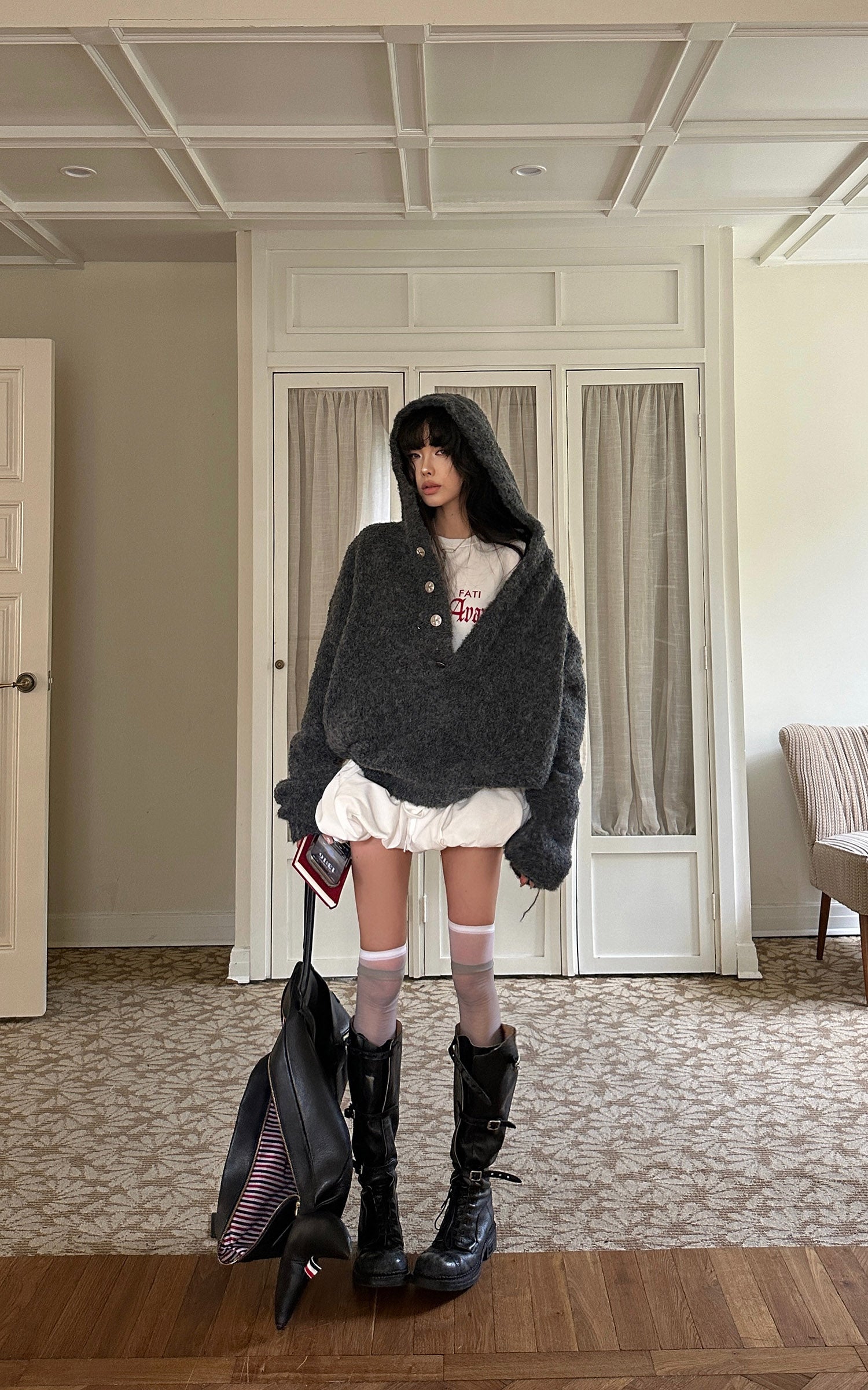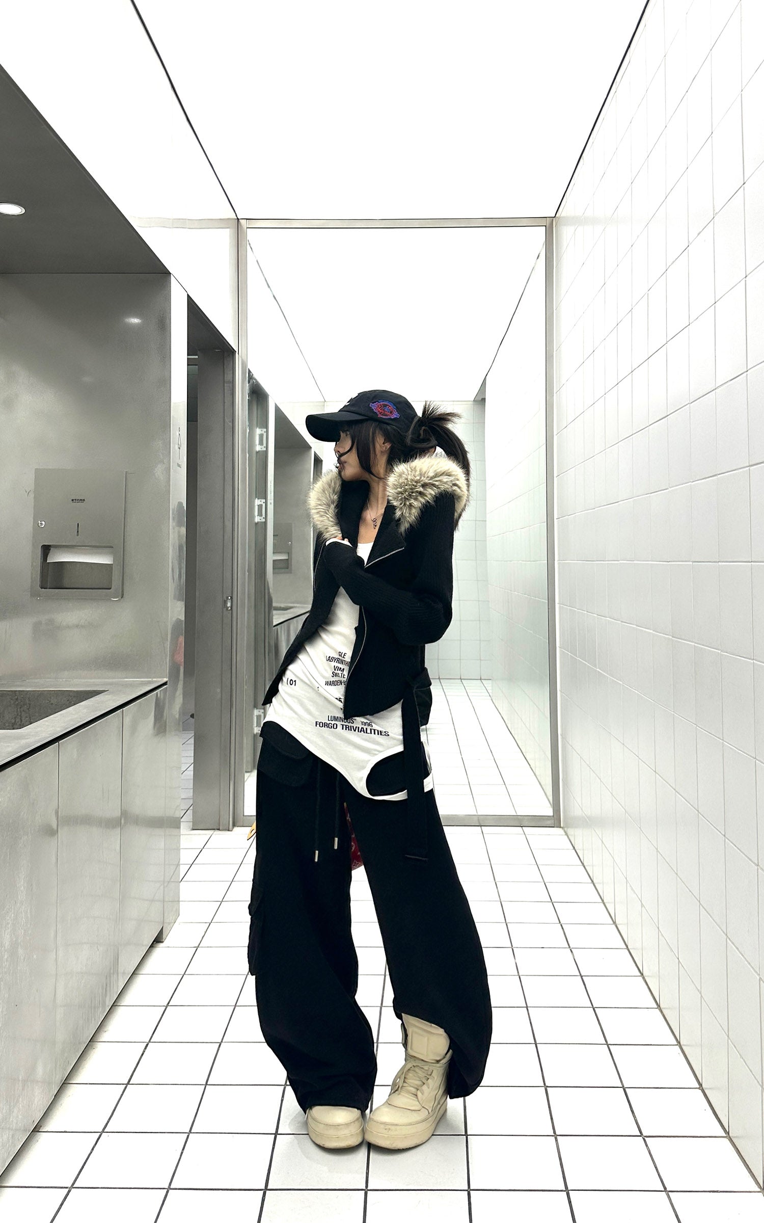 WARDEN EDGE ファーフードジャケット&ニットフードハットセット(スリムトップ&ドローストリングショーツ付き)