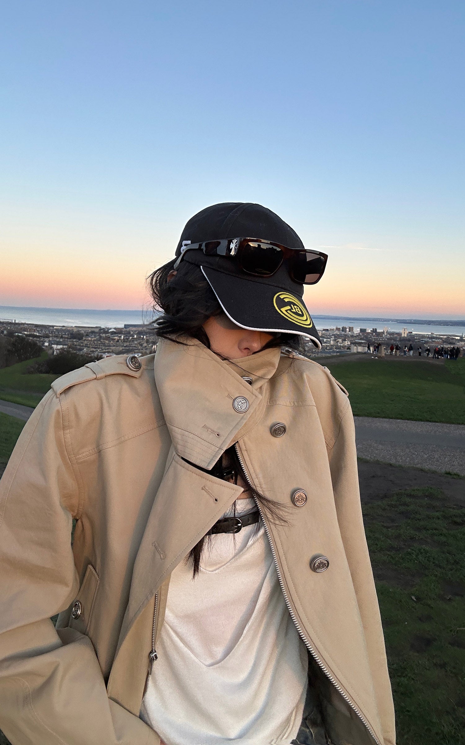 WARDEN EDGE アシンメトリッククロージャー付き構造的ハイカラートレンチジャケット