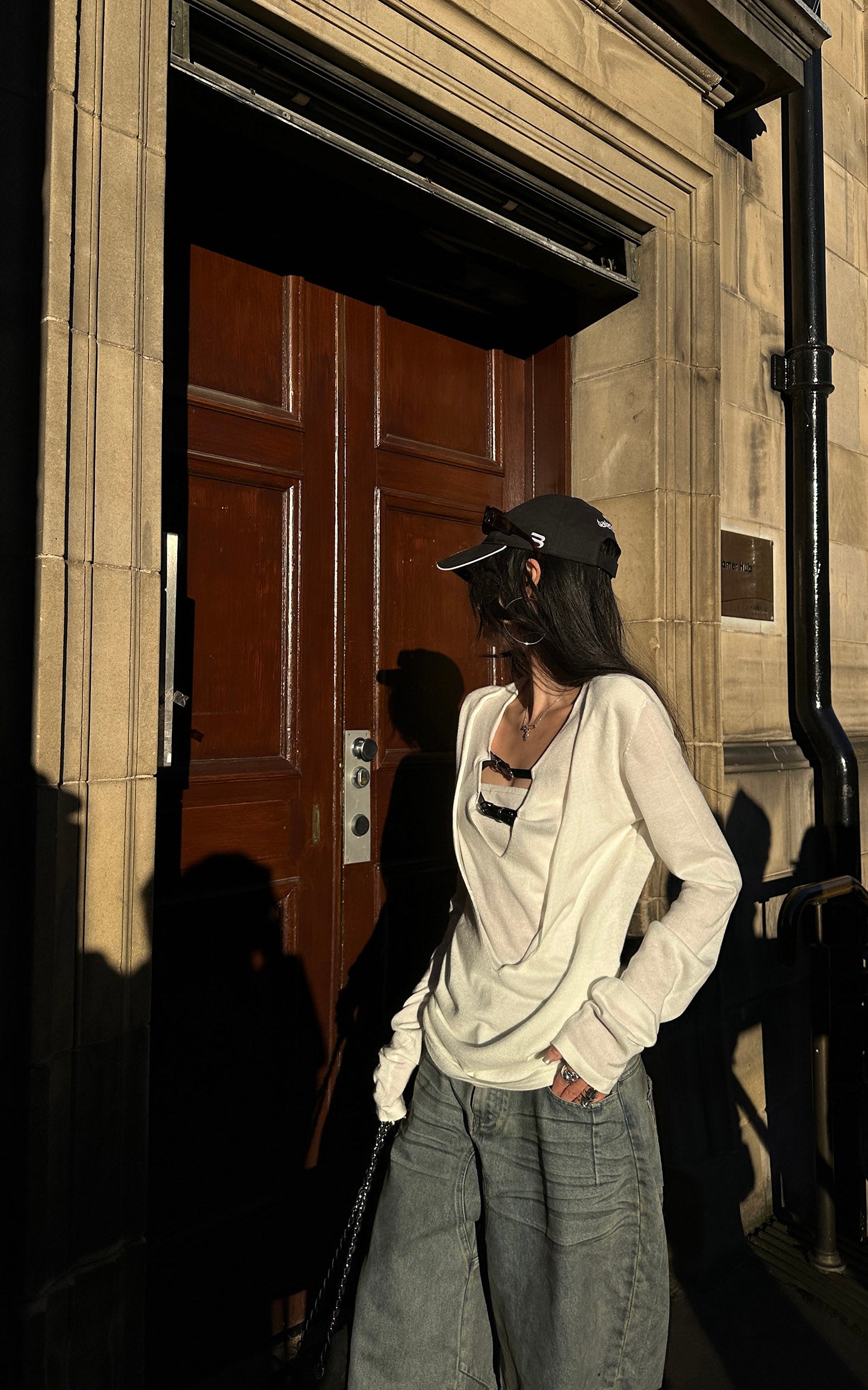WARDEN EDGE グラフィックカットアウトロングスリーブTシャツ