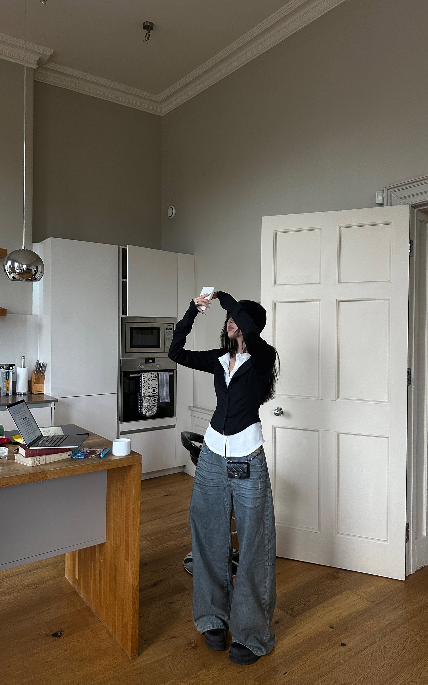 WARDEN EDGE スカルプテッドワイドレッグデニムパンツ