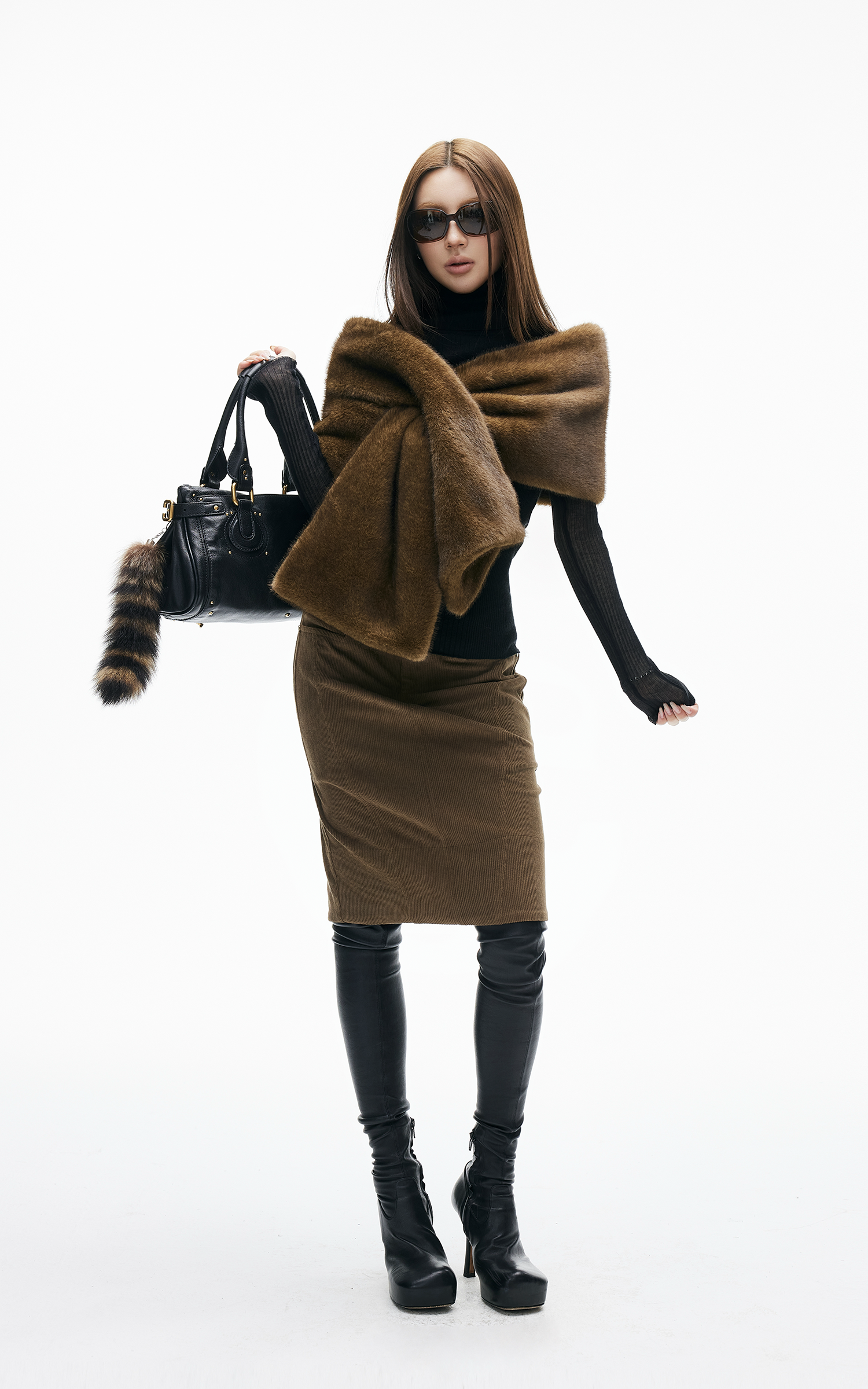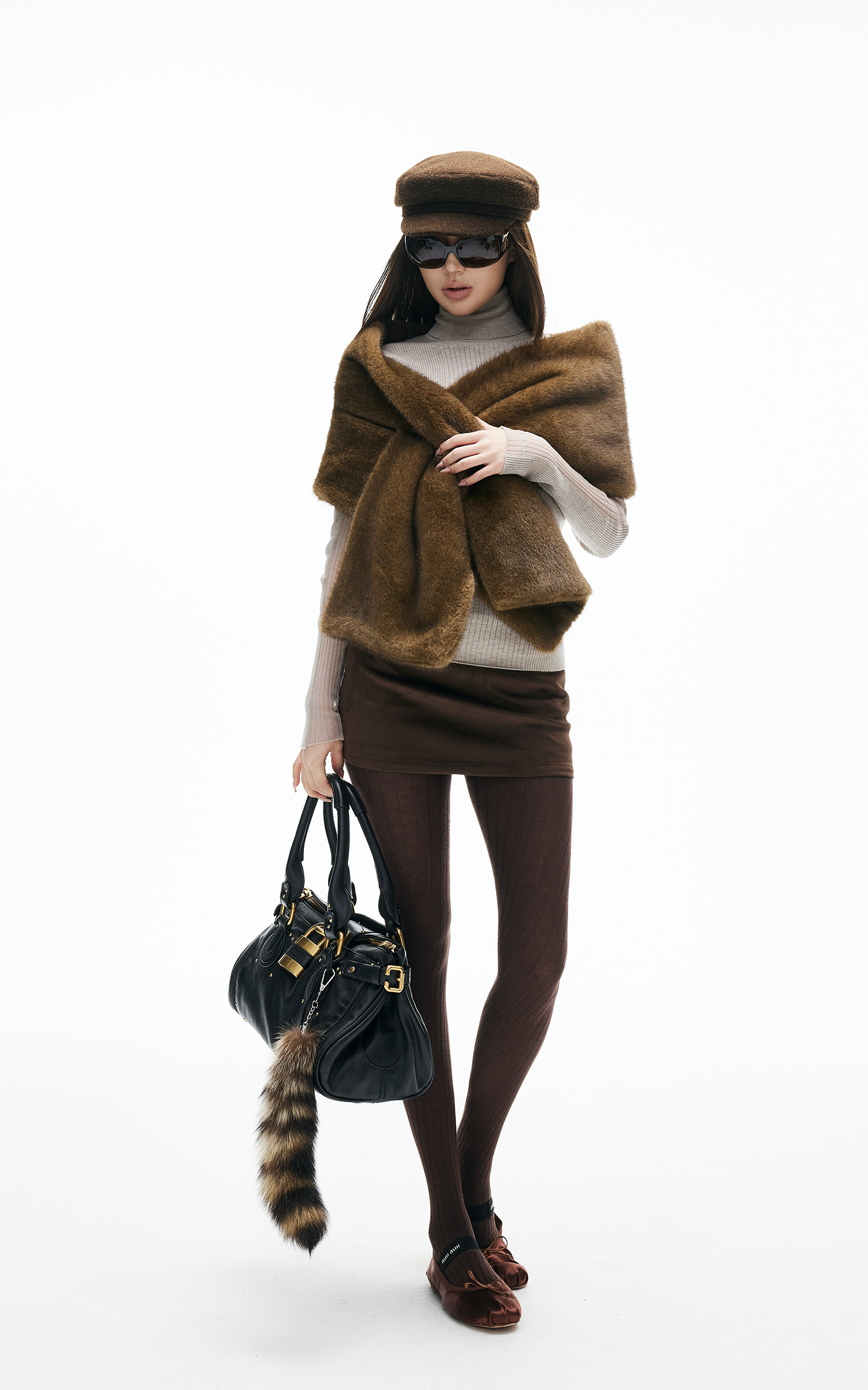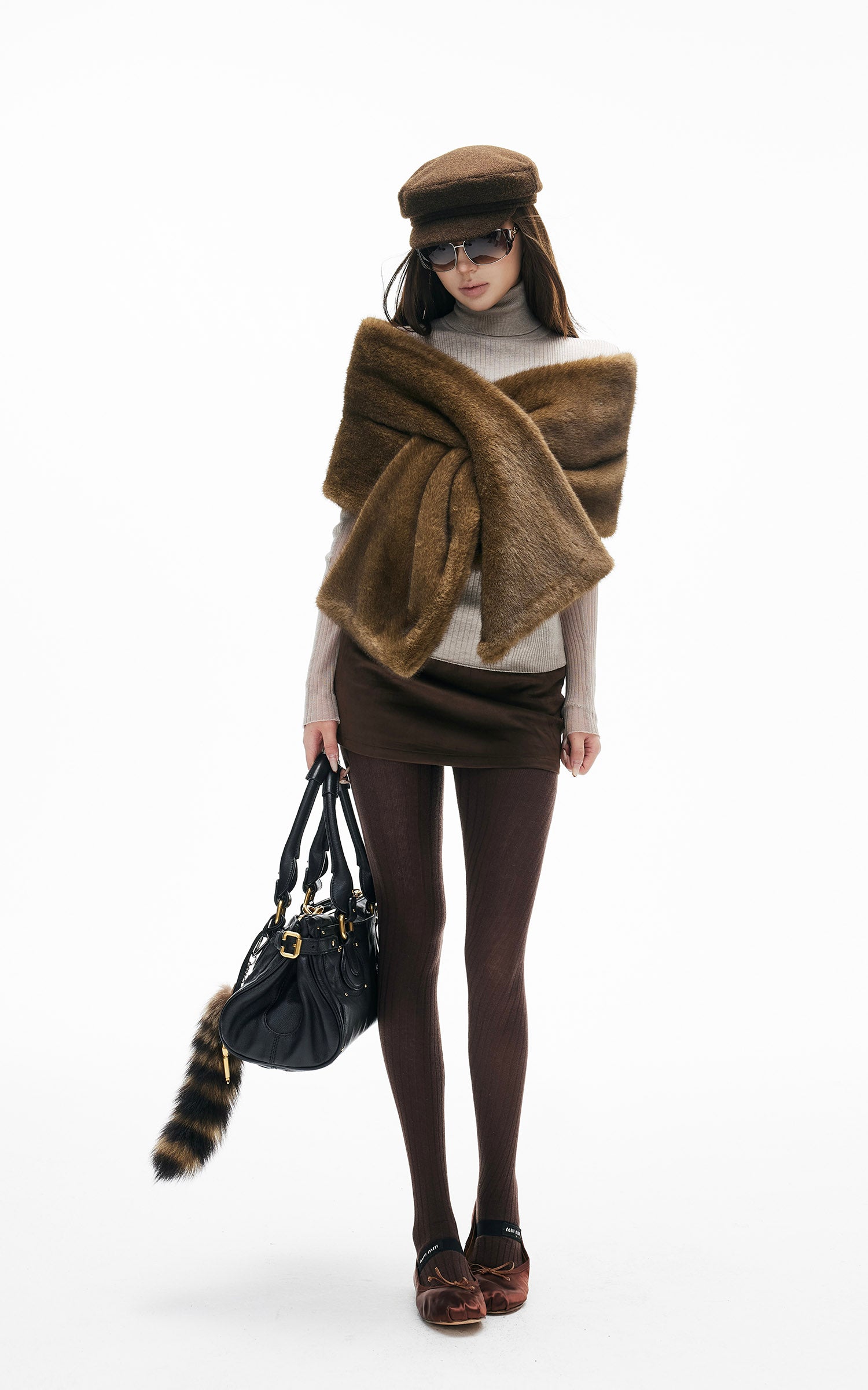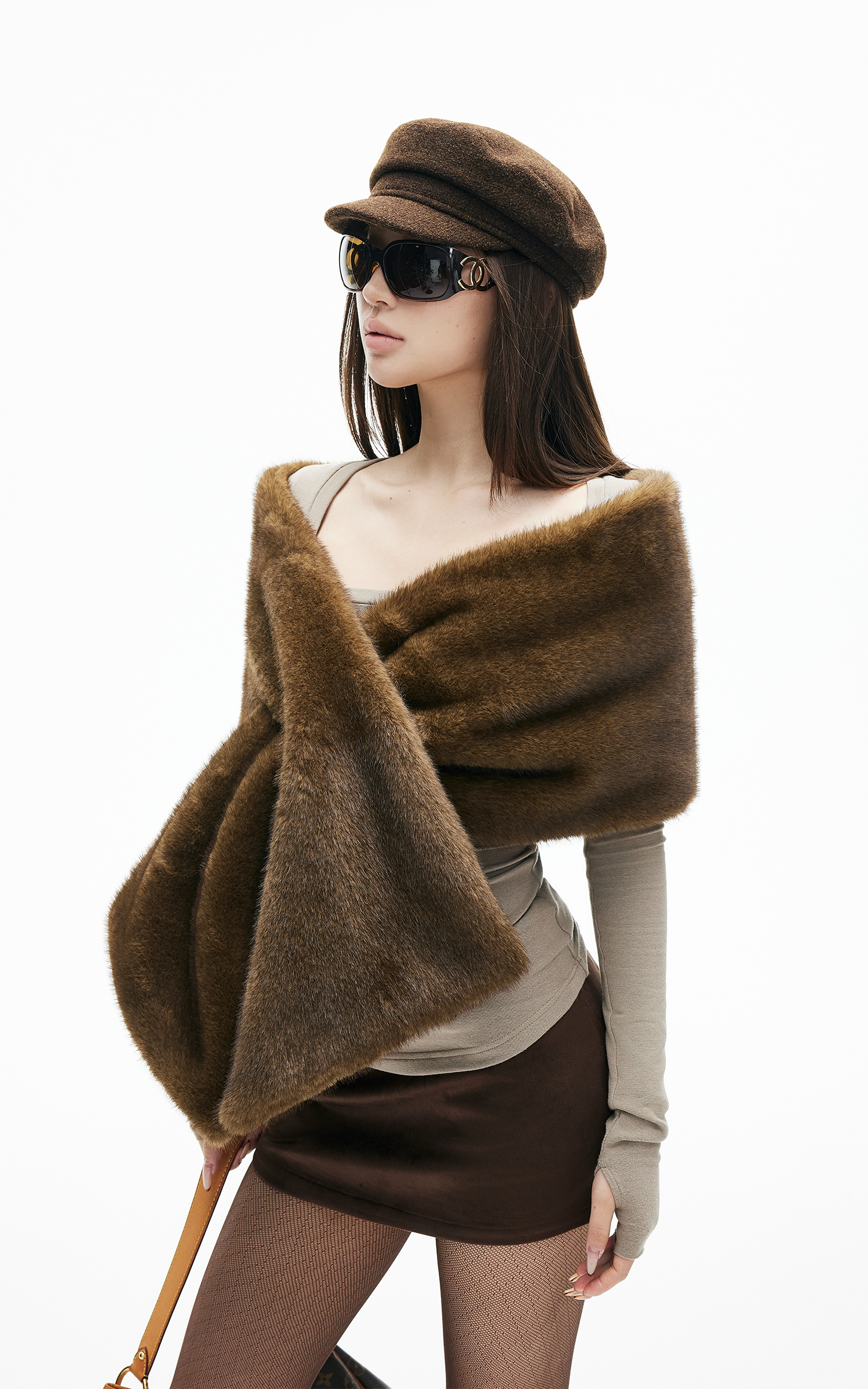 IAMXIAA フェイクファー クロスラップスカーフ