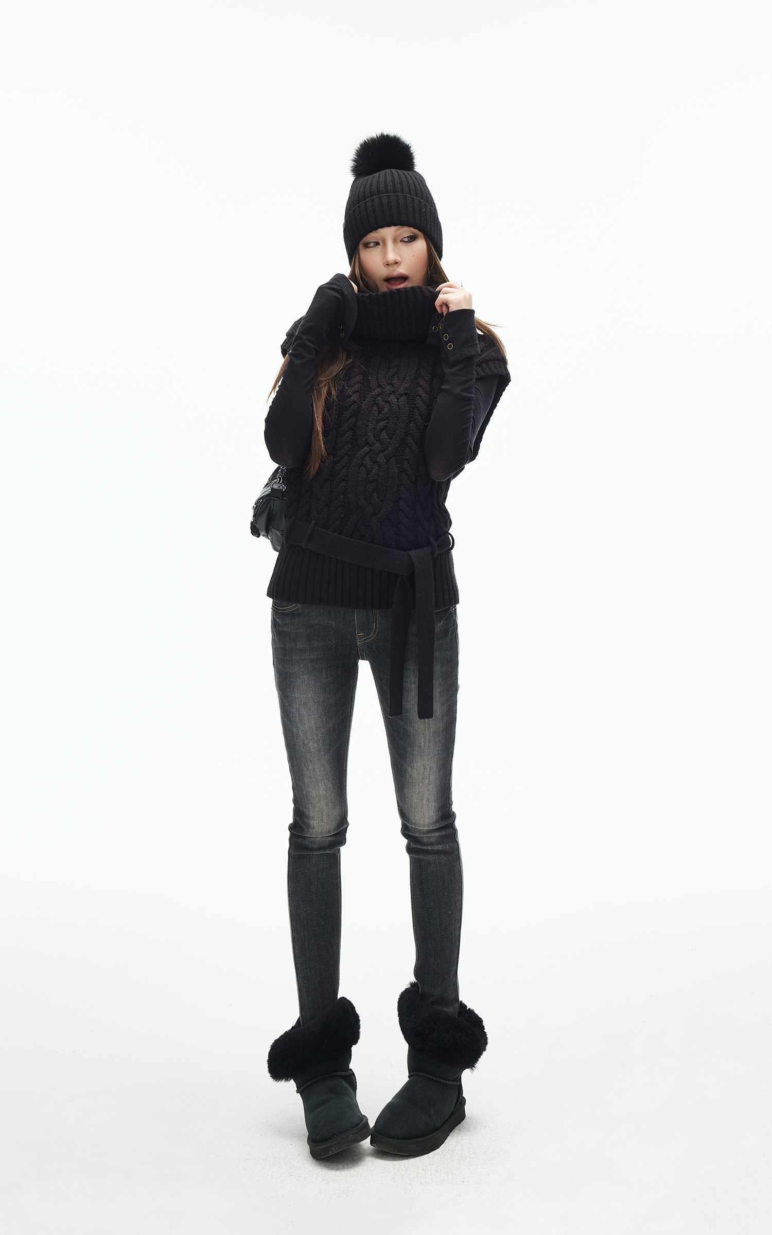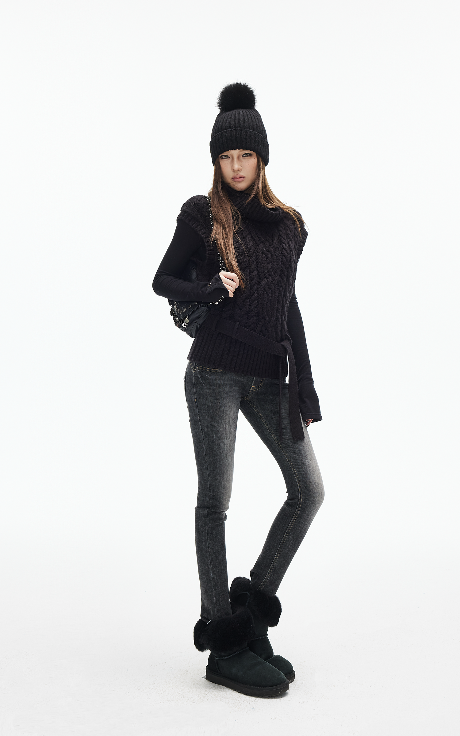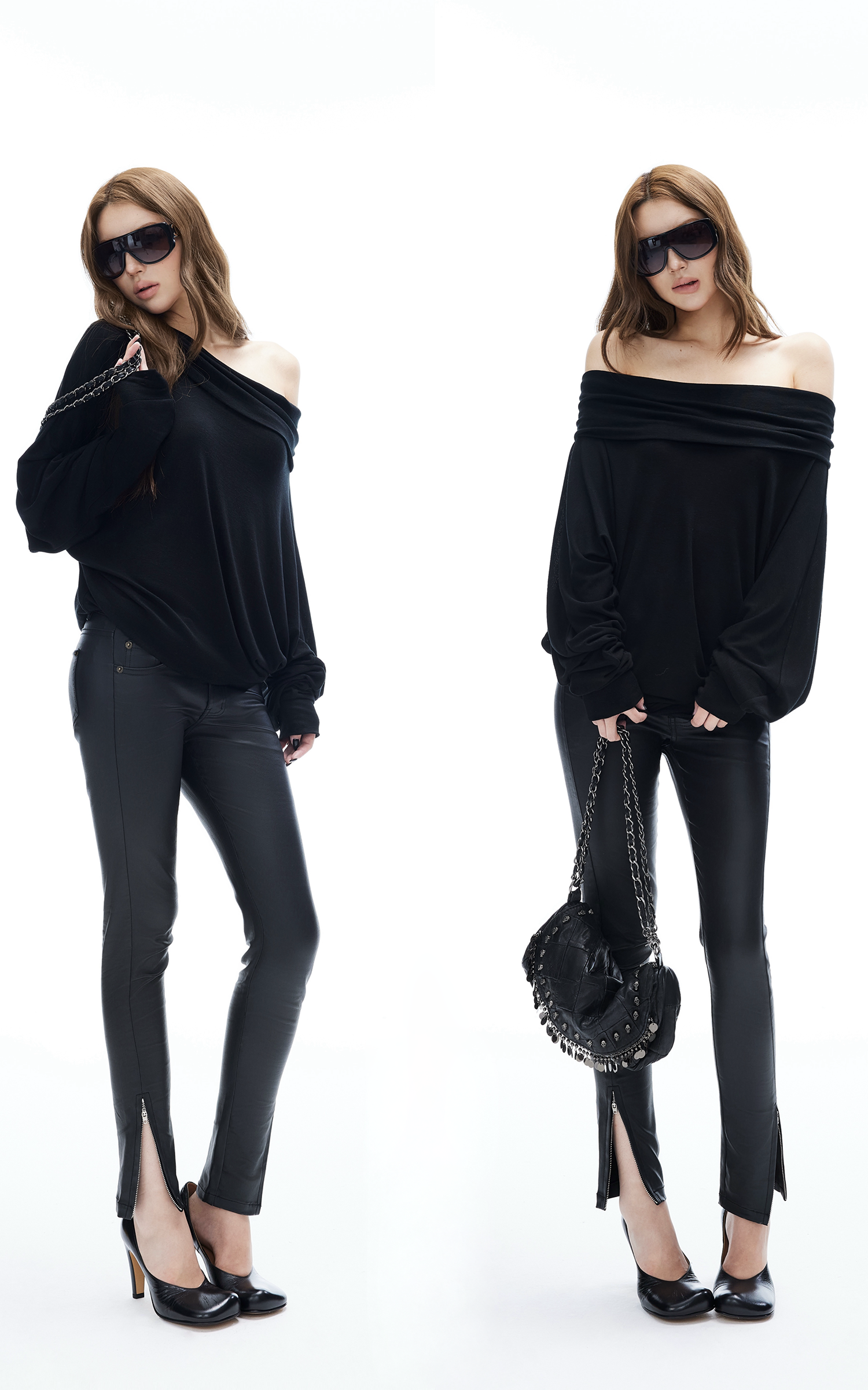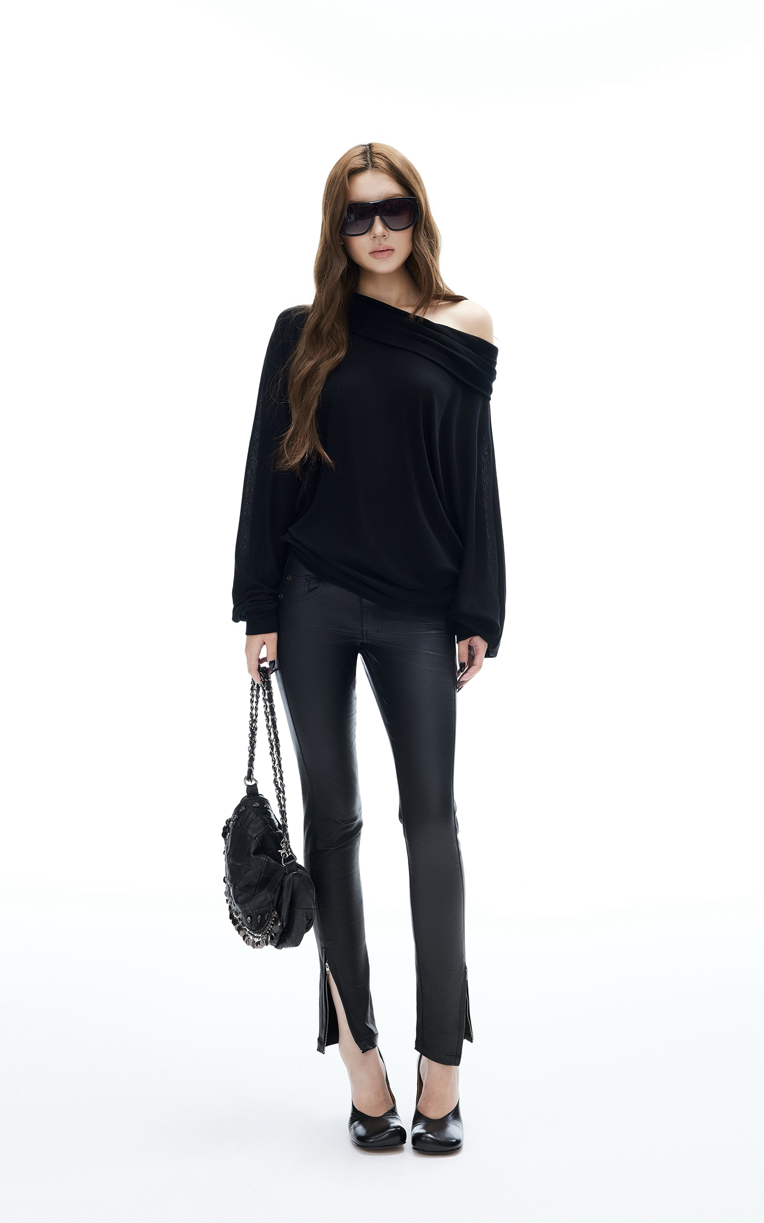 IAMXIAA リブ編みワイドレッグカジュアルパンツ