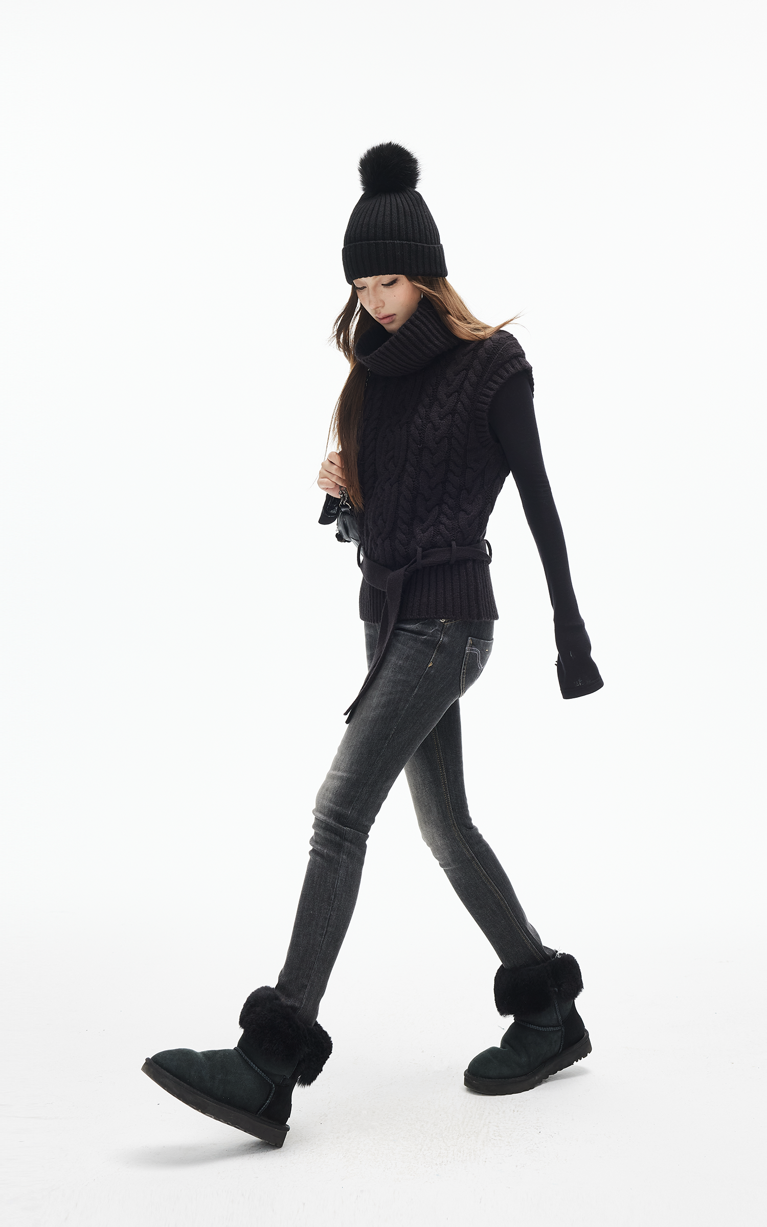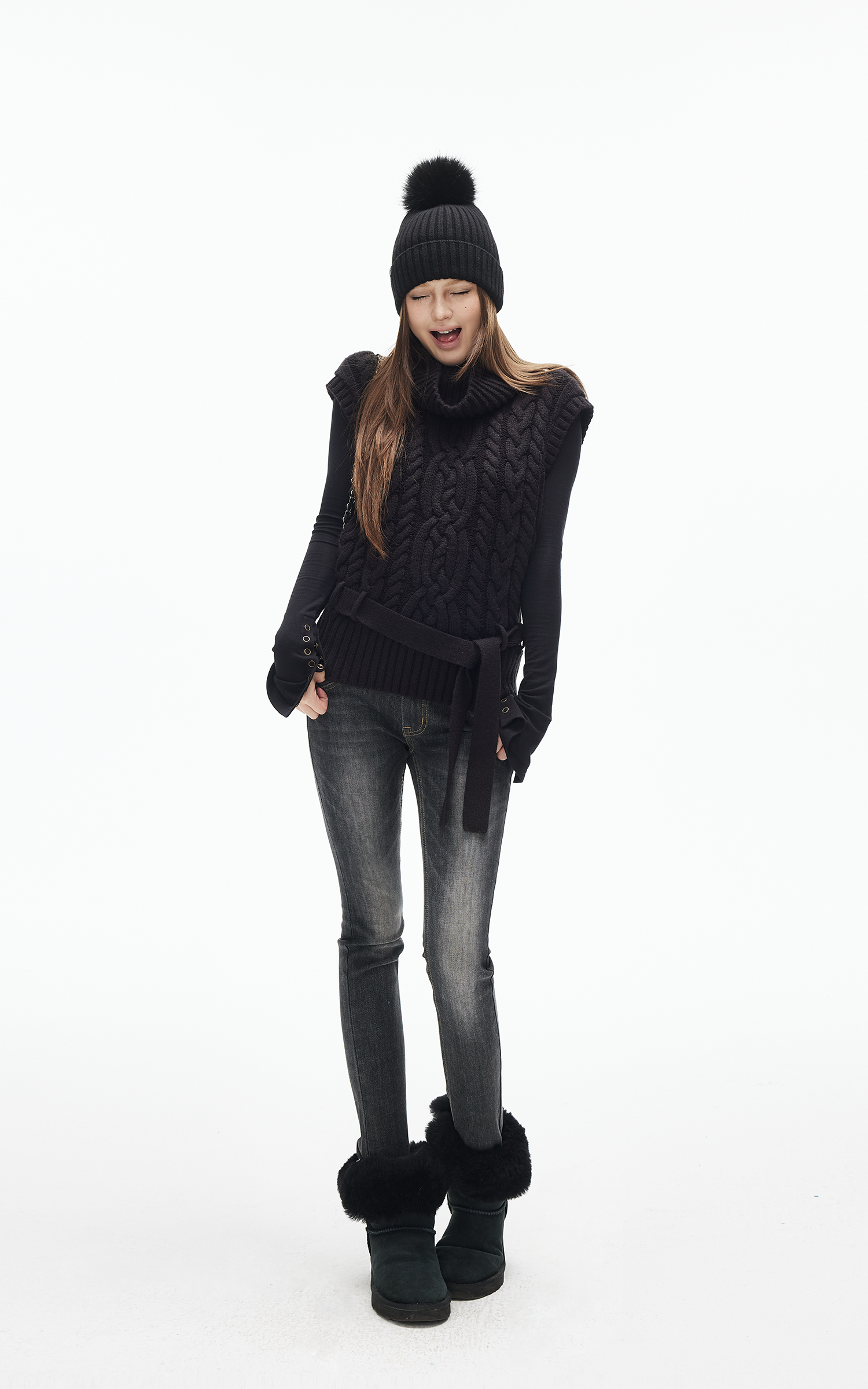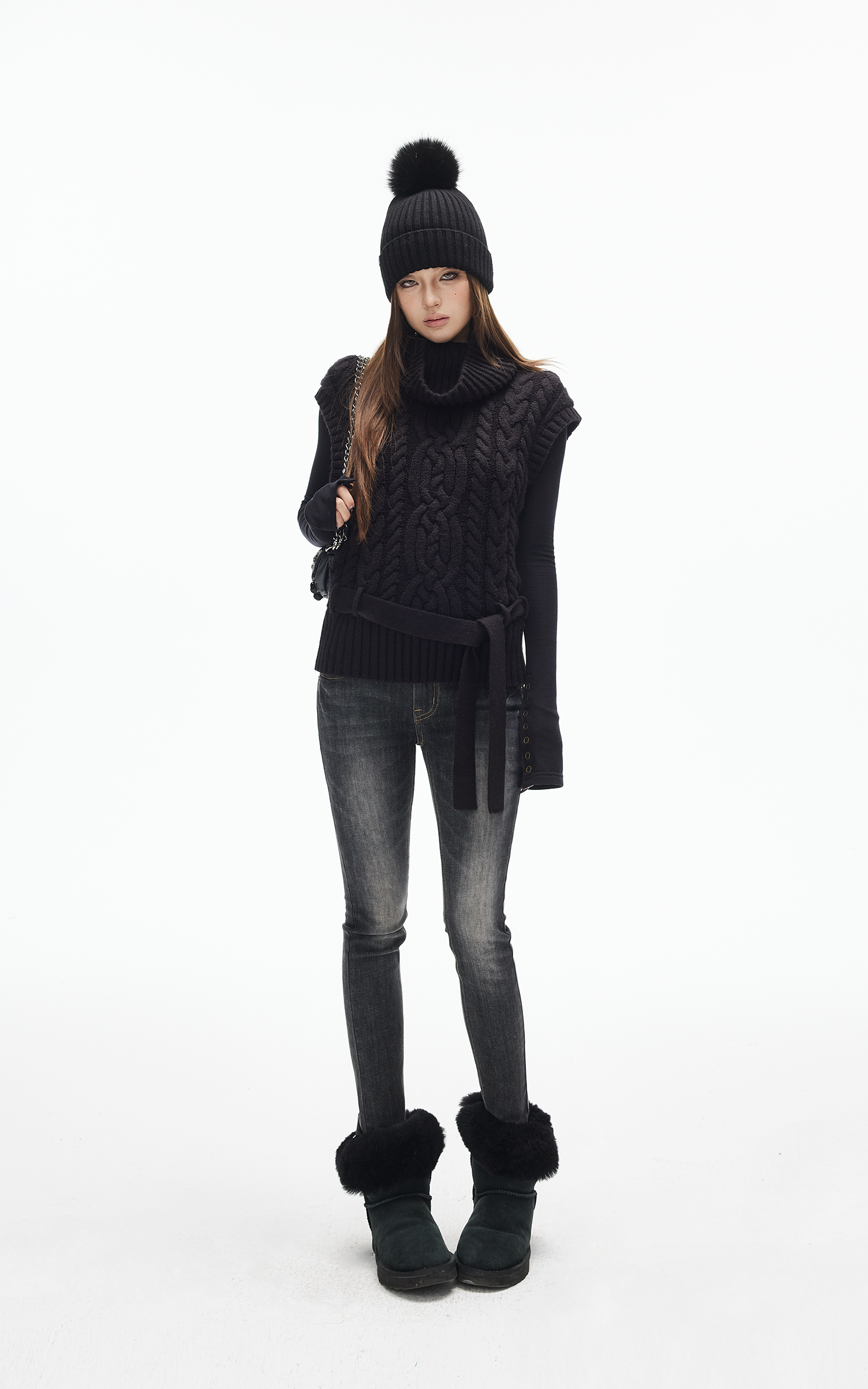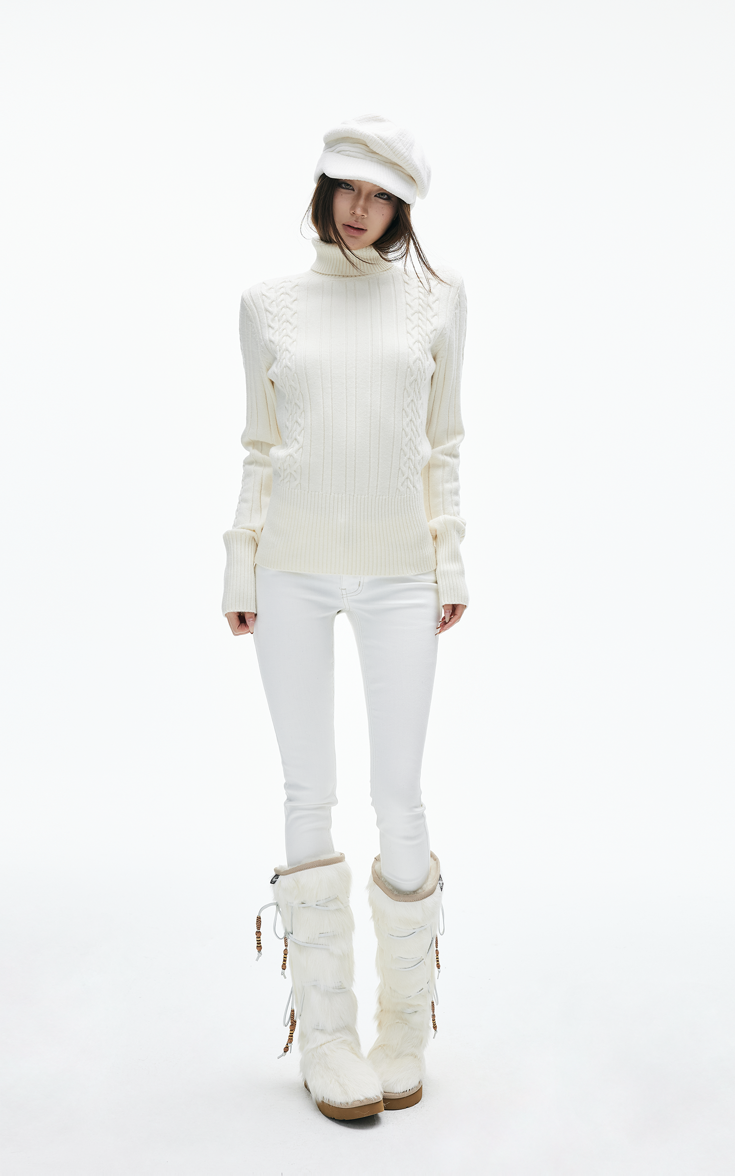 IAMXIAA リブ編みワイドレッグカジュアルパンツ