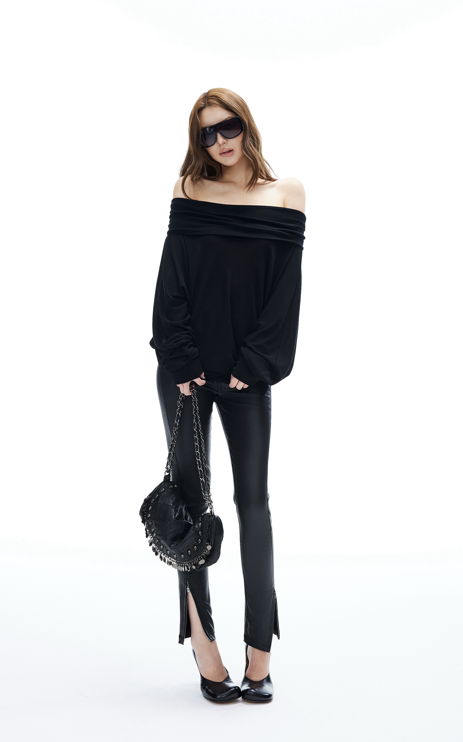 IAMXIAA ワイドレッグロークロッチカジュアルパンツ