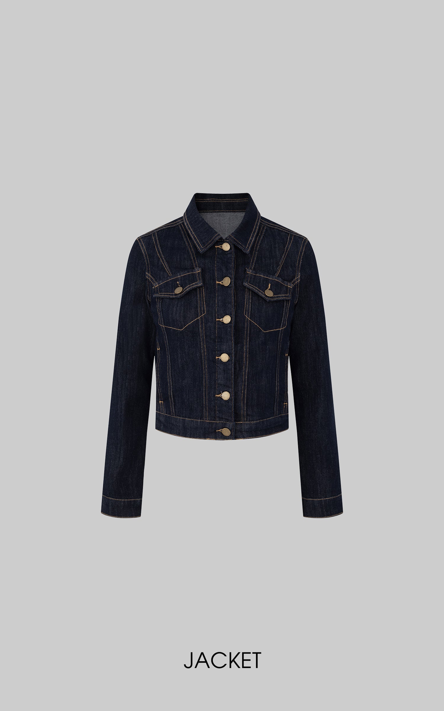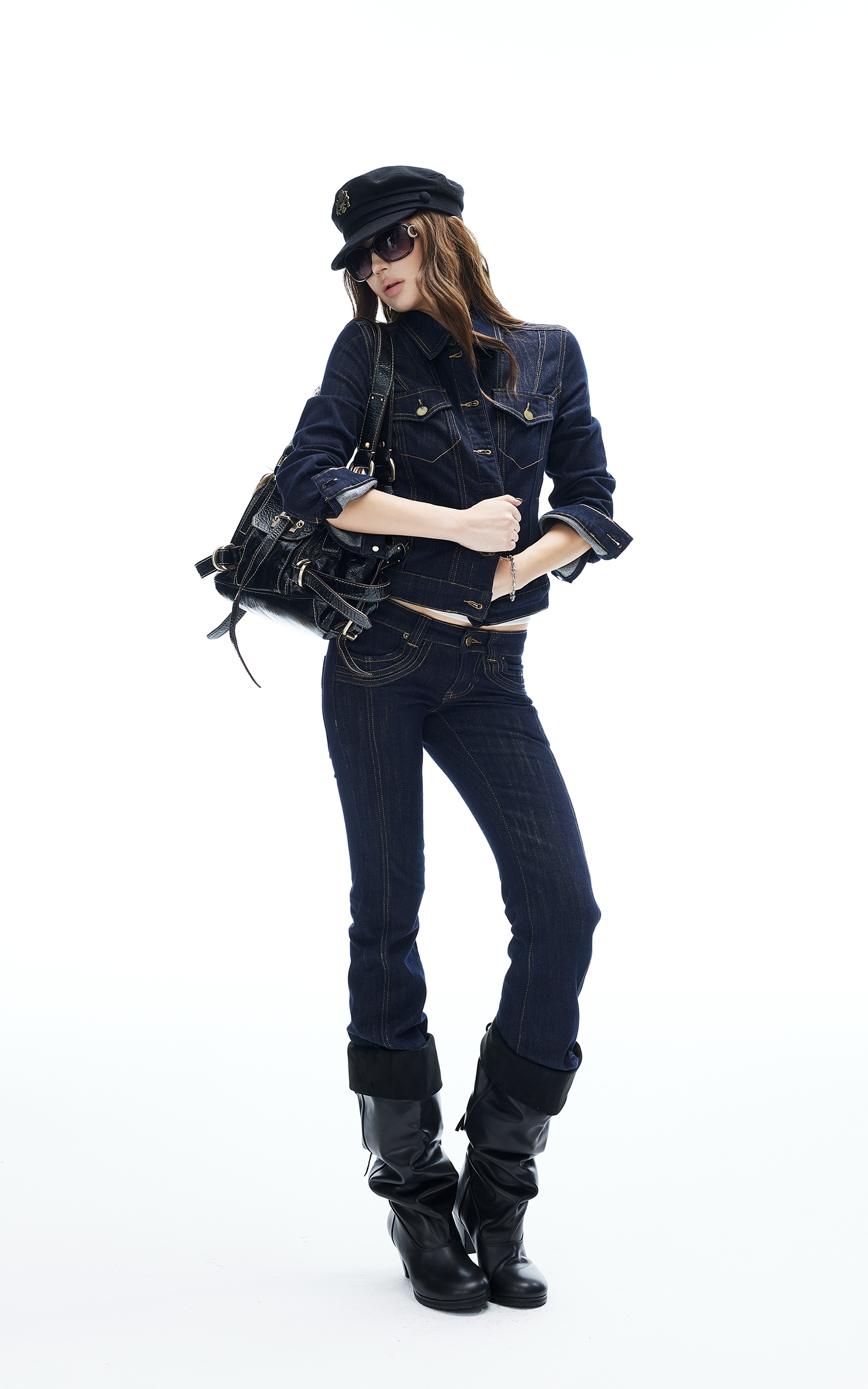 IAMXIAA レディース用デニムジャケット&フレアジーンズセット レトロなダークウォッシュの2点コーデ
