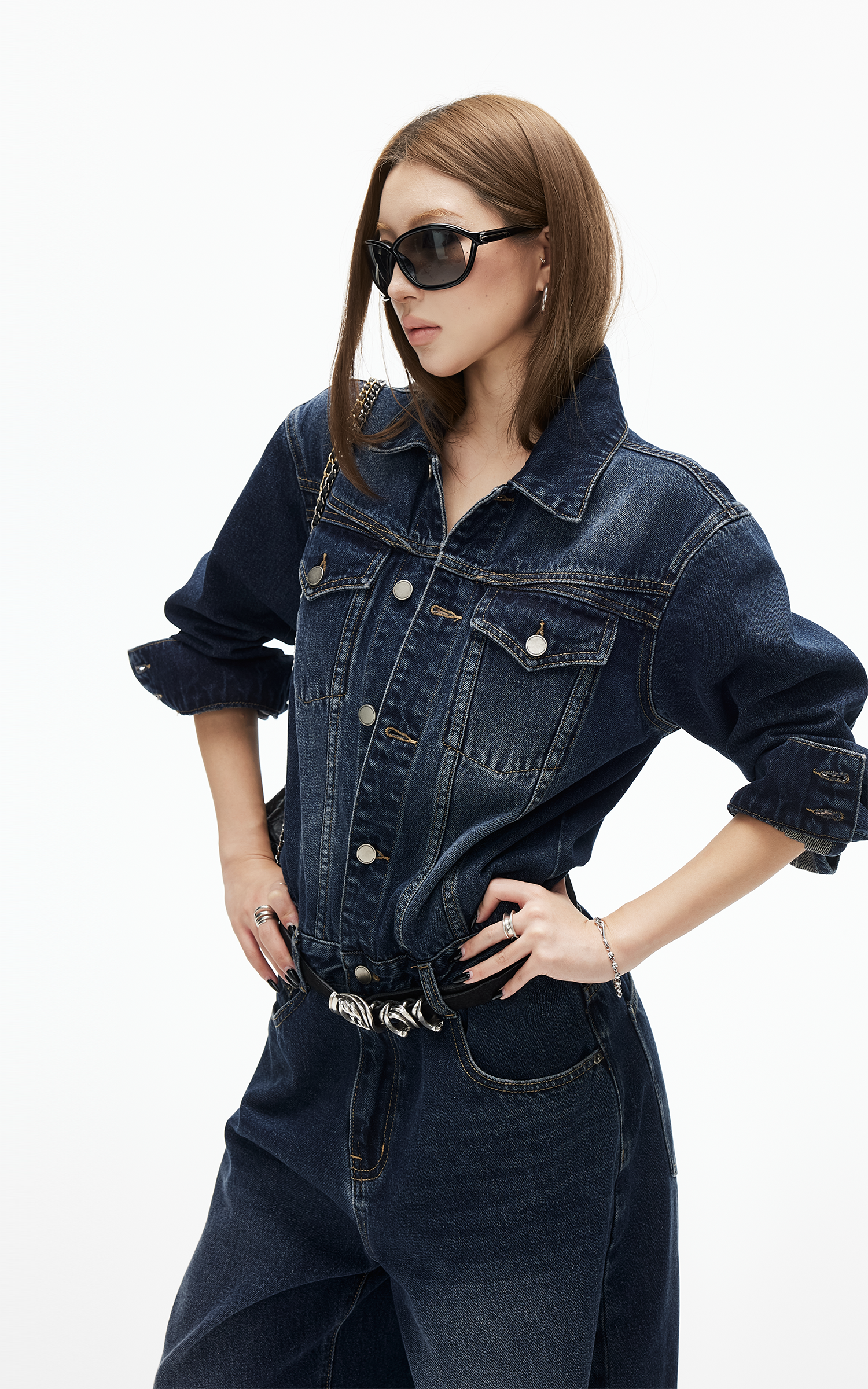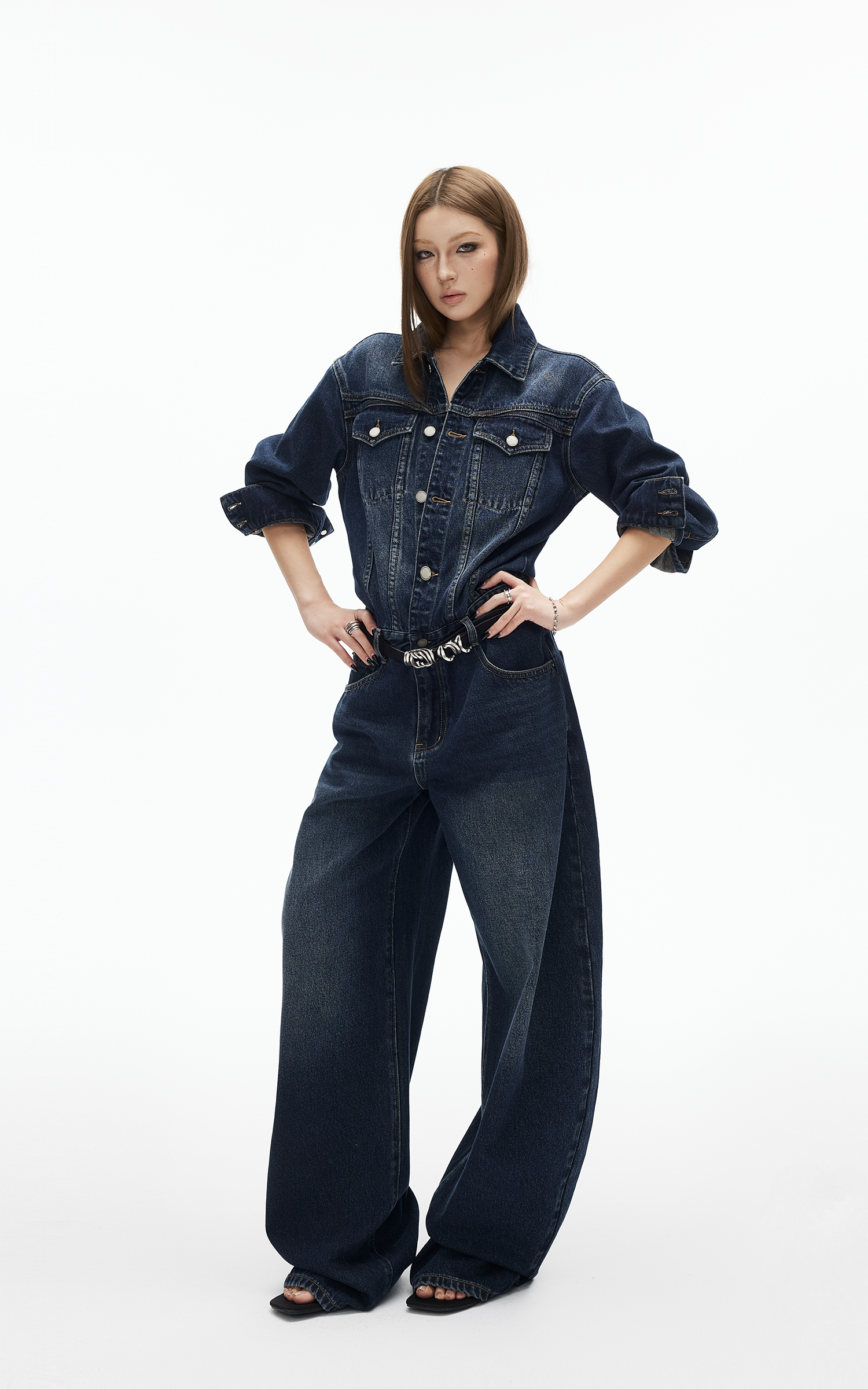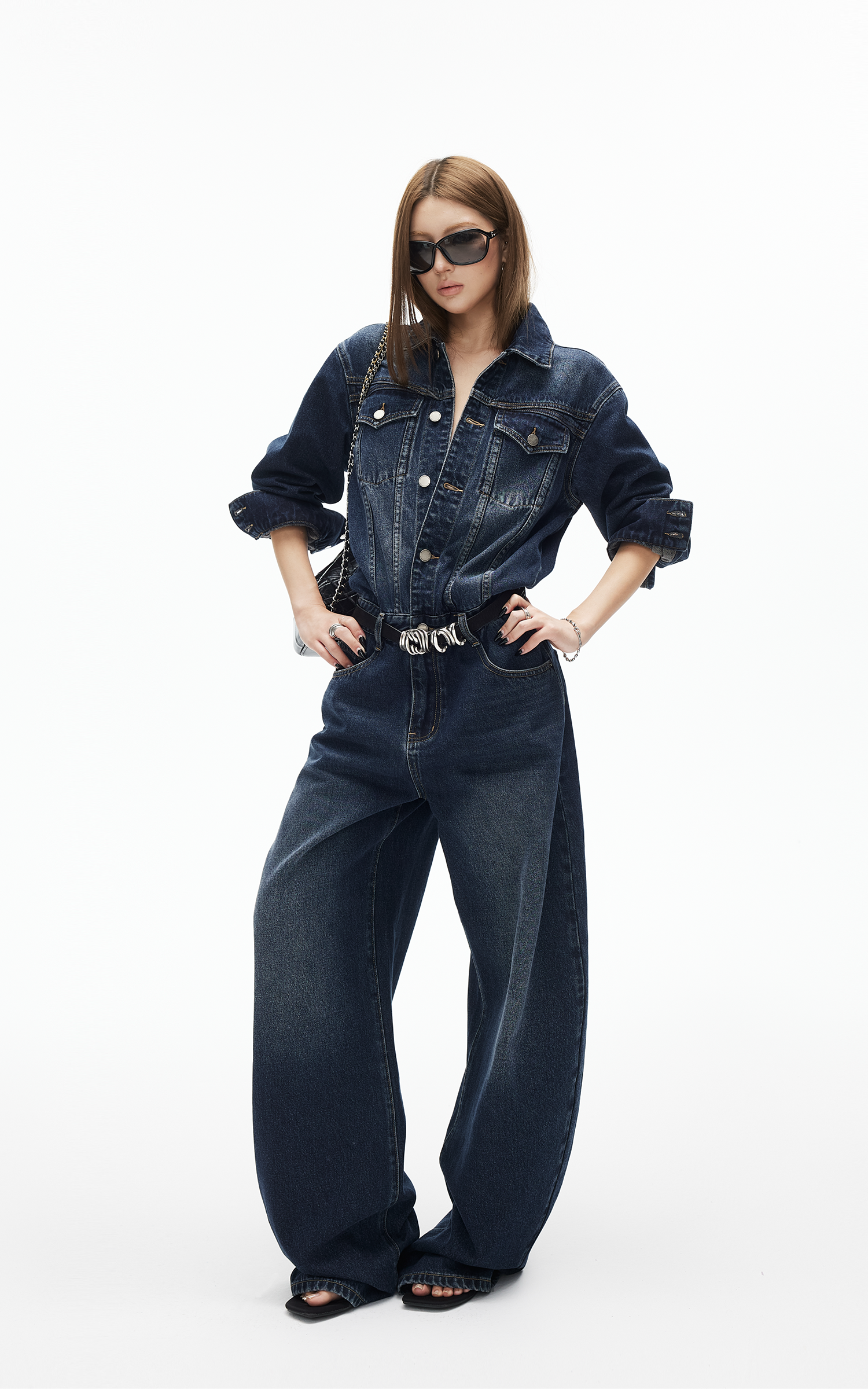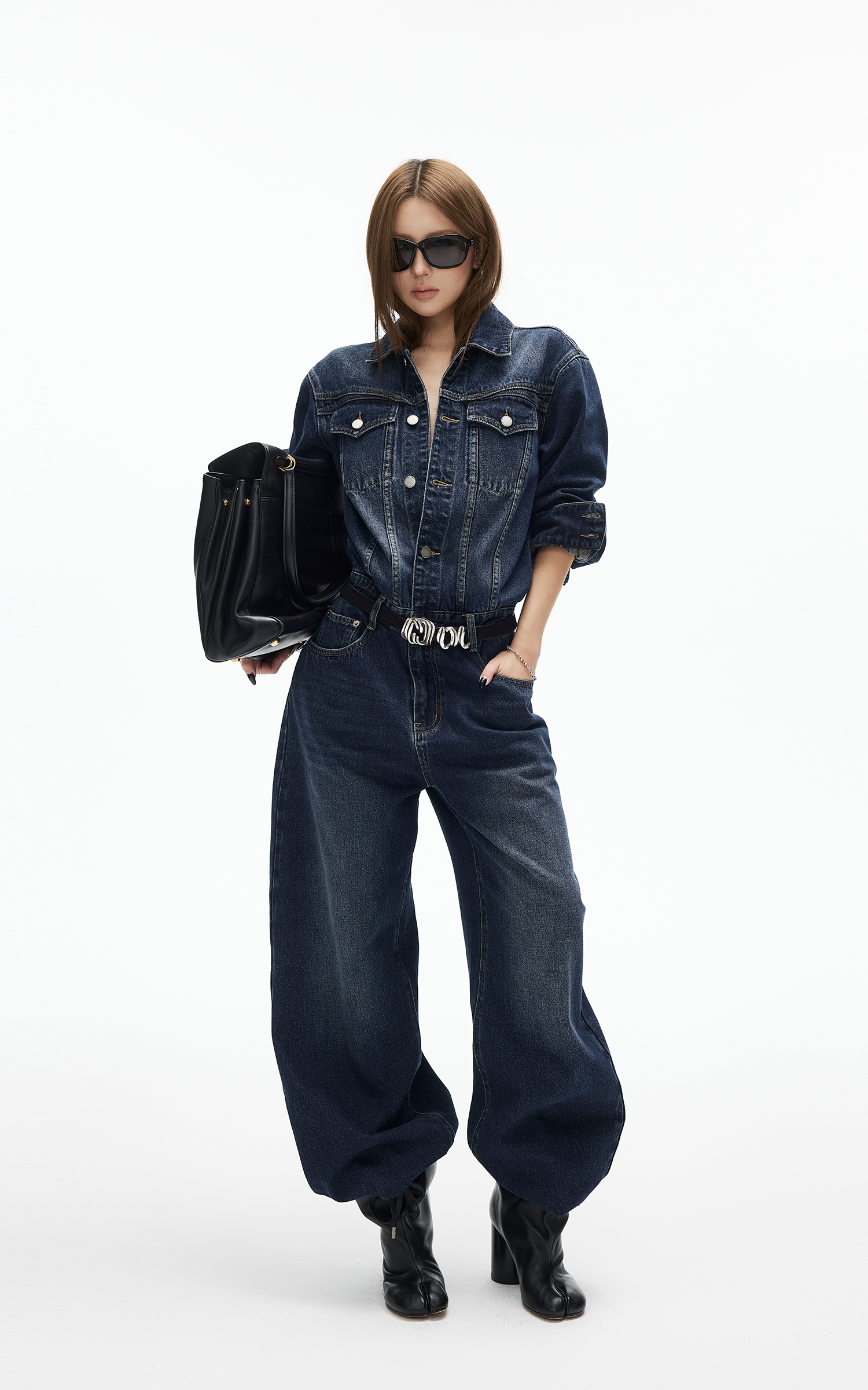 IAMXIAA ダークウォッシュデニムジャンプスーツ ヴィンテージユーティリティスタイル