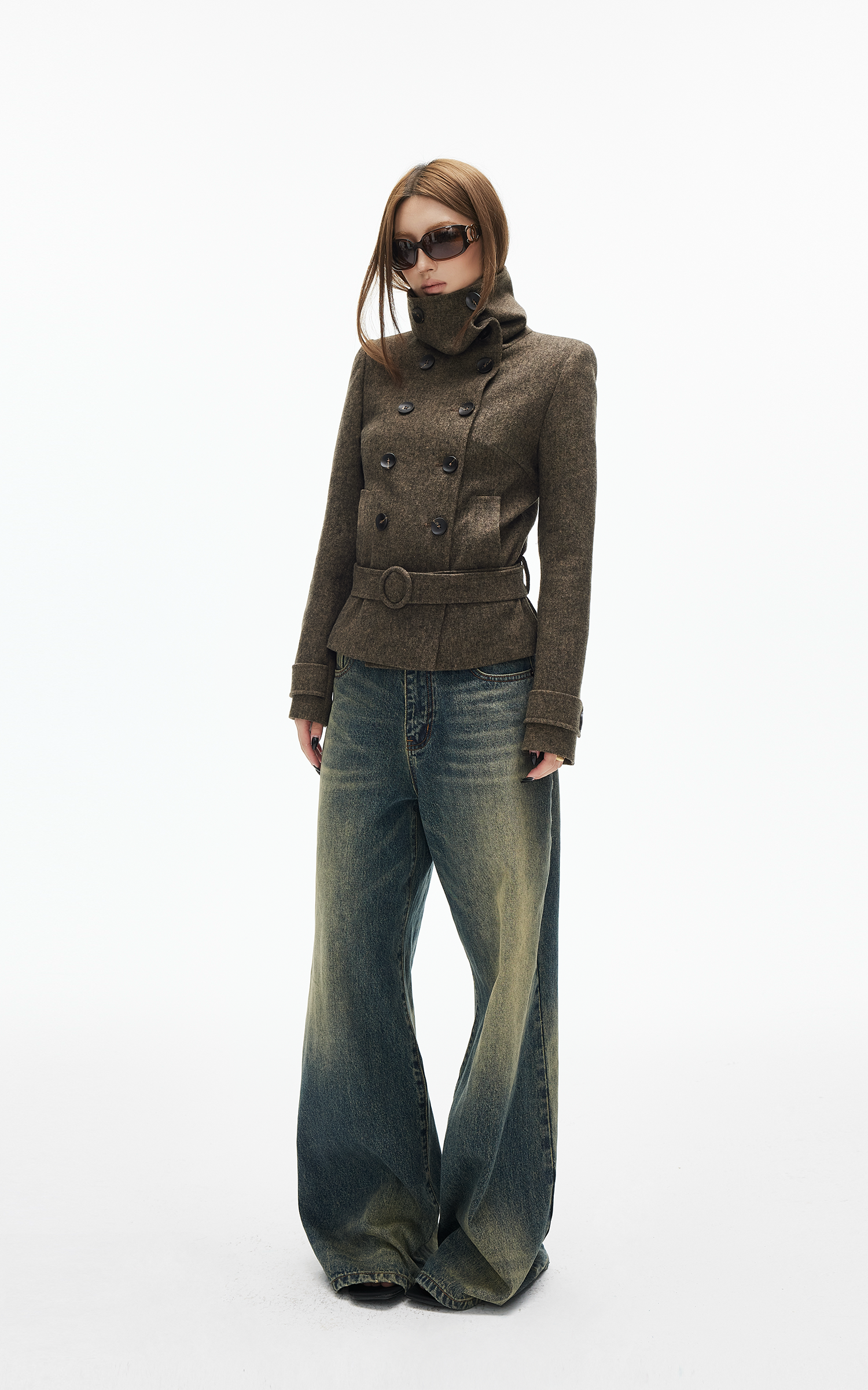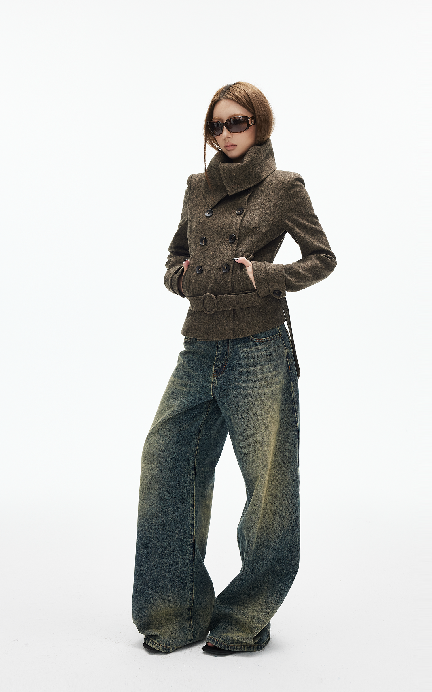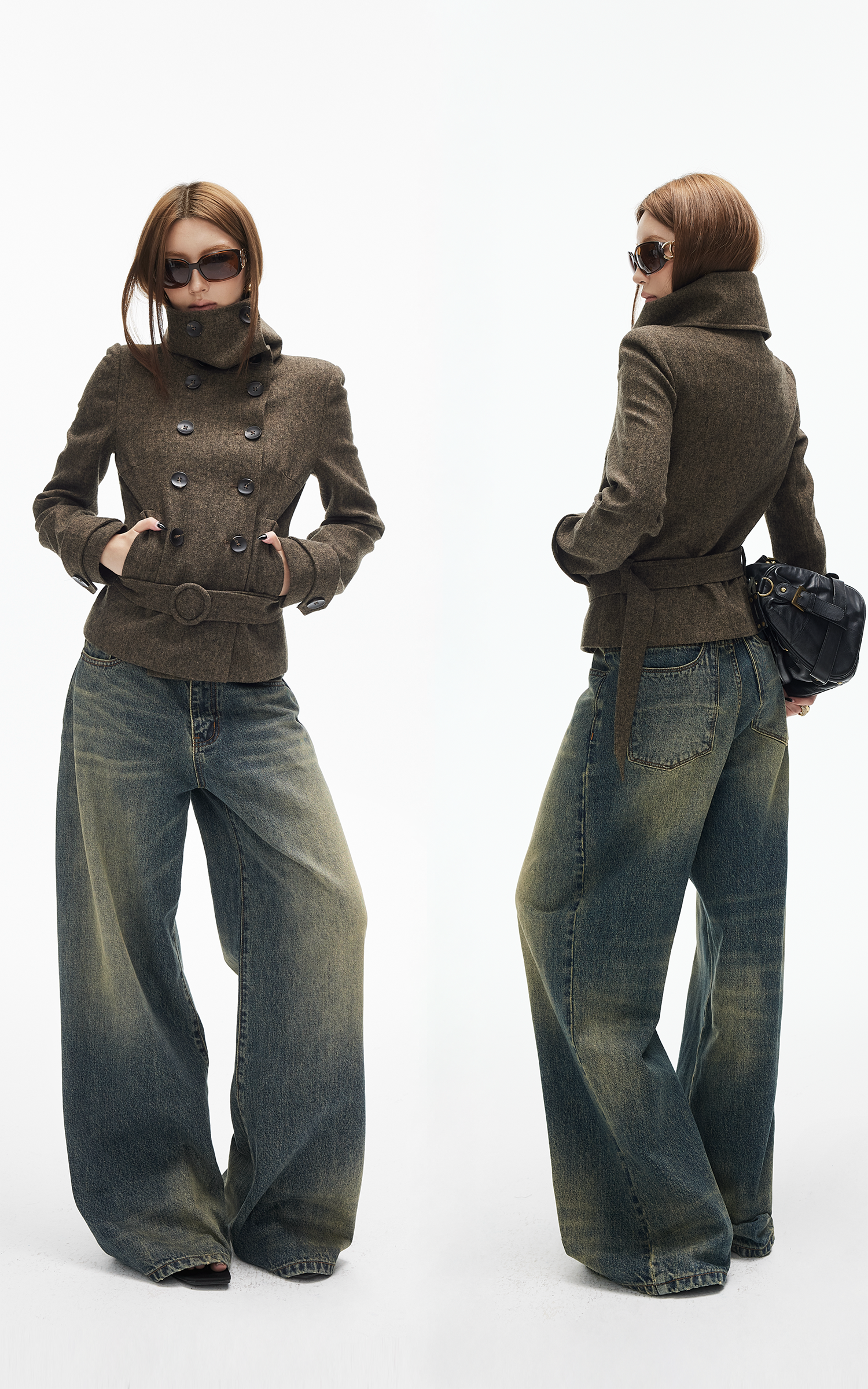 IAMXIAA ヴィンテージウォッシュのワイドレッグジーンズ ダブルボタンウエスト付き