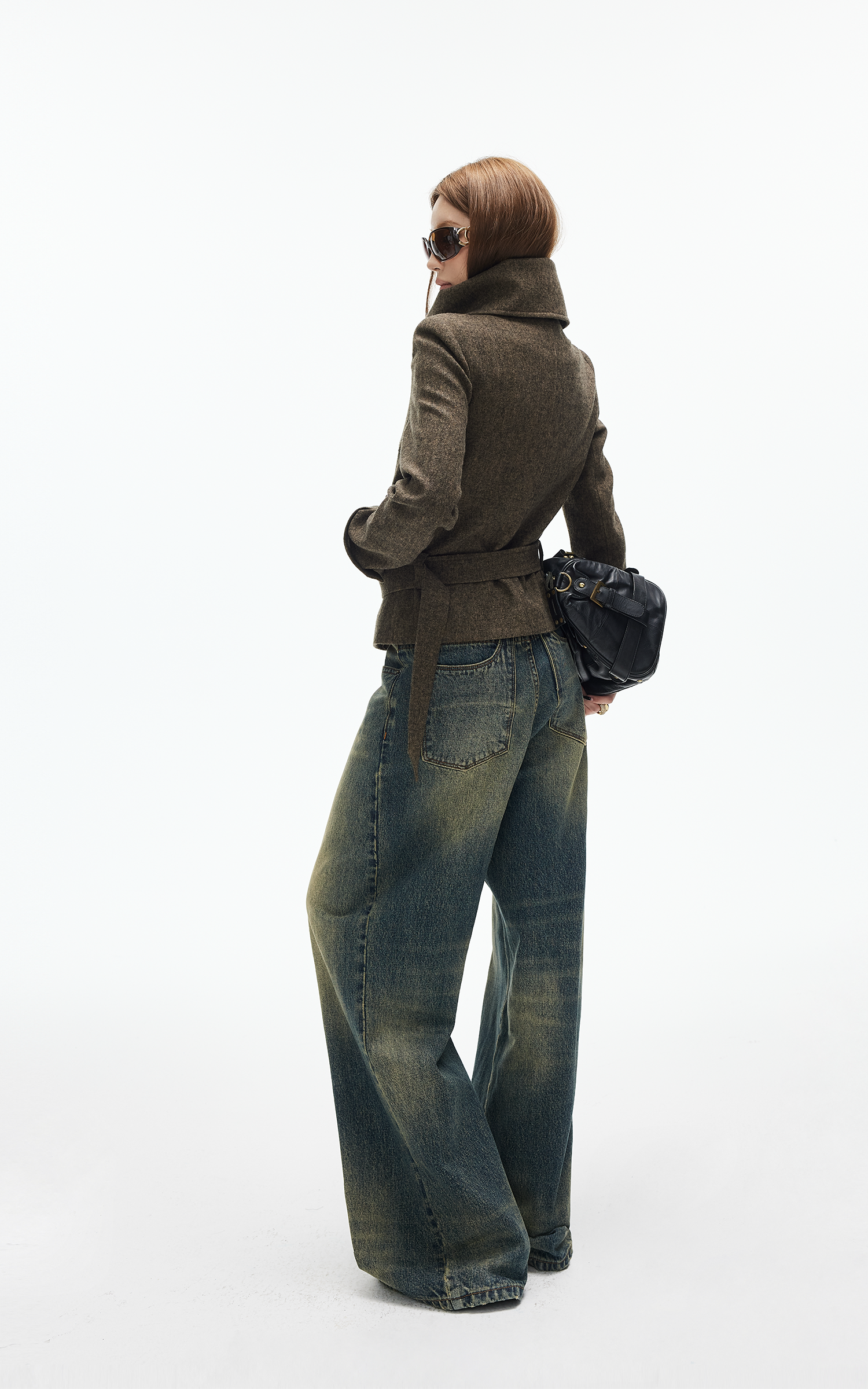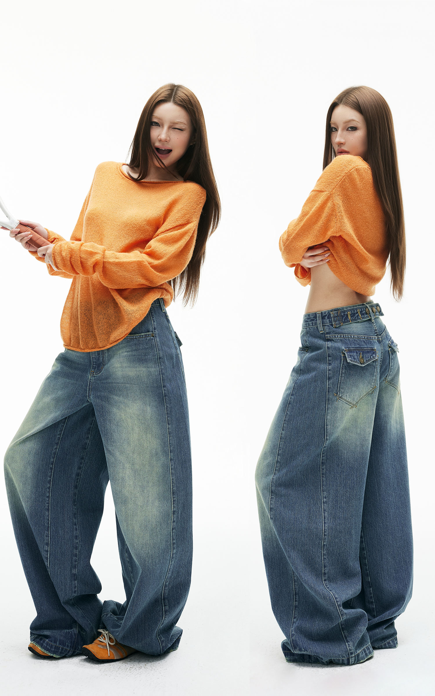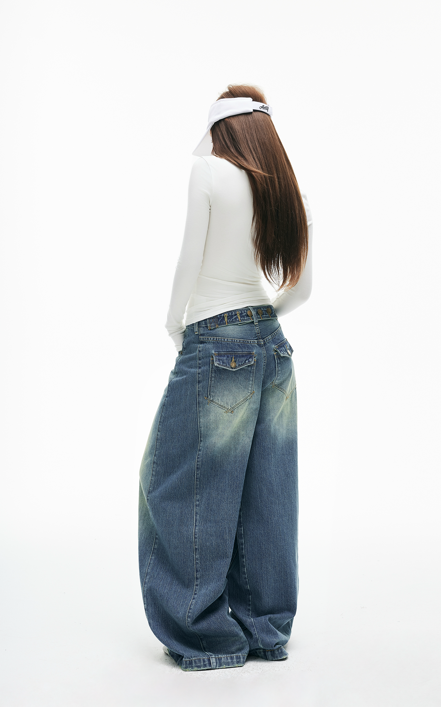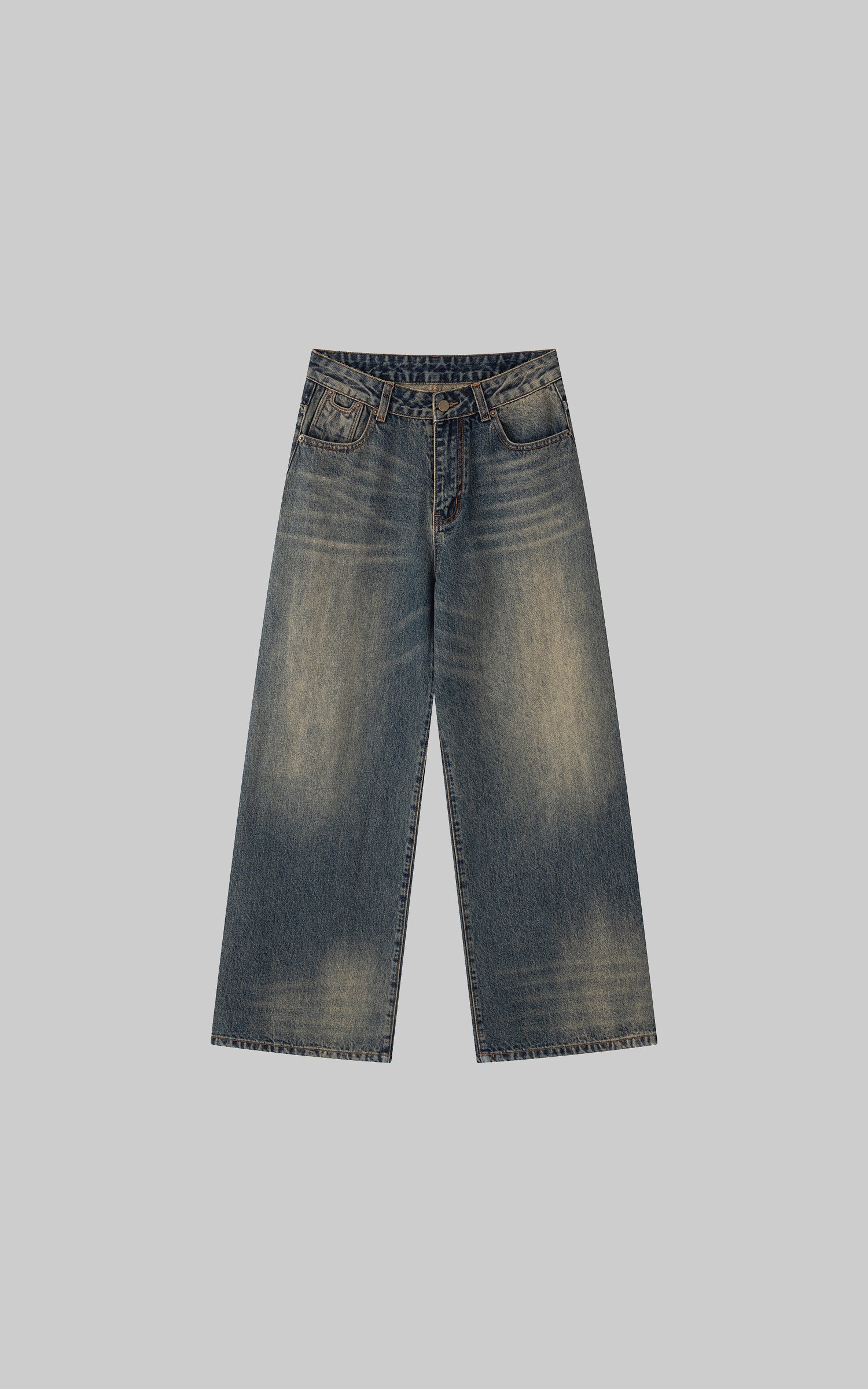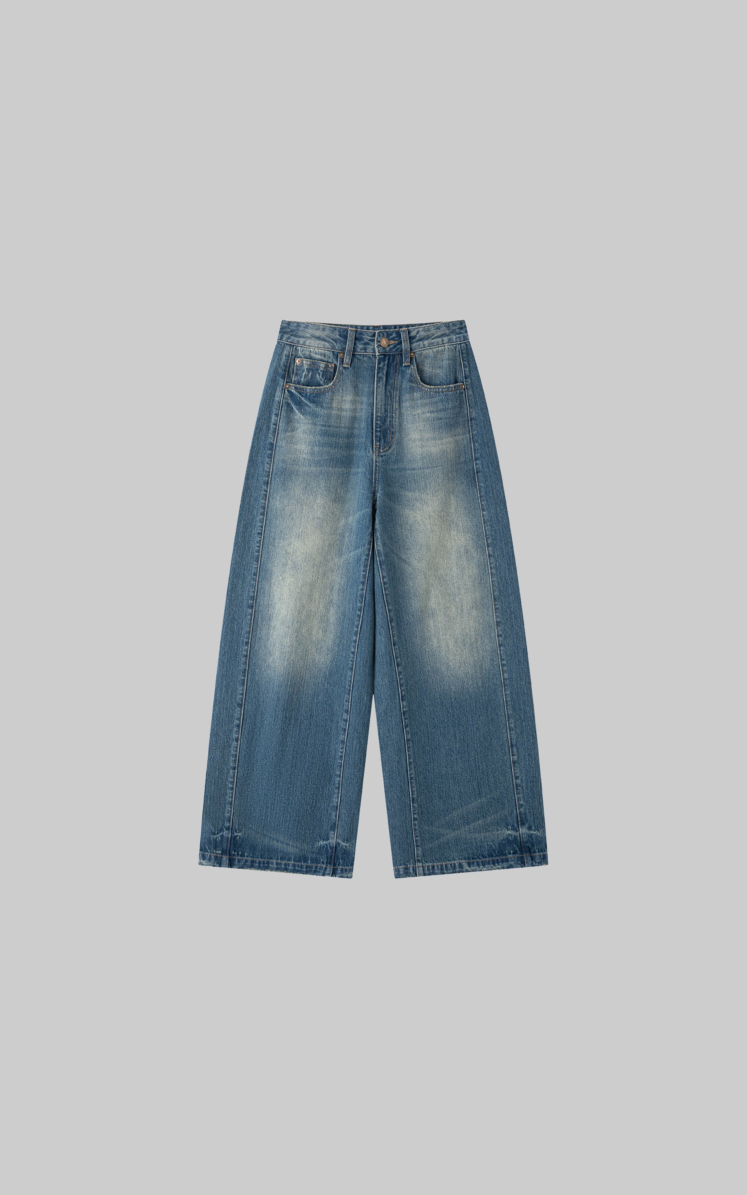 IAMXIAA ヴィンテージウォッシュ ワイドレッグデニムジーンズ
