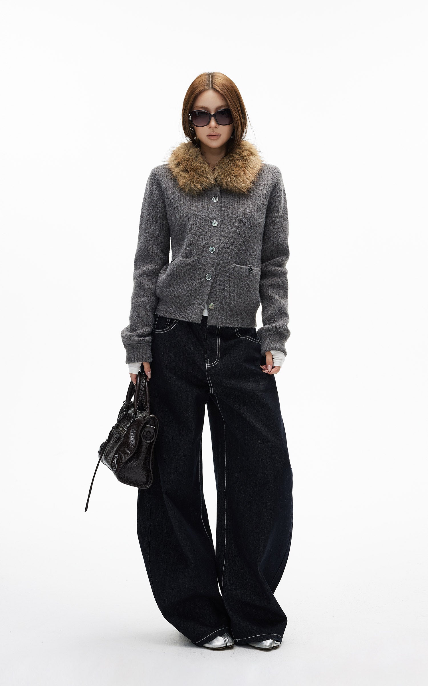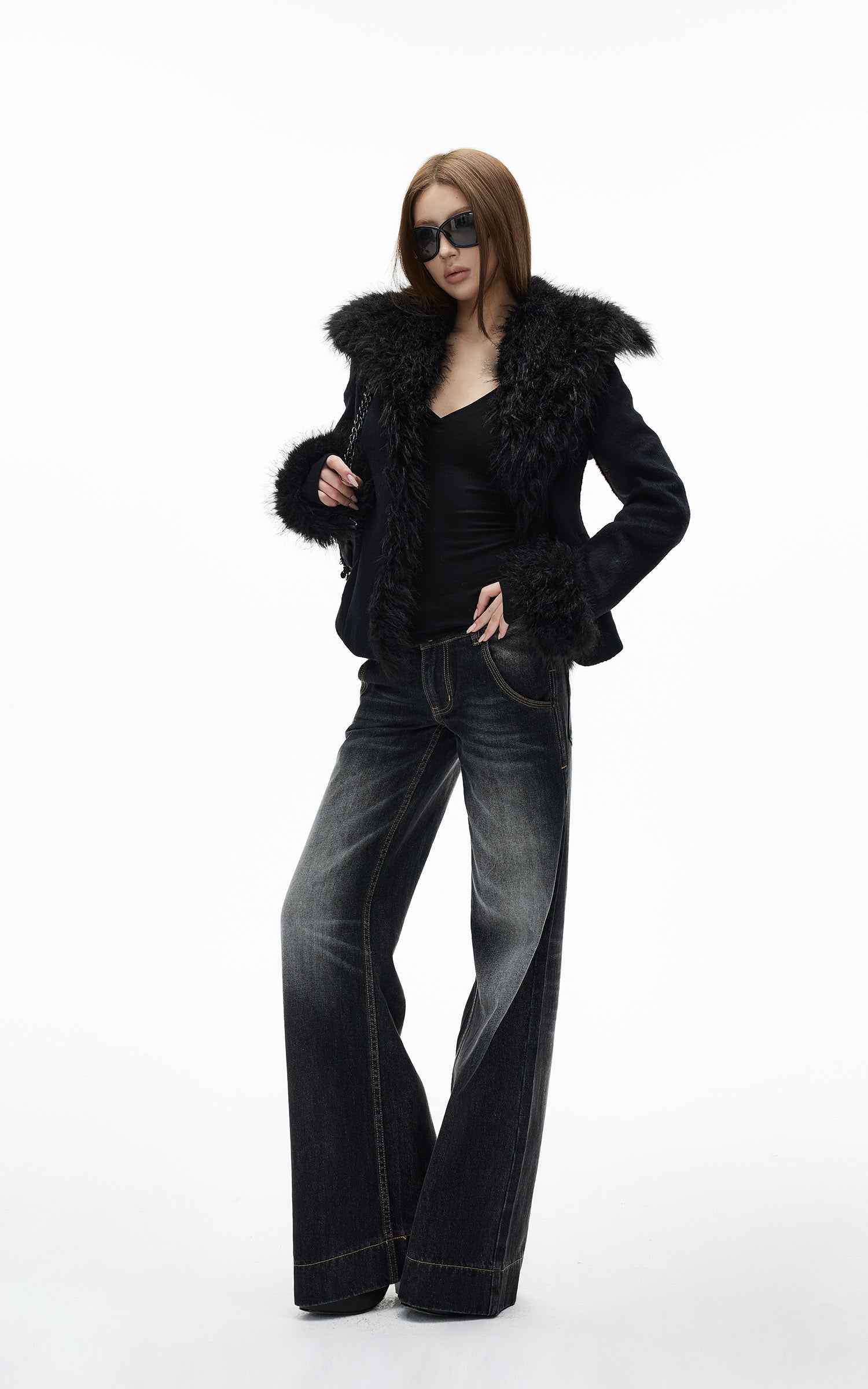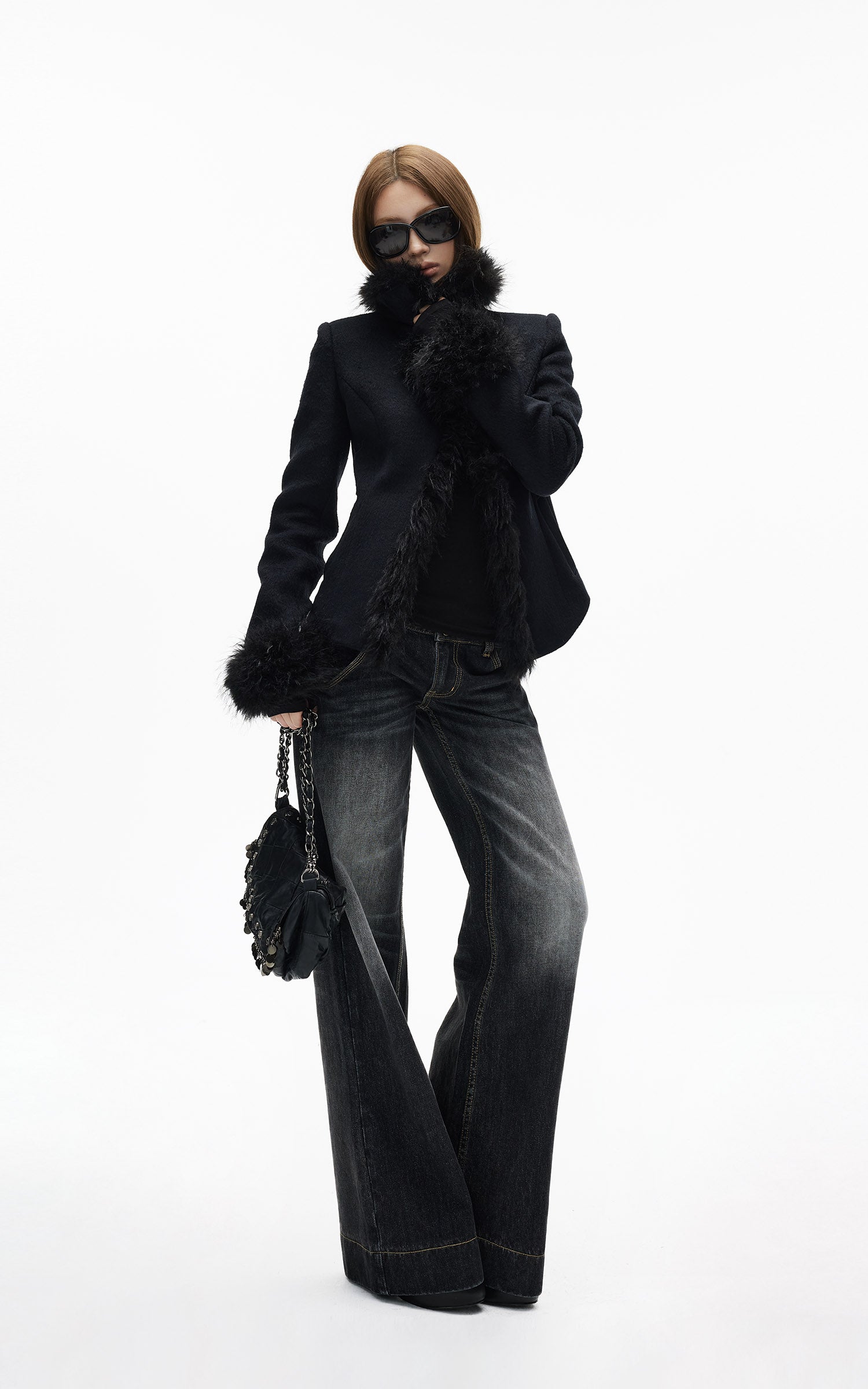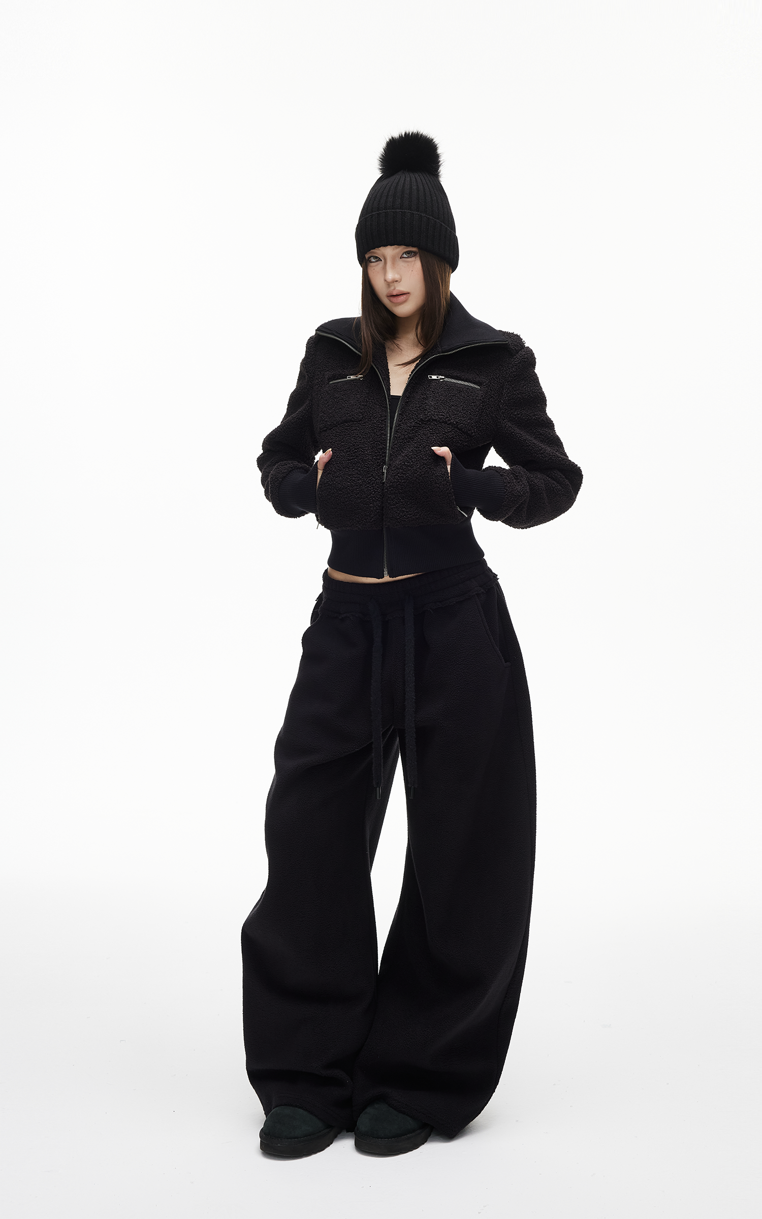 IAMXIAA フェイクファー トリム フーディ ジップ ジャケット & ワイドレッグ スウェットパンツ セット