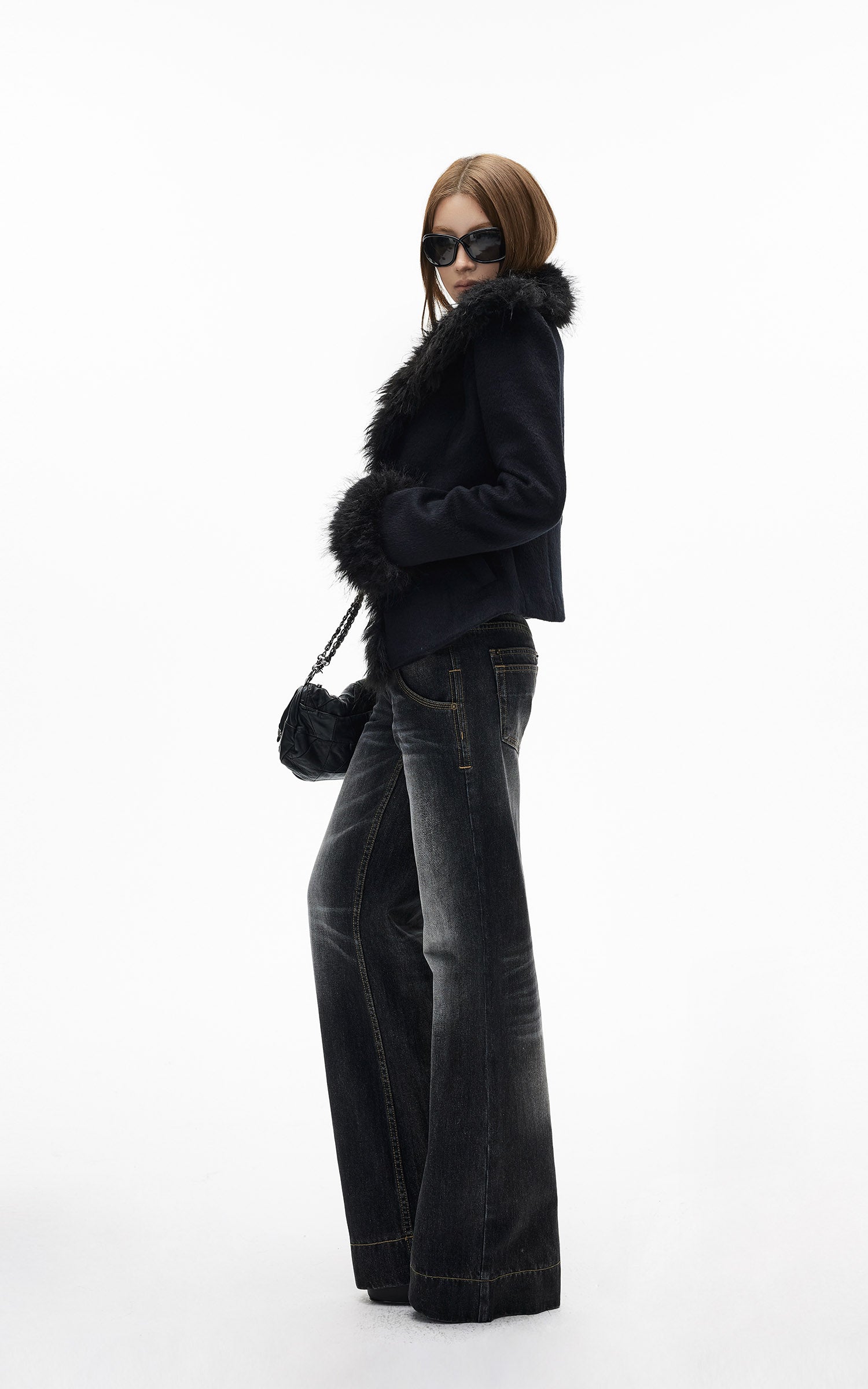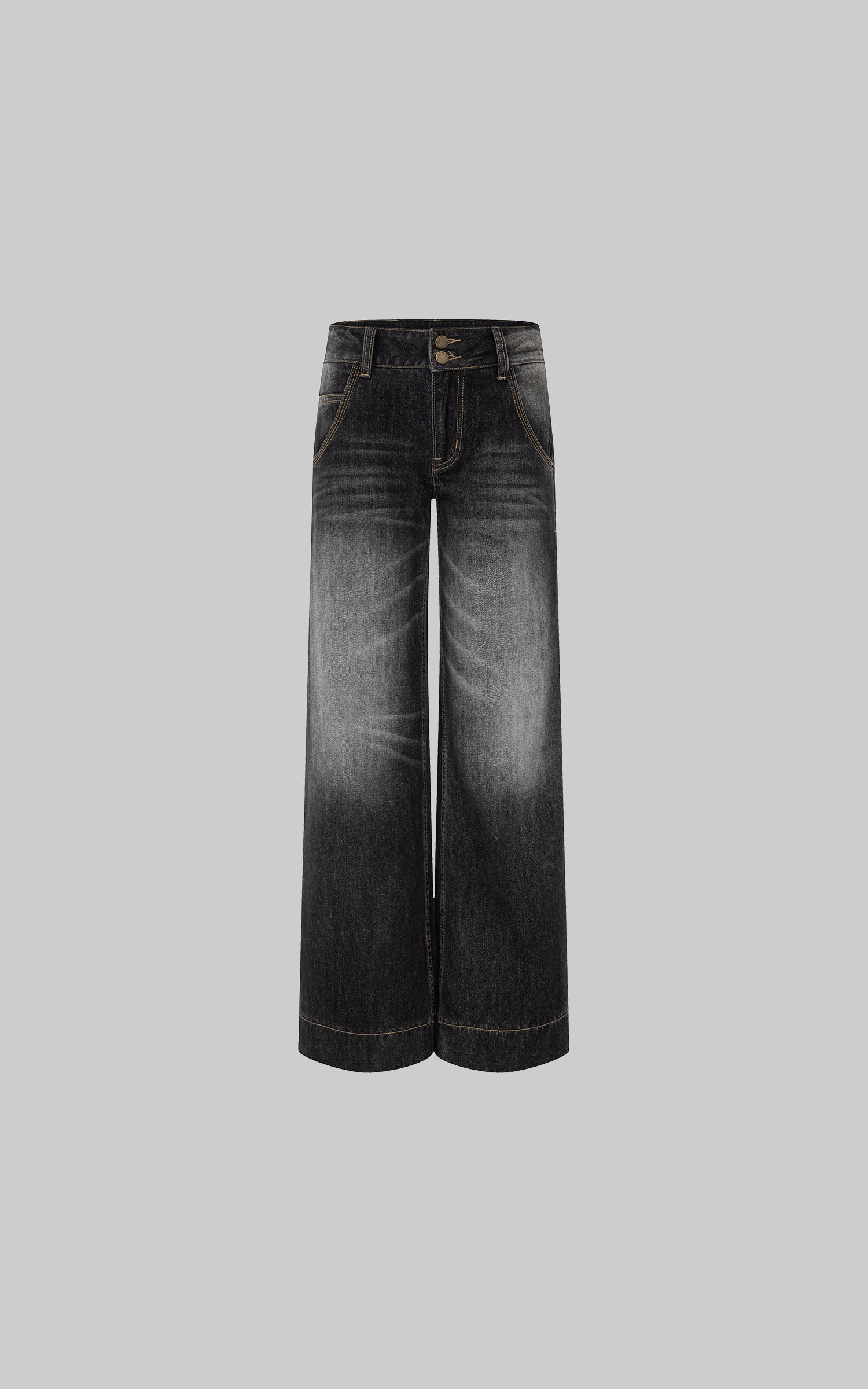IAMXIAA ローライズヴィンテージウォッシュワイドレッグジーンズ