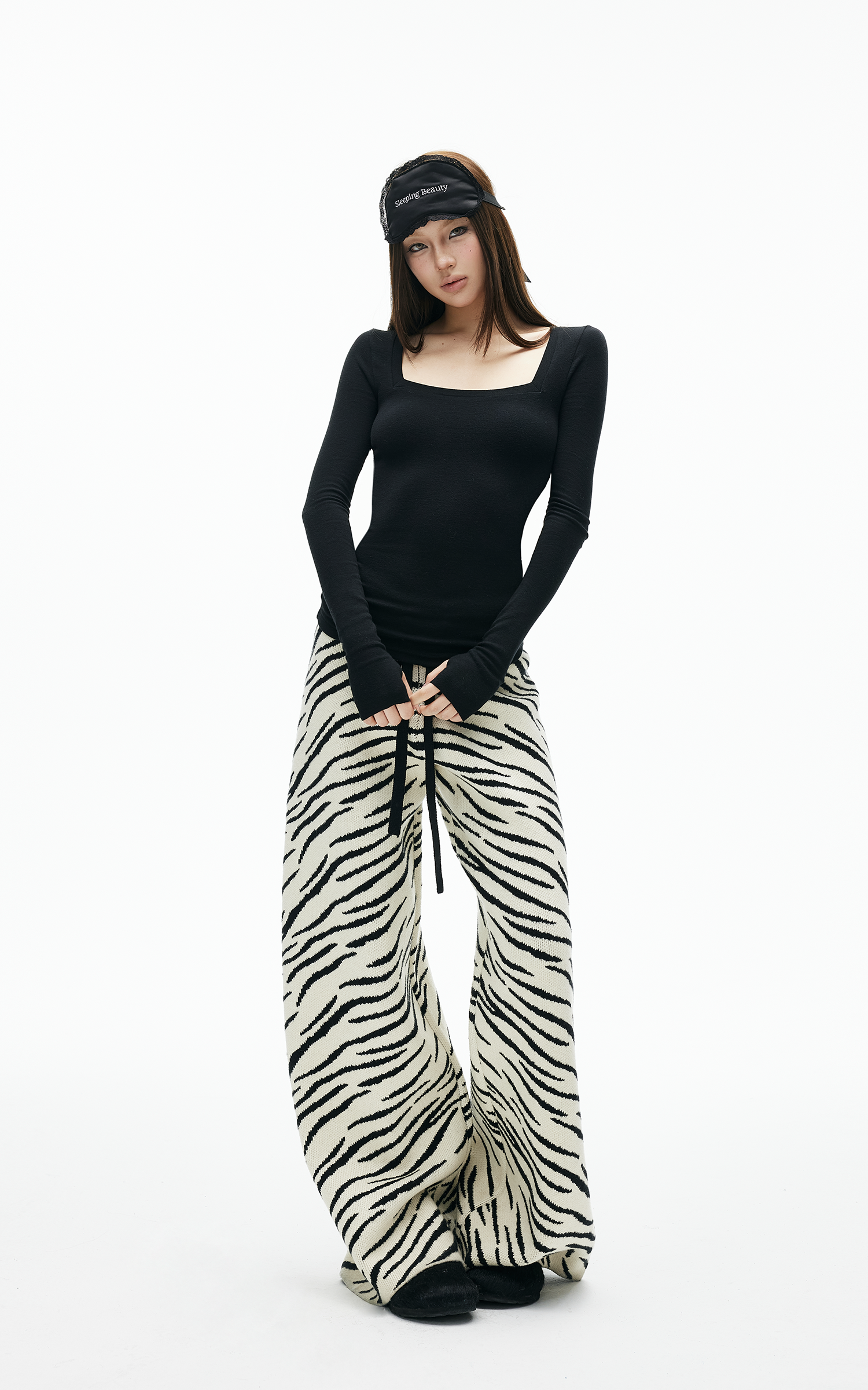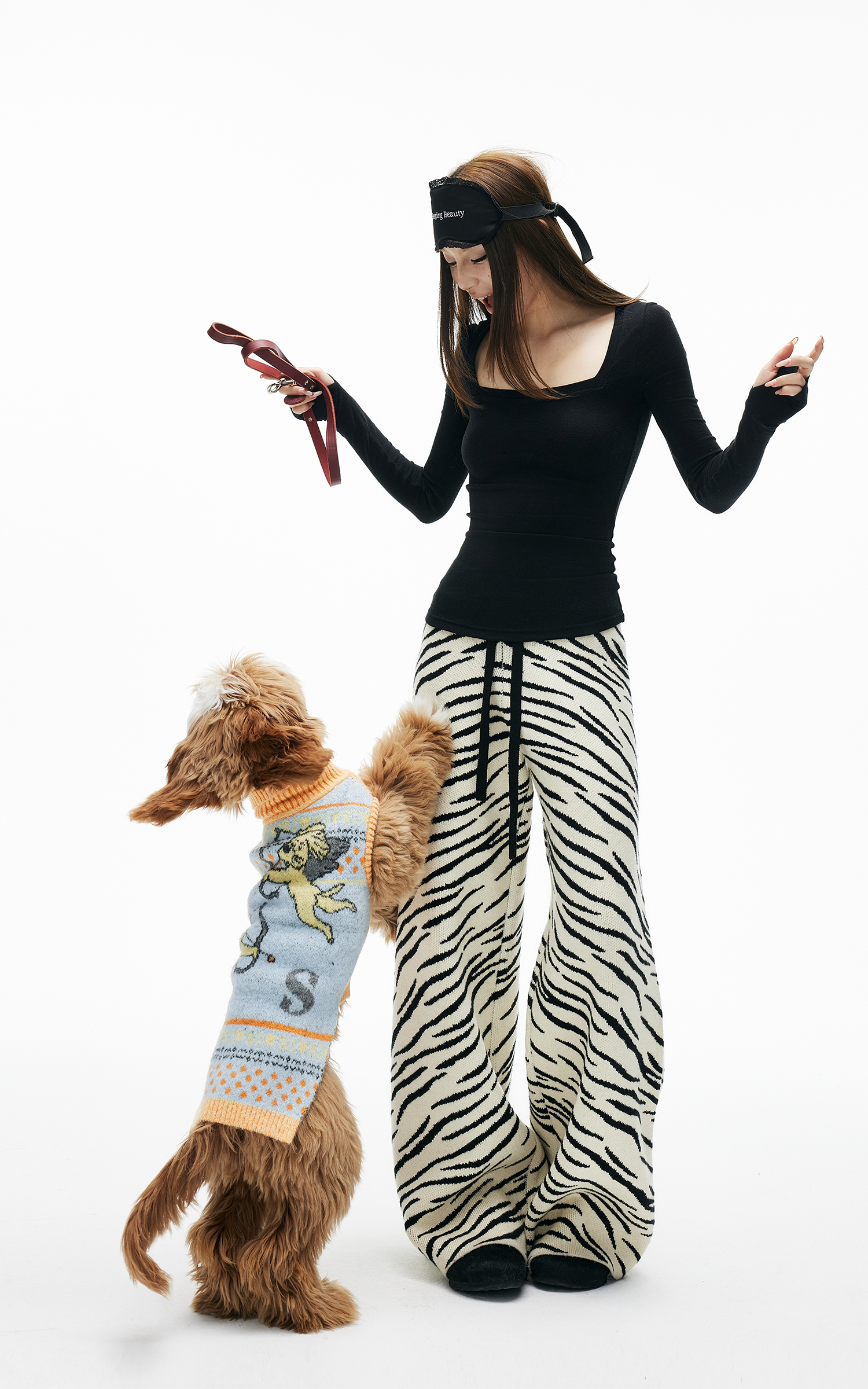 IAMXIAA ゼブラニットワイドレッグラウンジパンツ