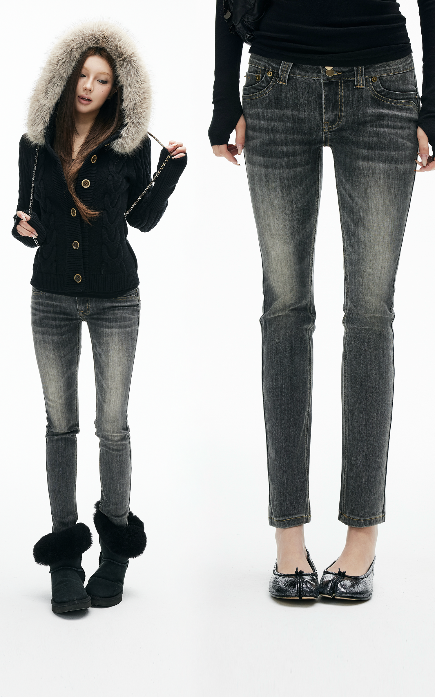 IAMXIAA 薄いスキニーローライズグレーのジーンズ