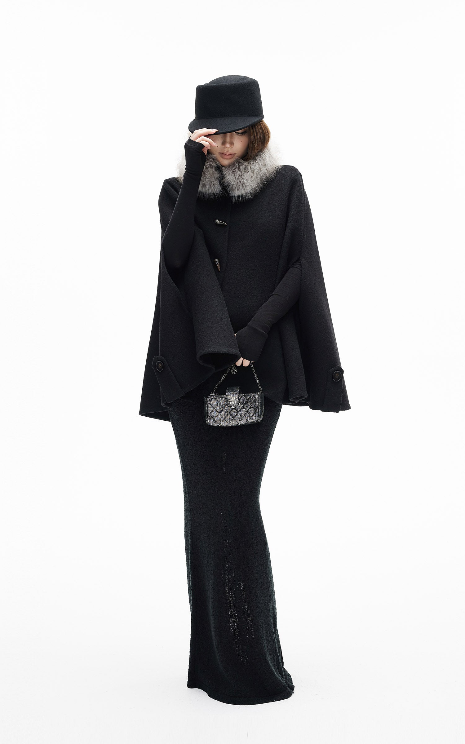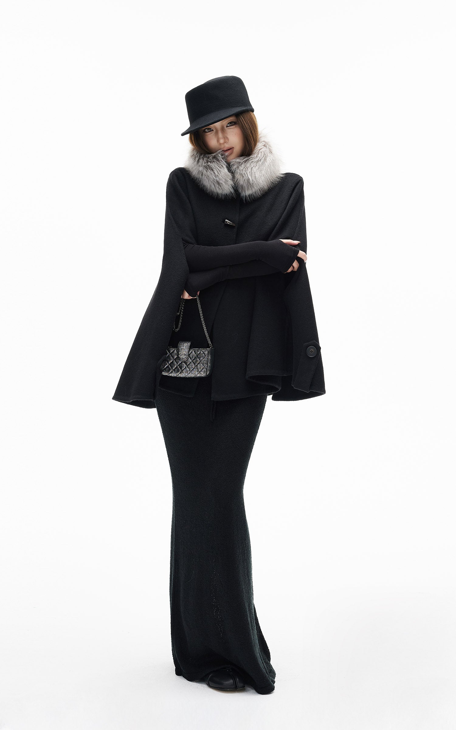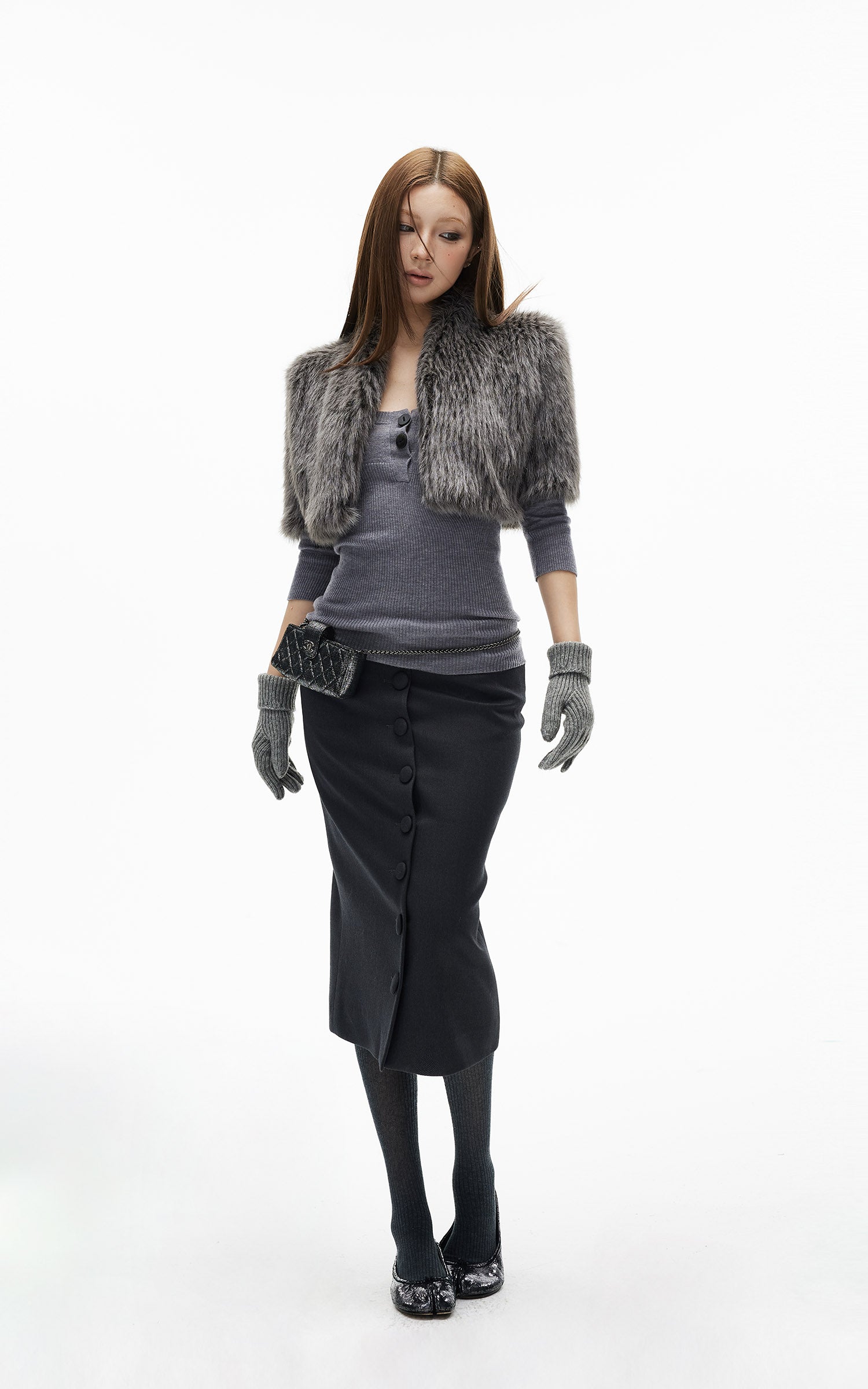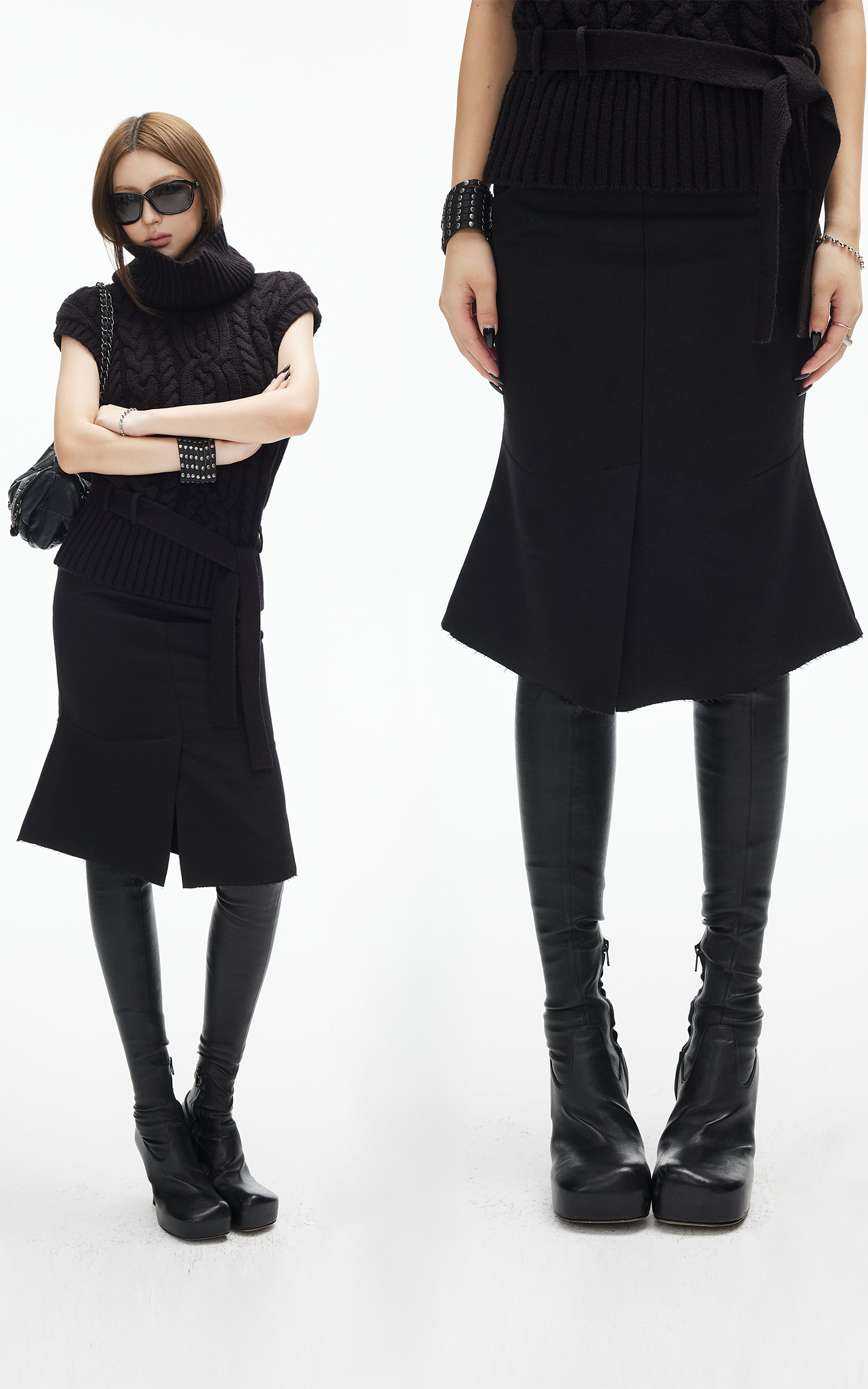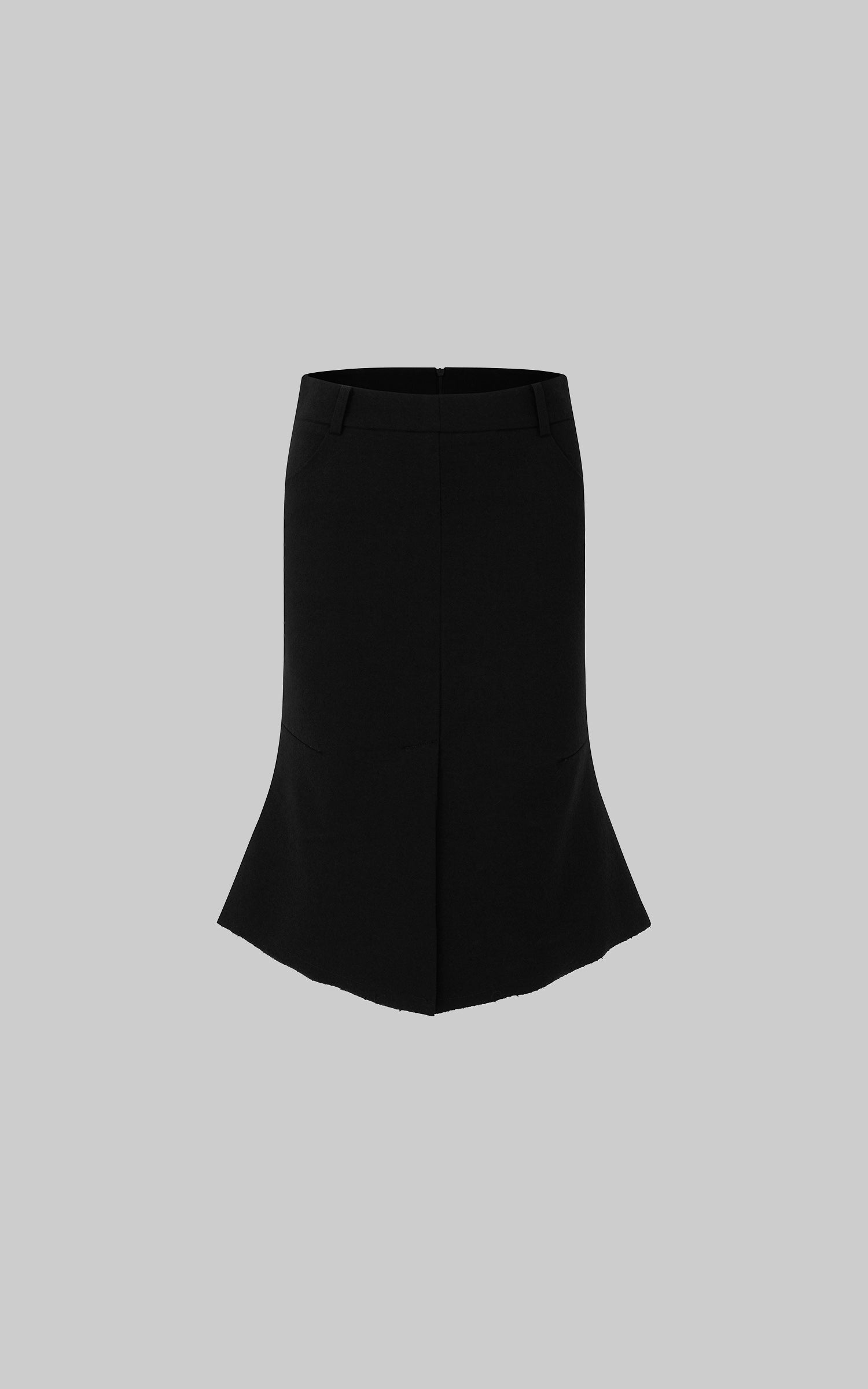 IAMXIAA ウール風ハイウエストマーメイドミディスカート・切りっぱなし裾