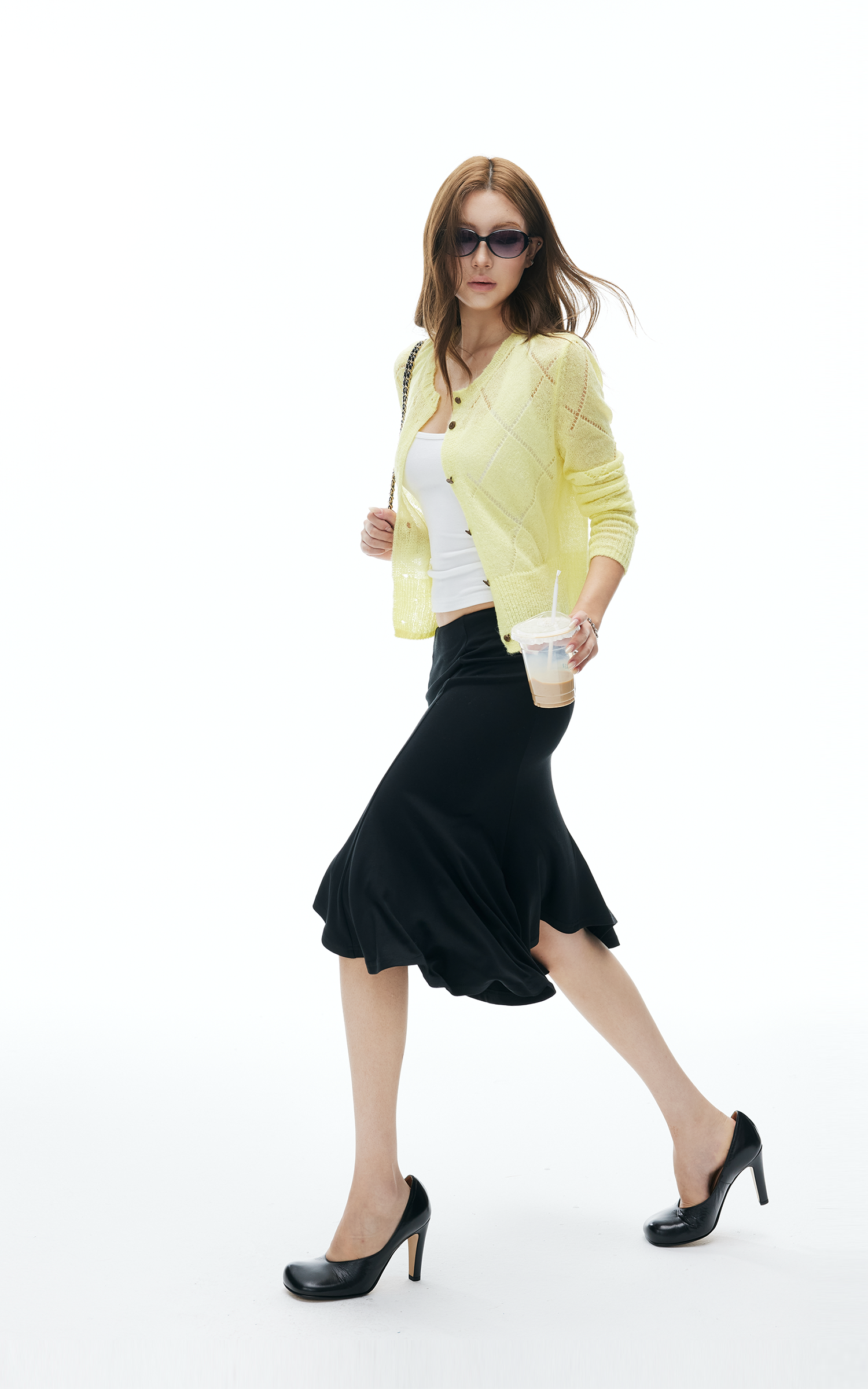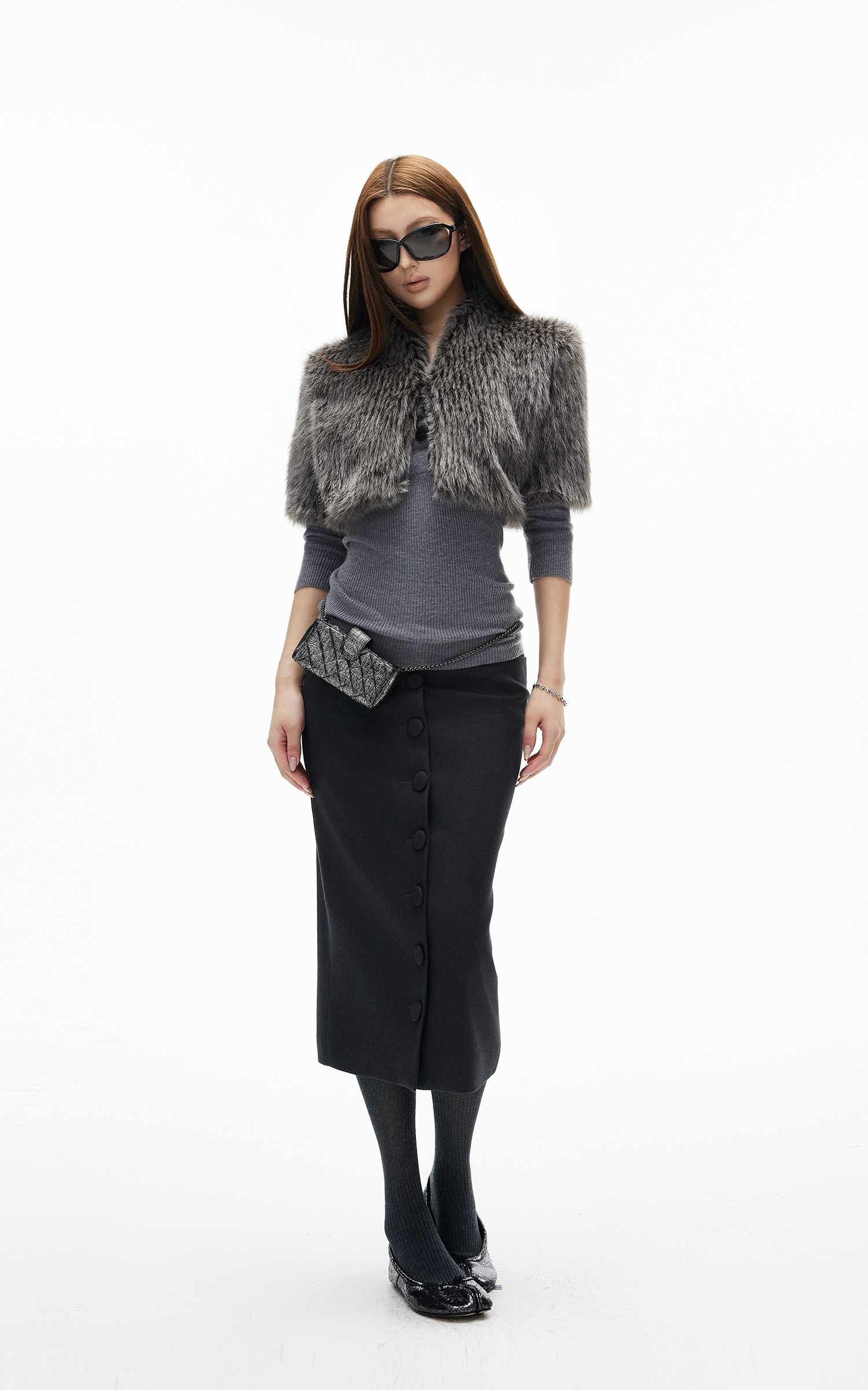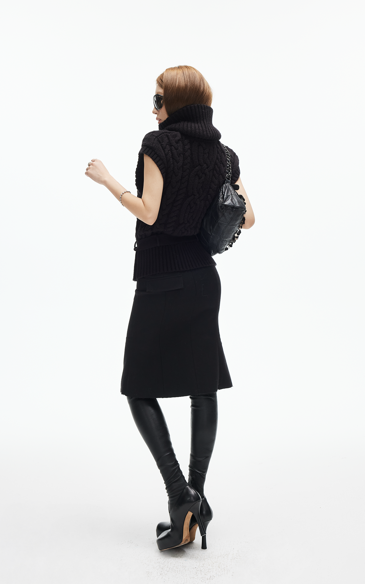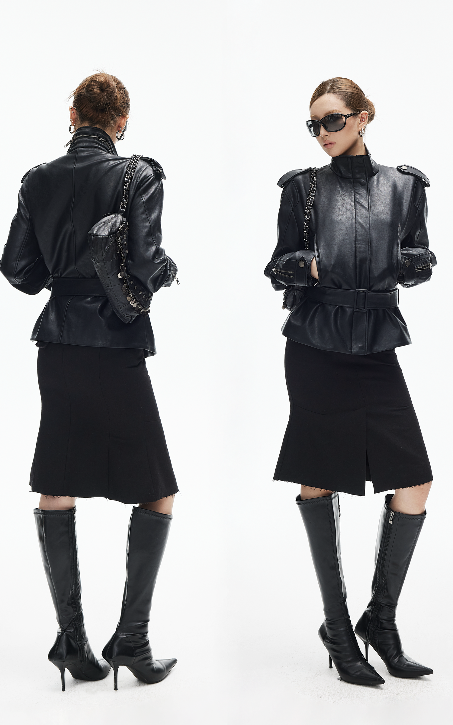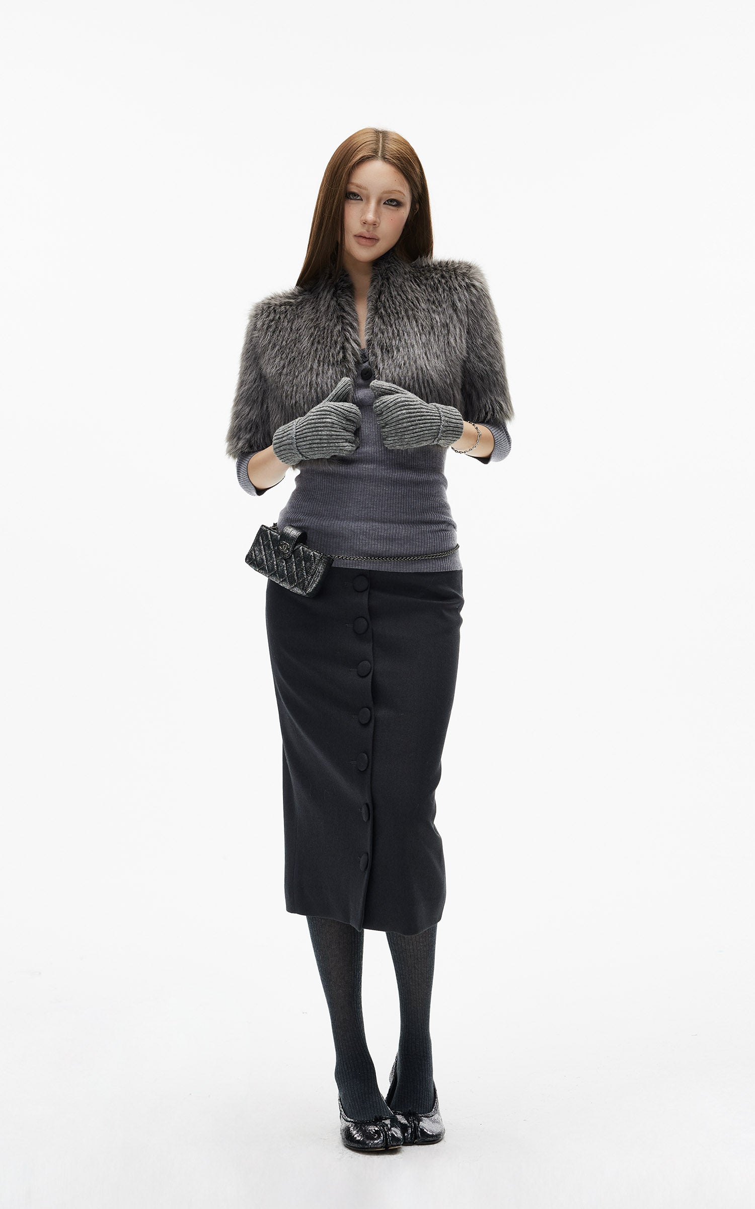 IAMXIAA スカルプテッドハイウエストミディスカート