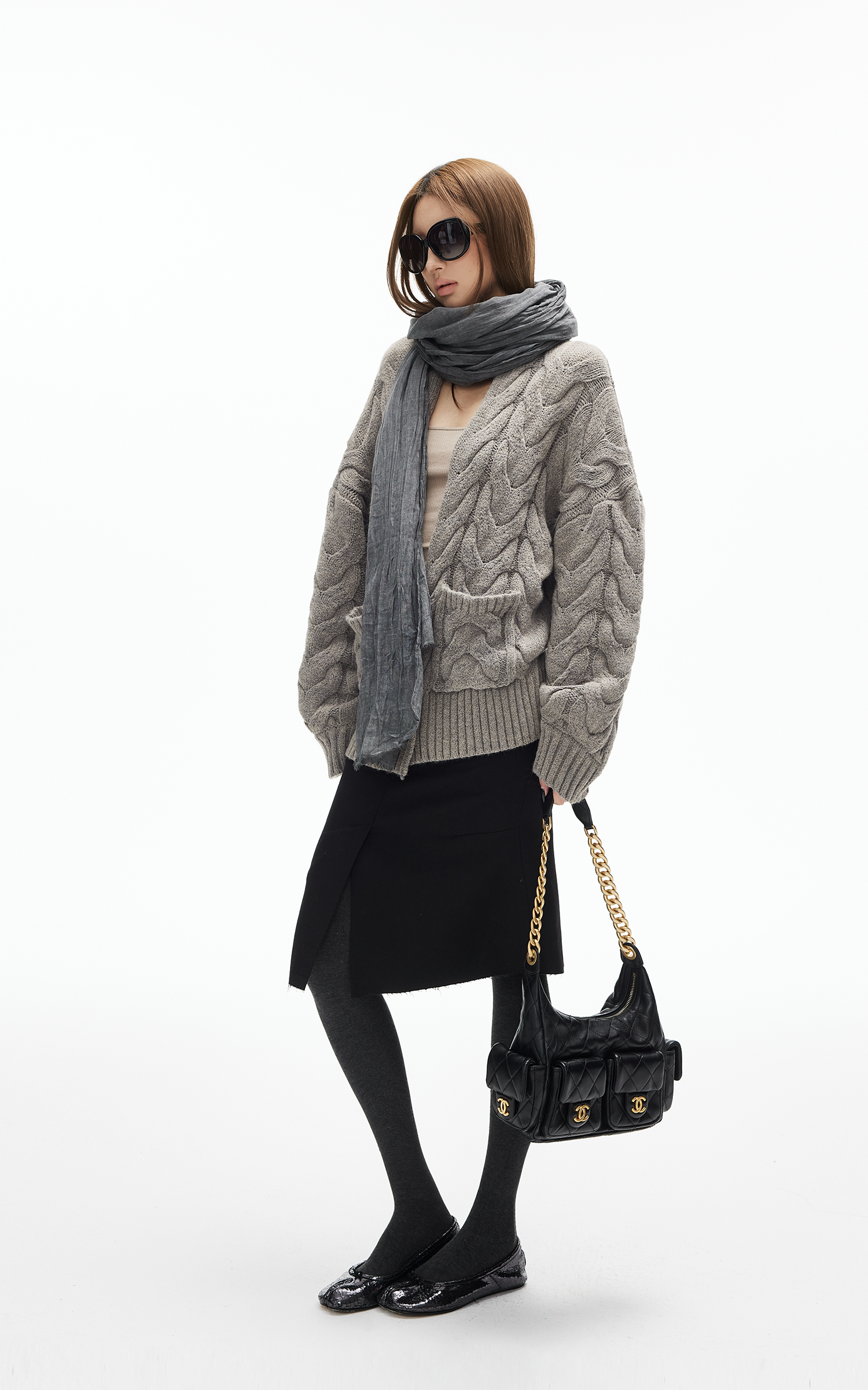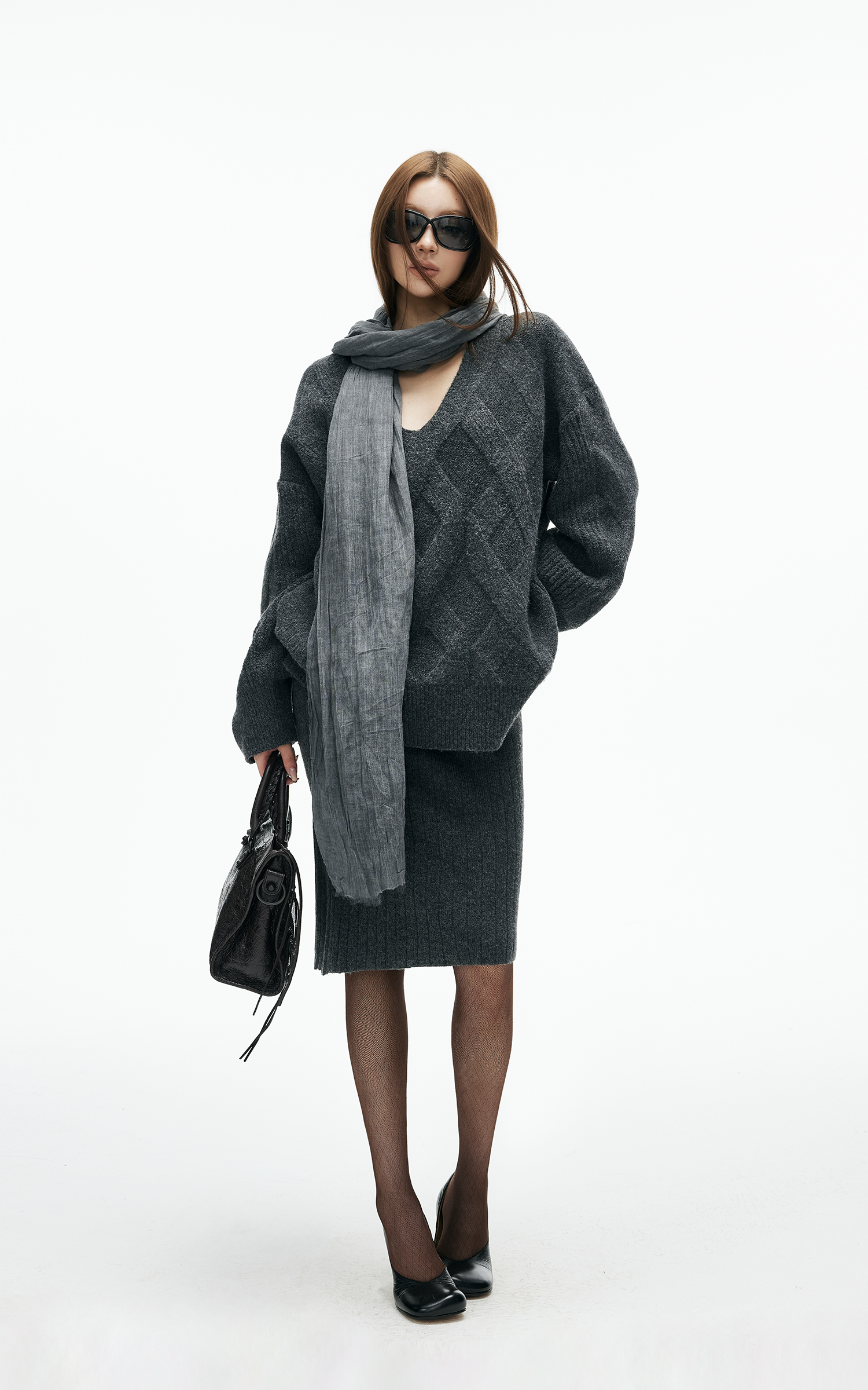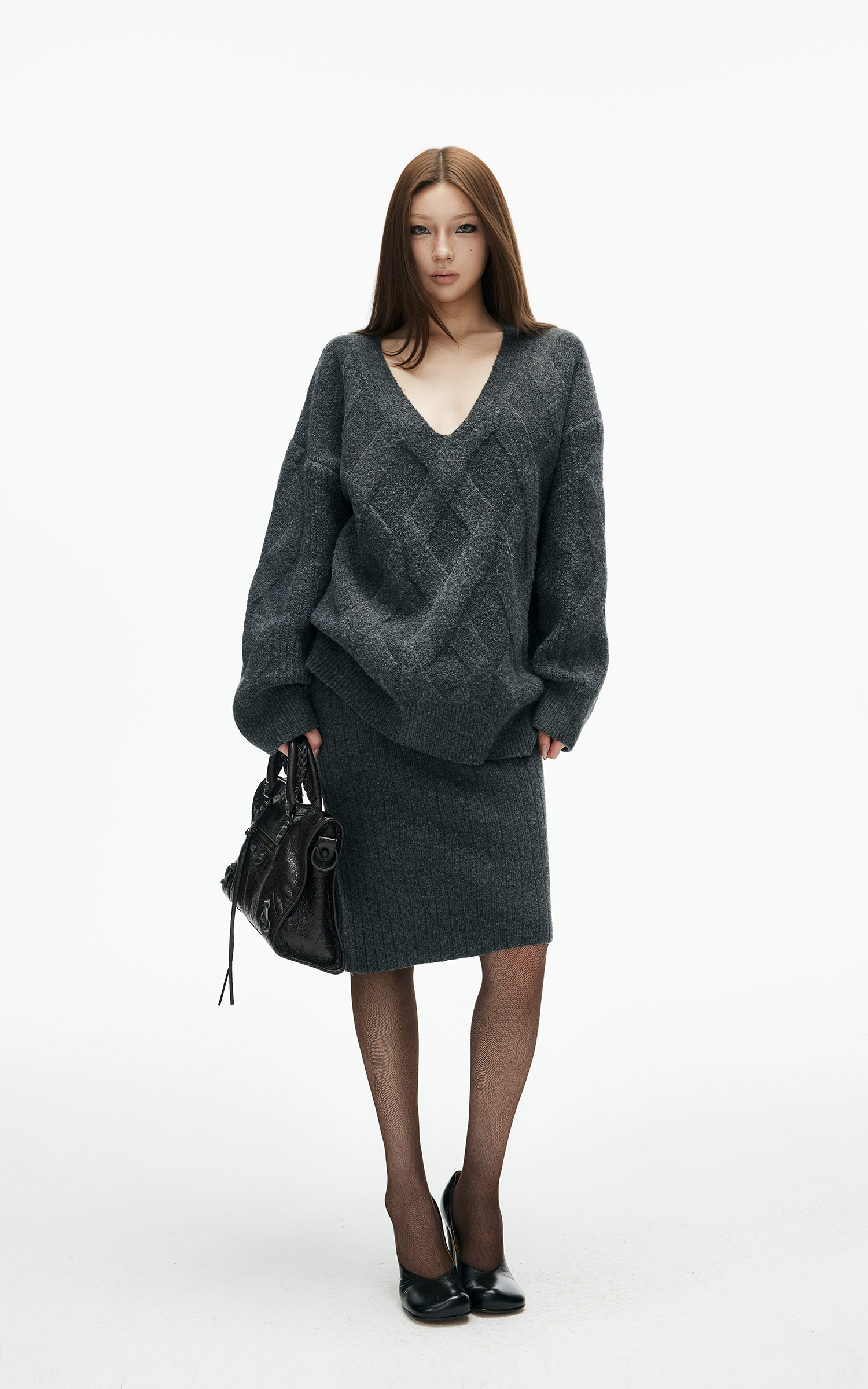 IAMXIAA ケーブルニットセーター & リブスカート2点セット