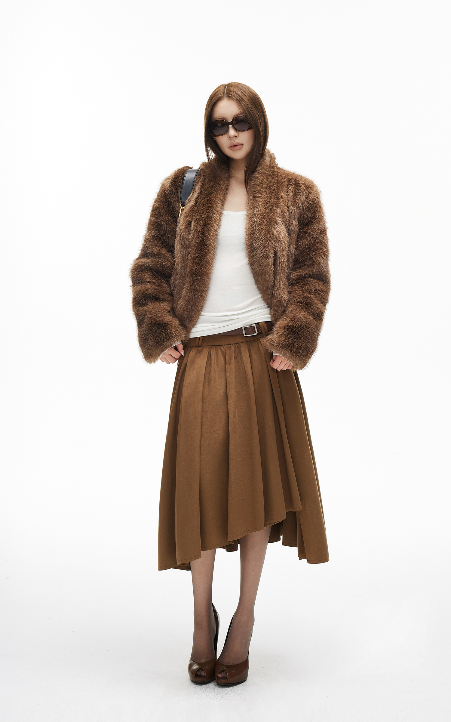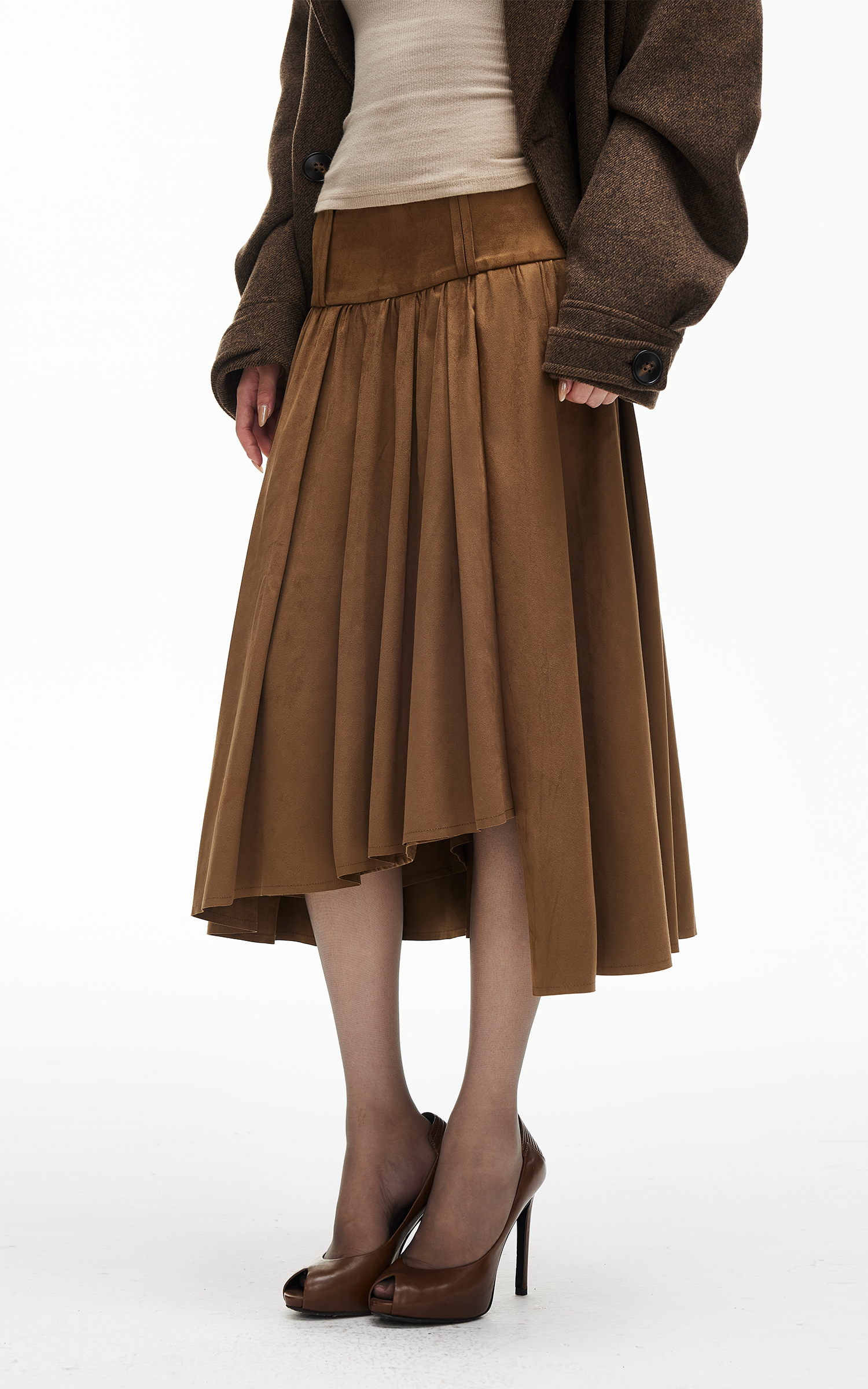 IAMXIAA アシンメトリックプリーツミディスカート ハイウエストディテール付き