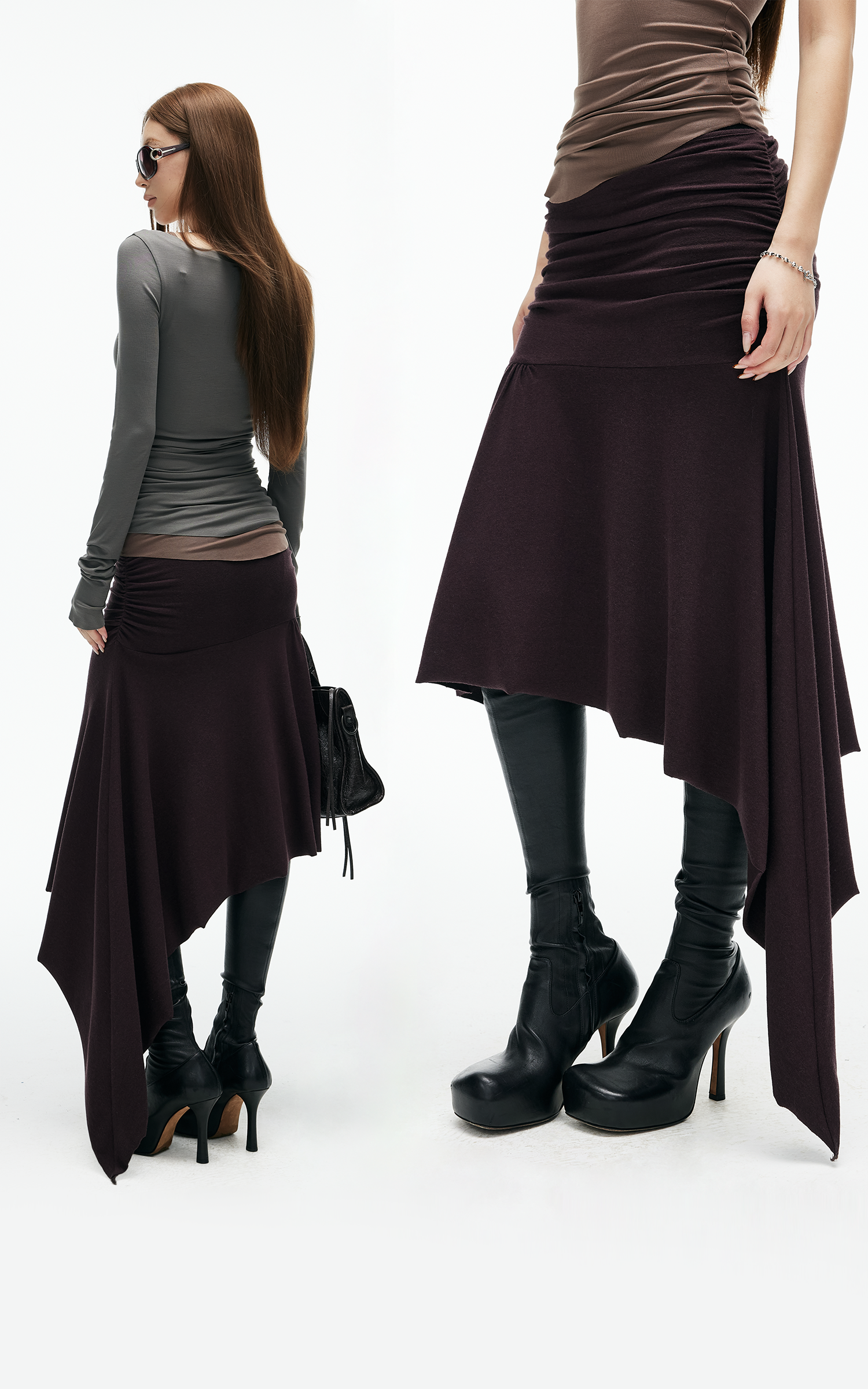 IAMXIAA アシンメトリックルーシュミディスカート