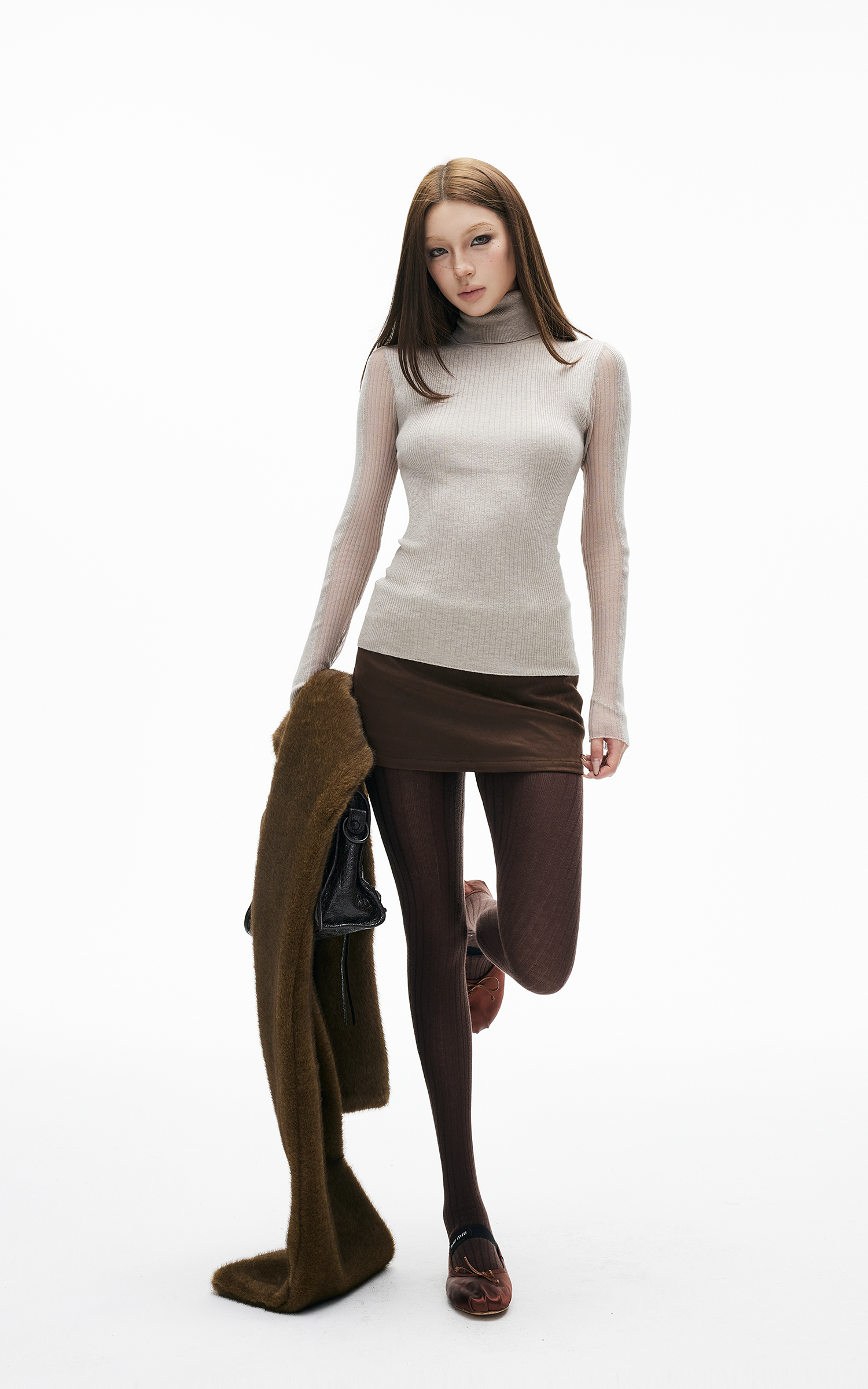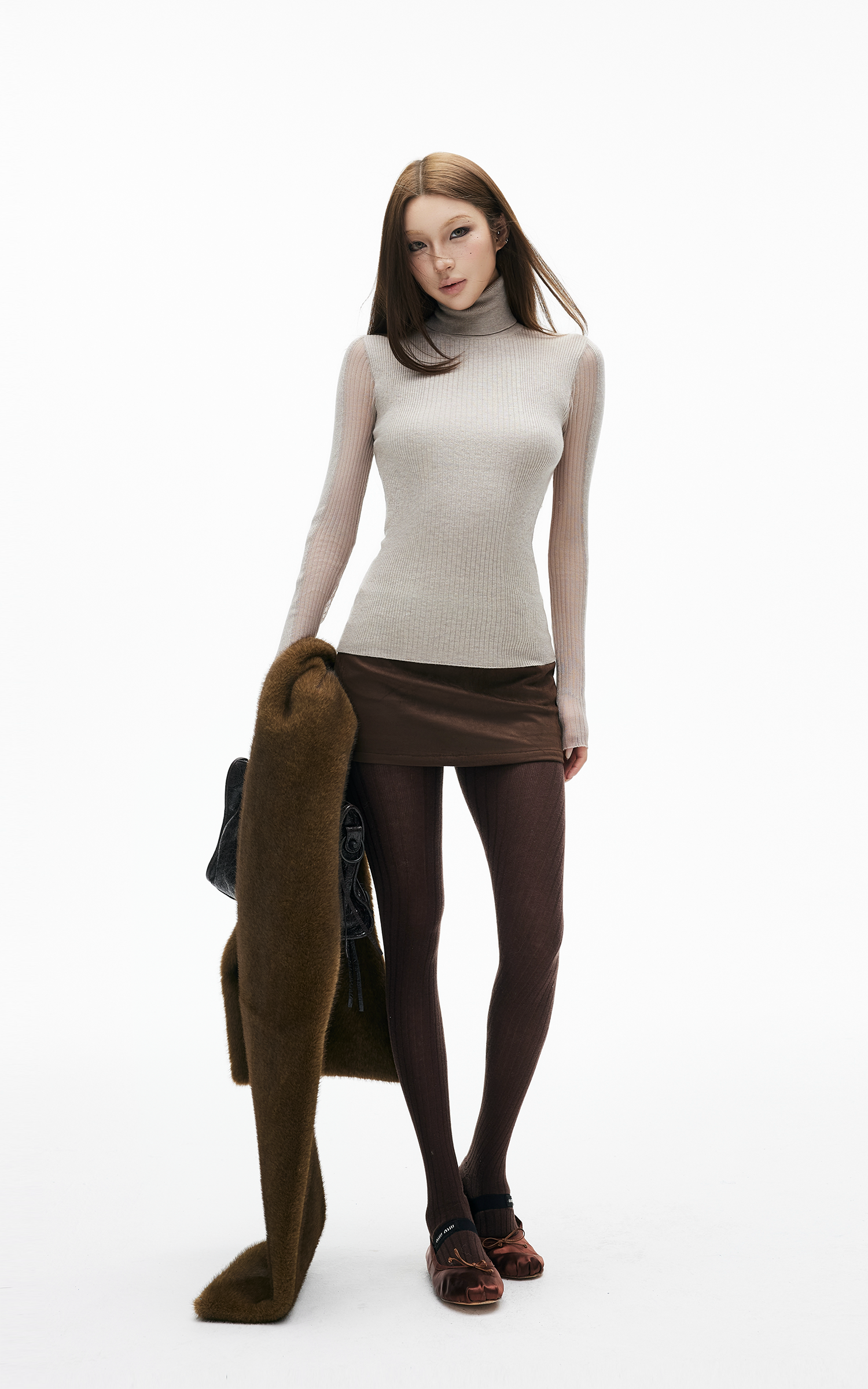 IAMXIAA リブパネルフィットミディスカート