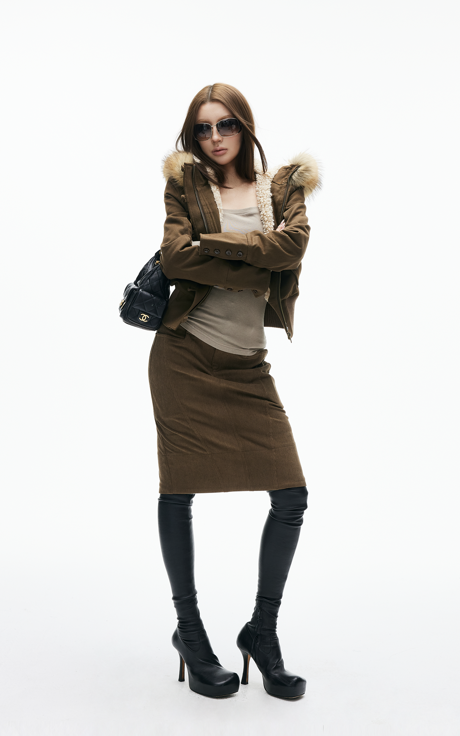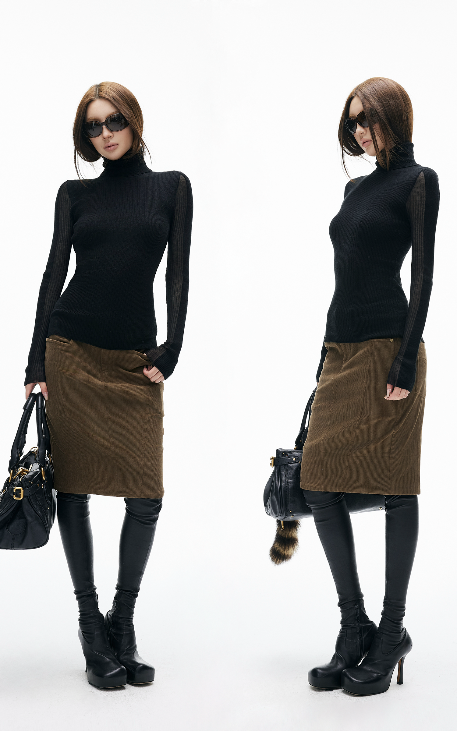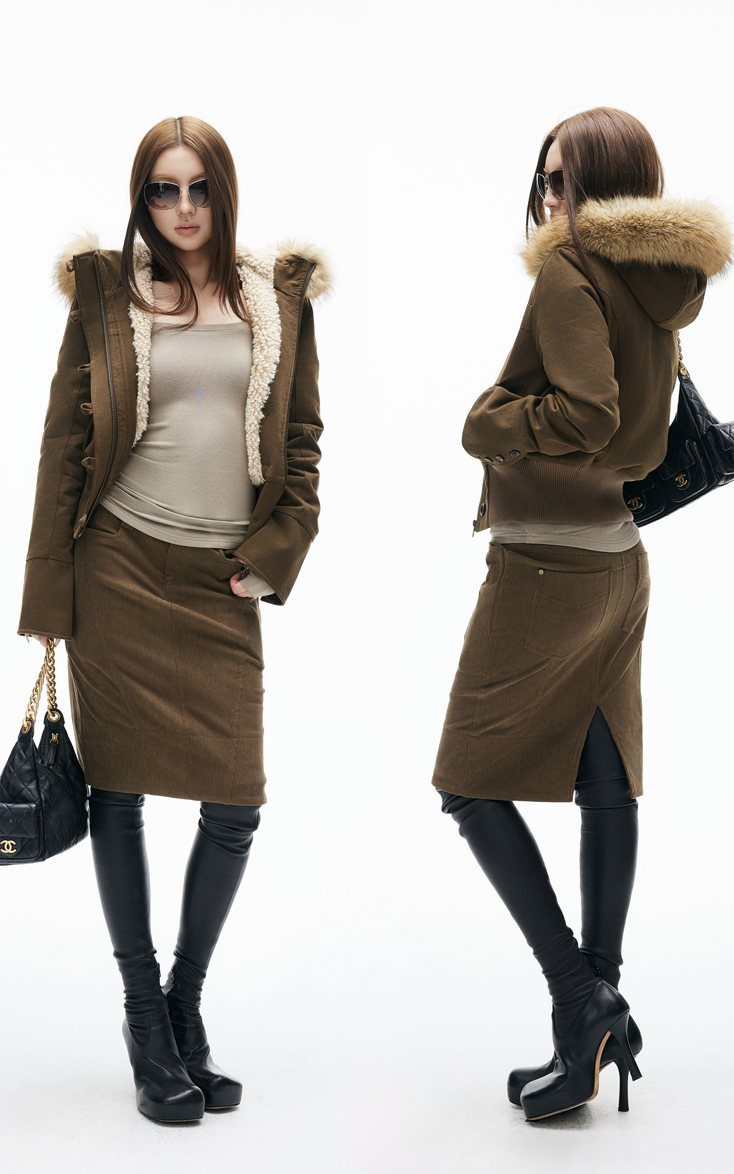 IAMXIAA ハイウエストコーデュロイボディコンミディスカート