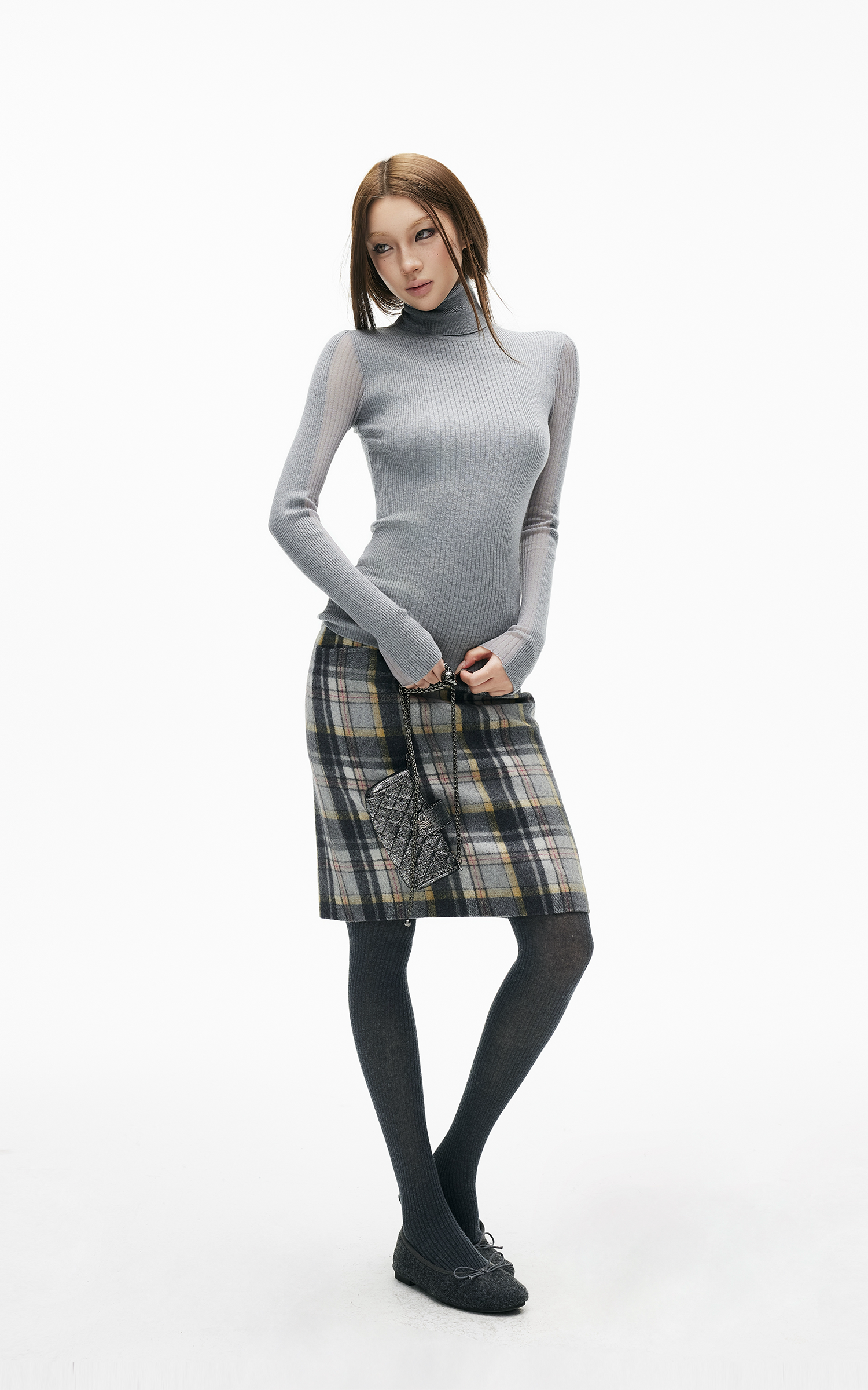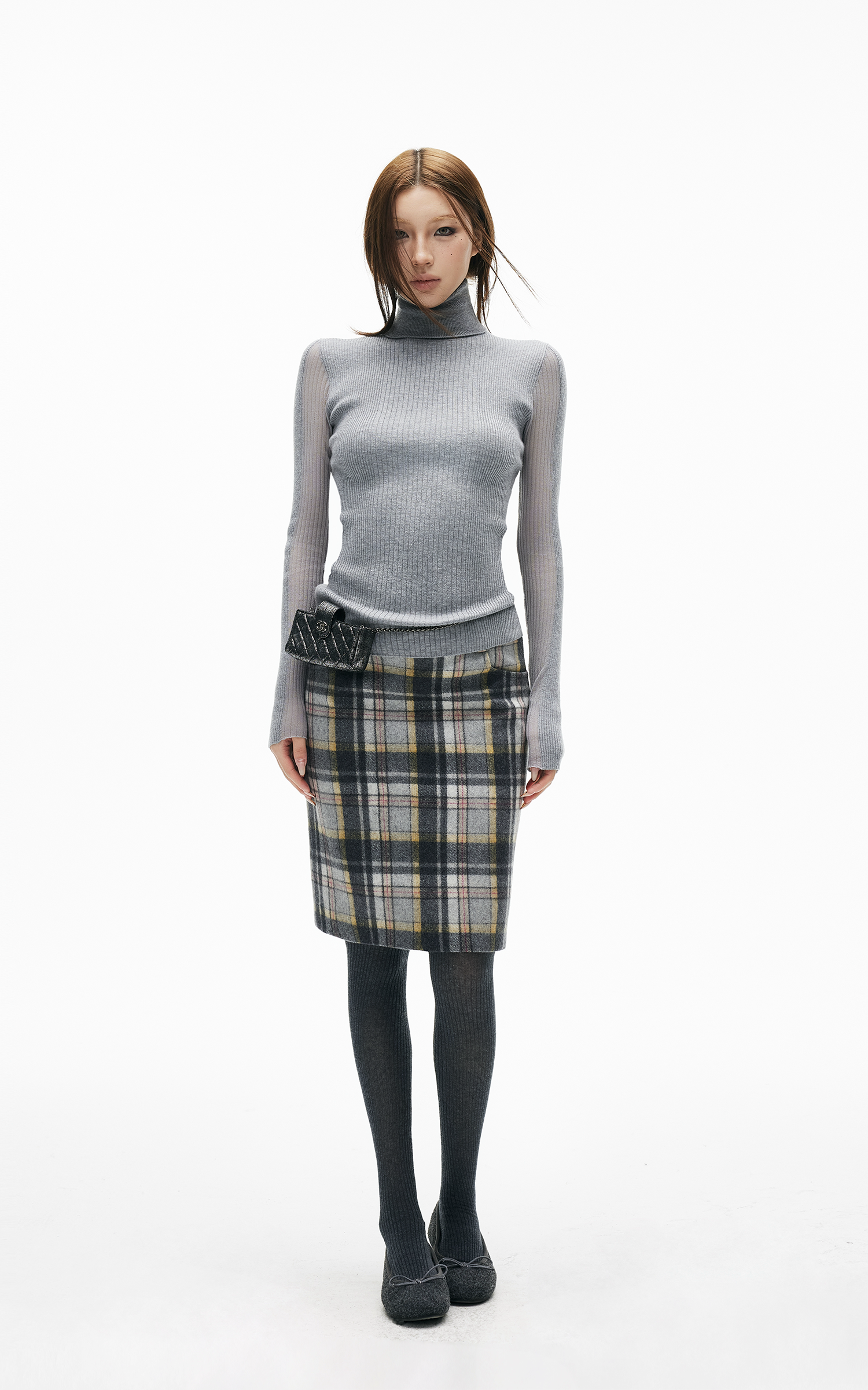 IAMXIAA チェック柄ハイウエストボディコンスカート