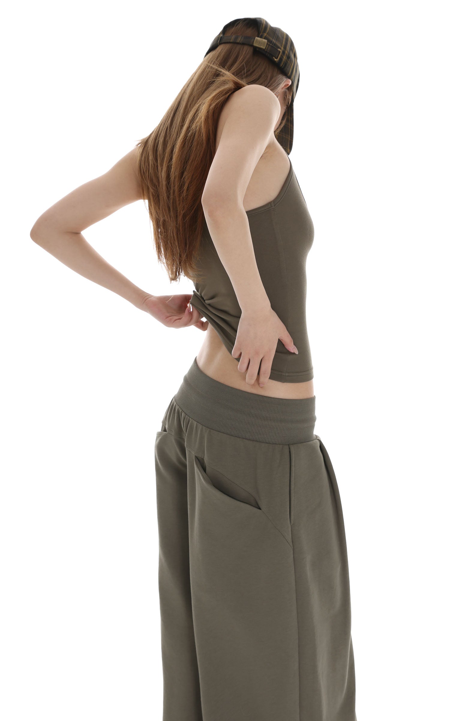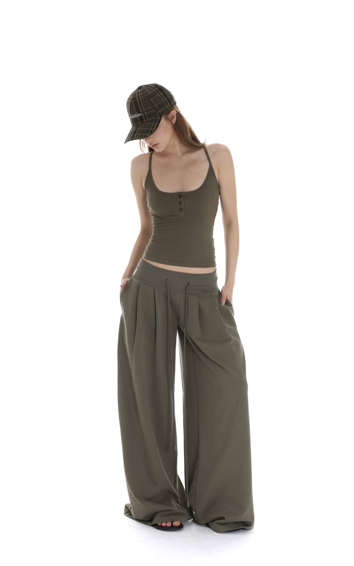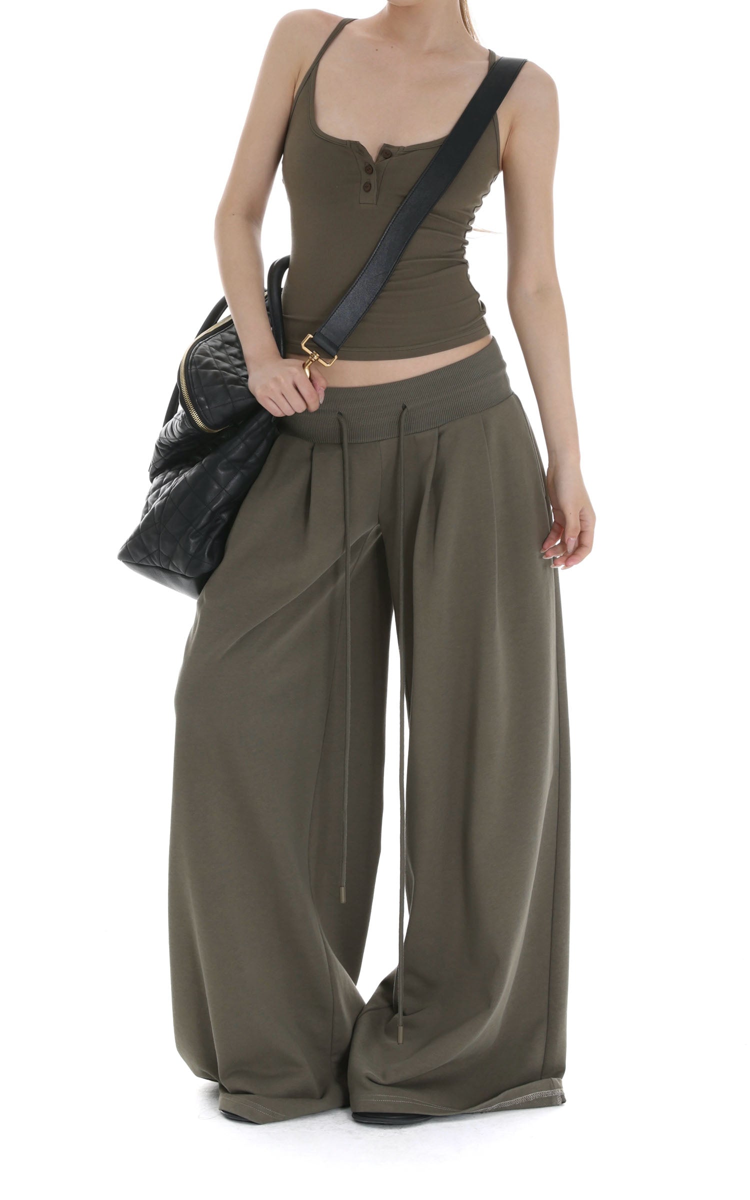 IAMXIAA リブボタンタンク&ワイドレッグドローストリングパンツ2点セット
