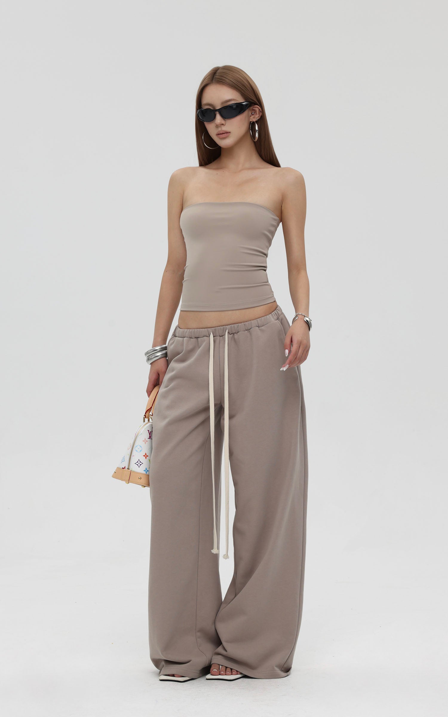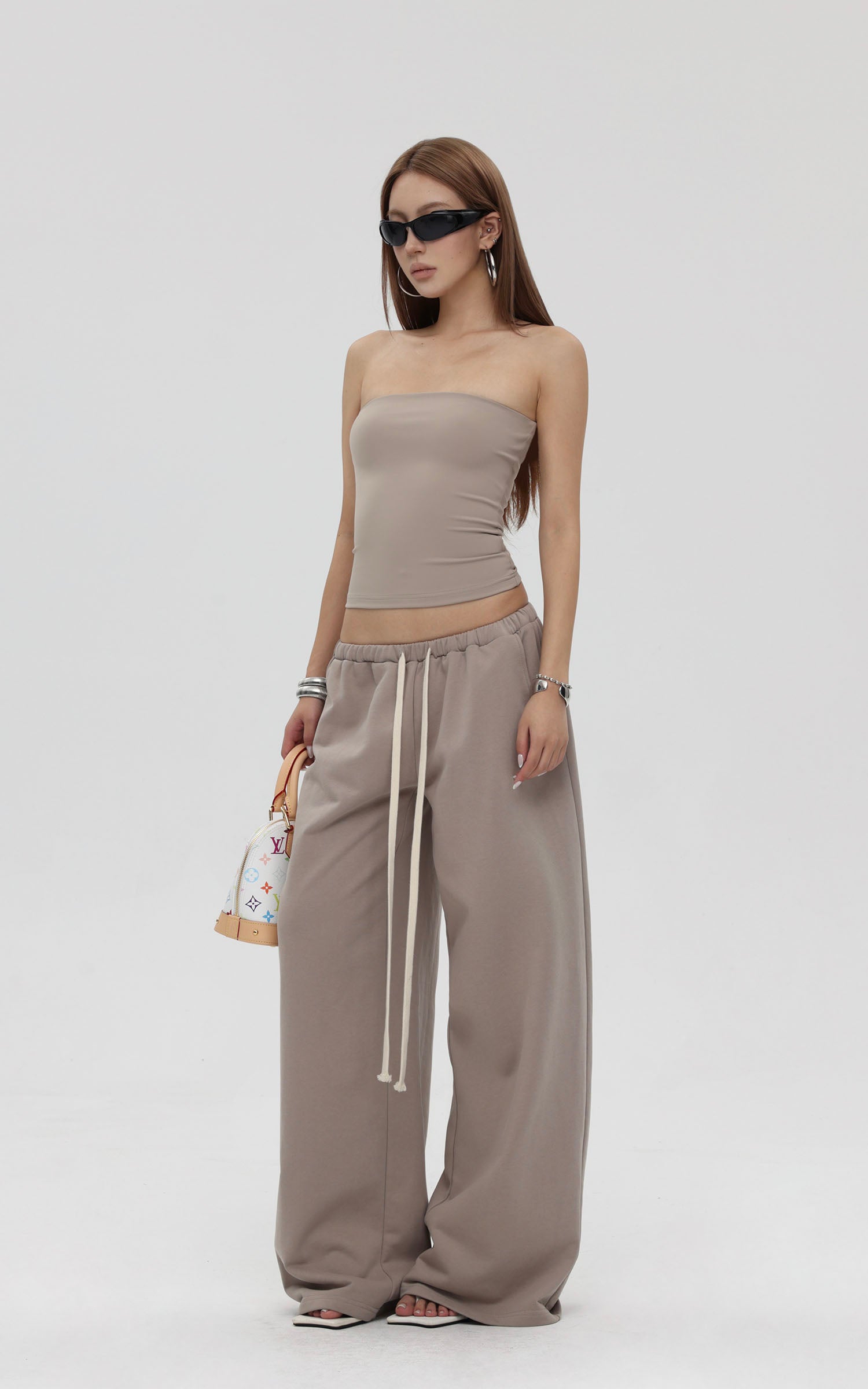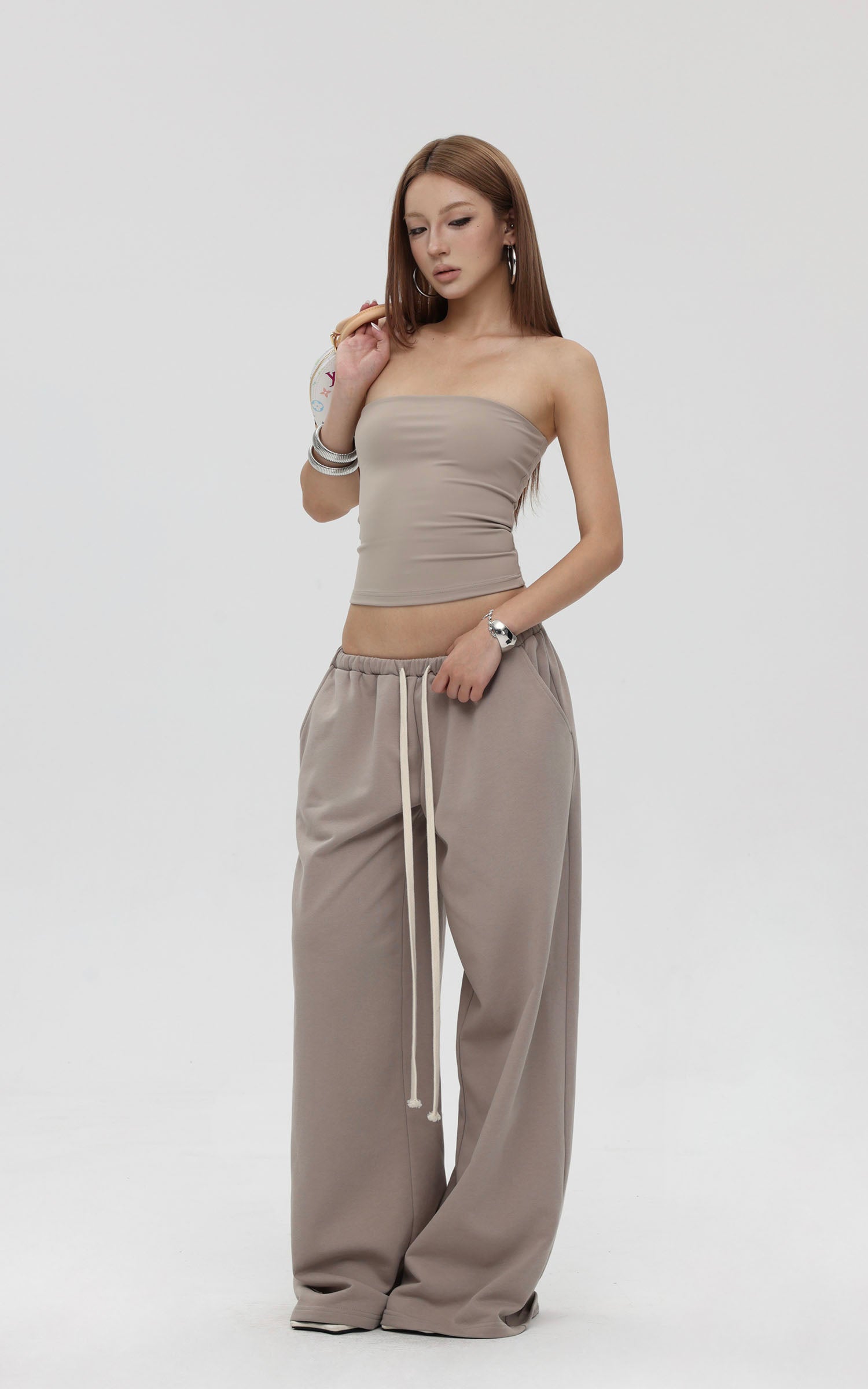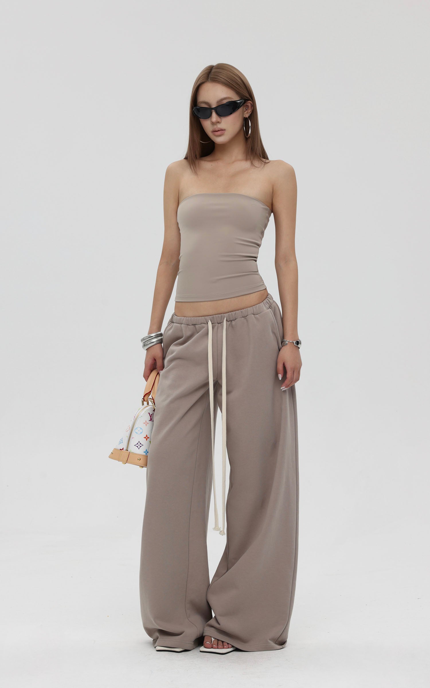 IAMXIAA ストラップレスチューブトップ&ワイドレッグスウェットパンツセット カジュアルストリートウェア 2点セット