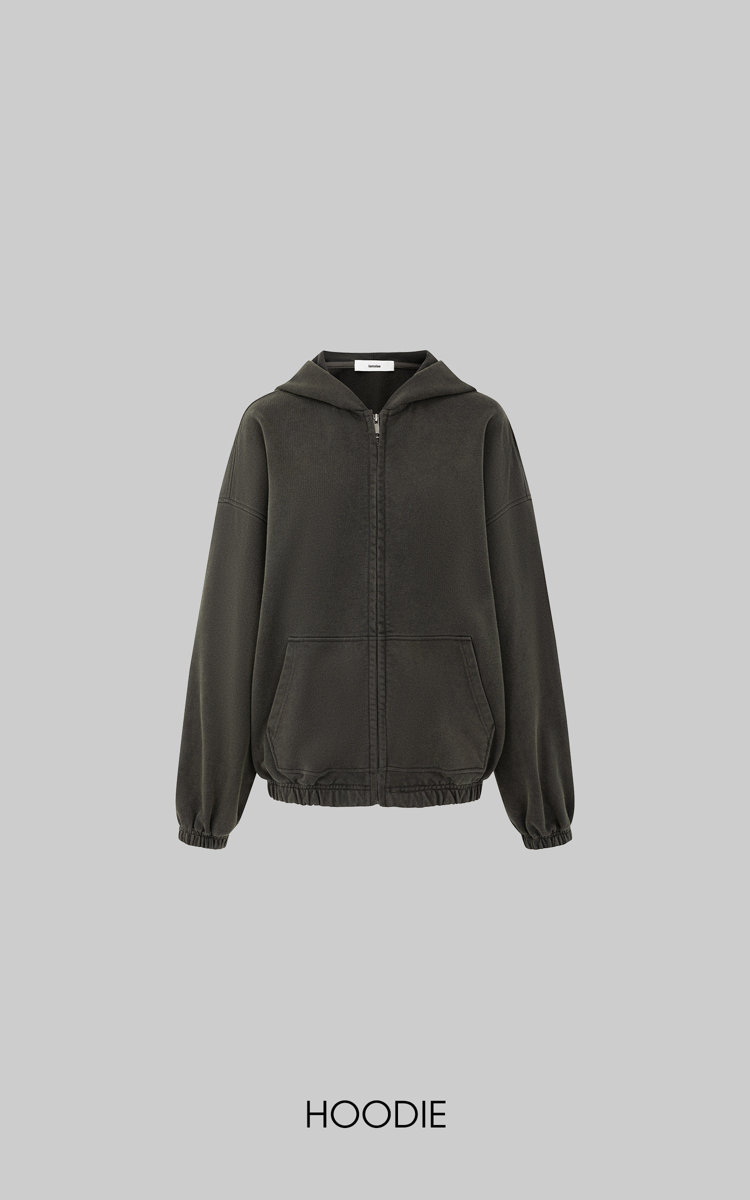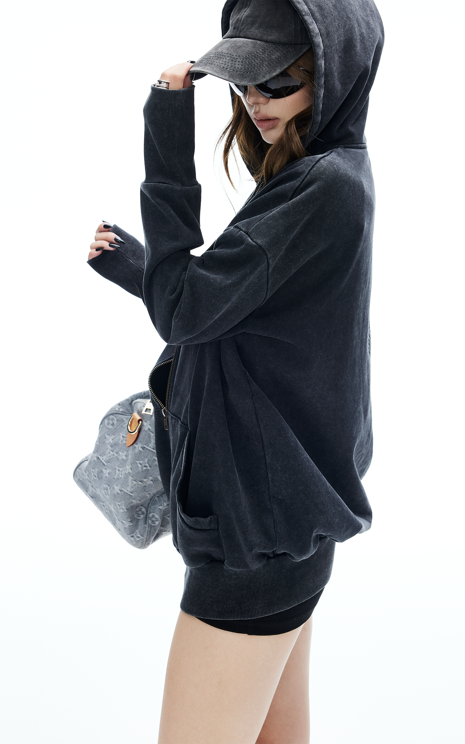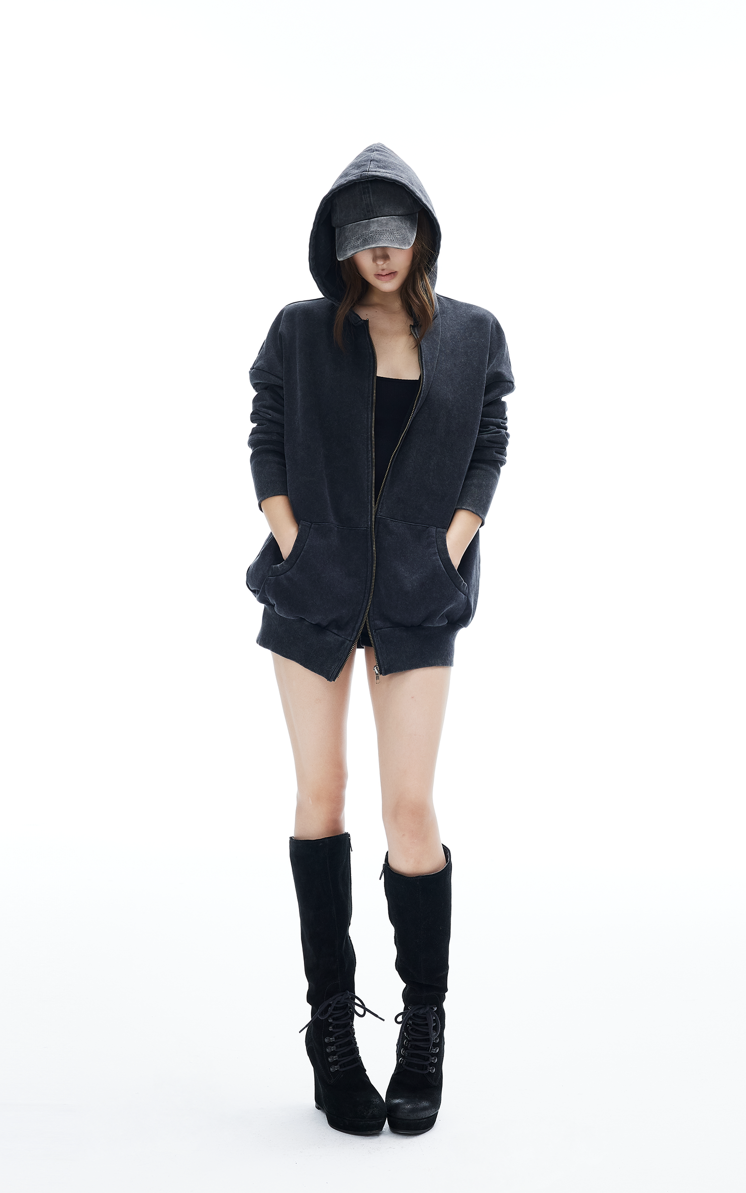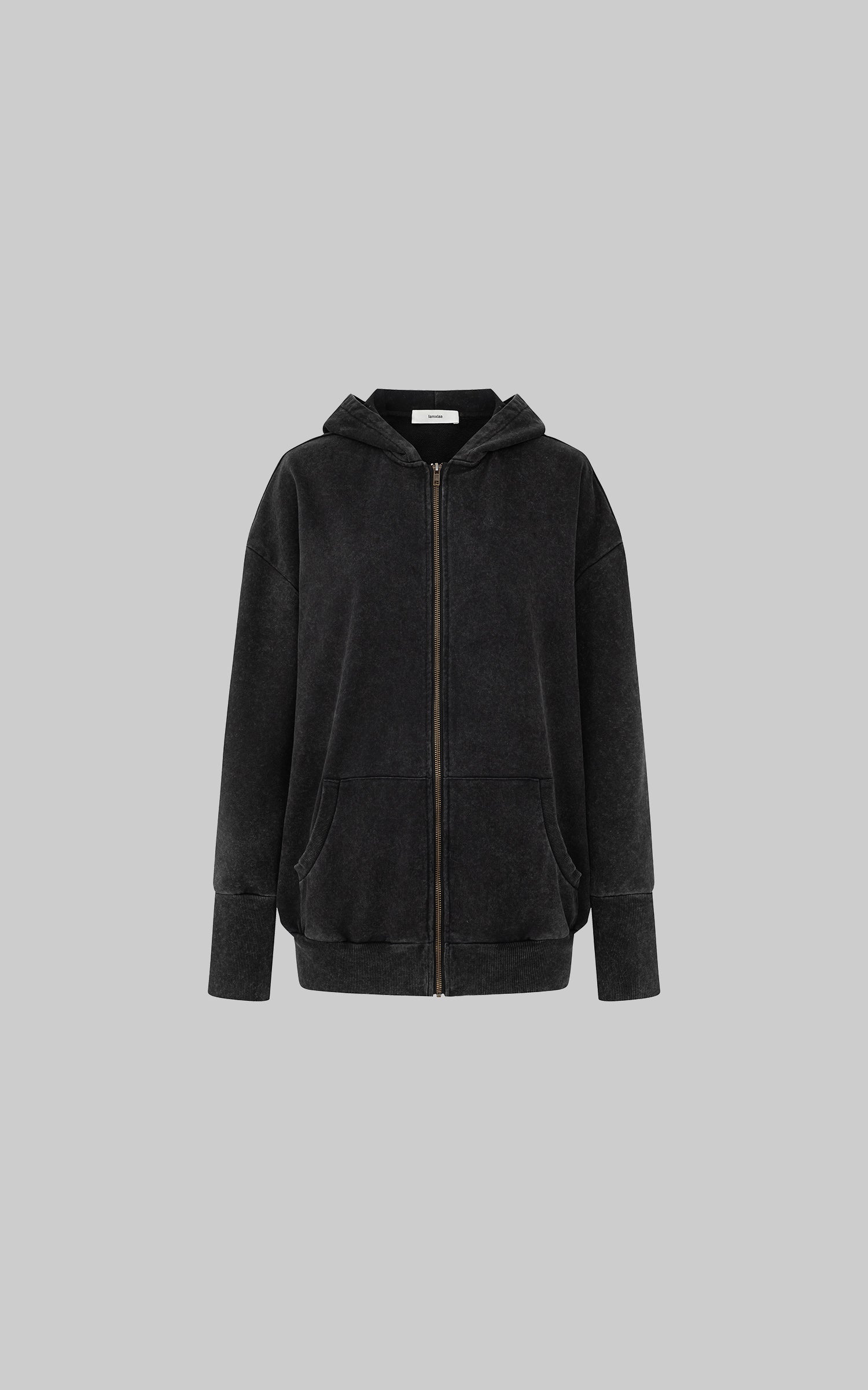 IAMXIAA オーバーサイズフィットのウォッシュドジップアップフーディジャケット