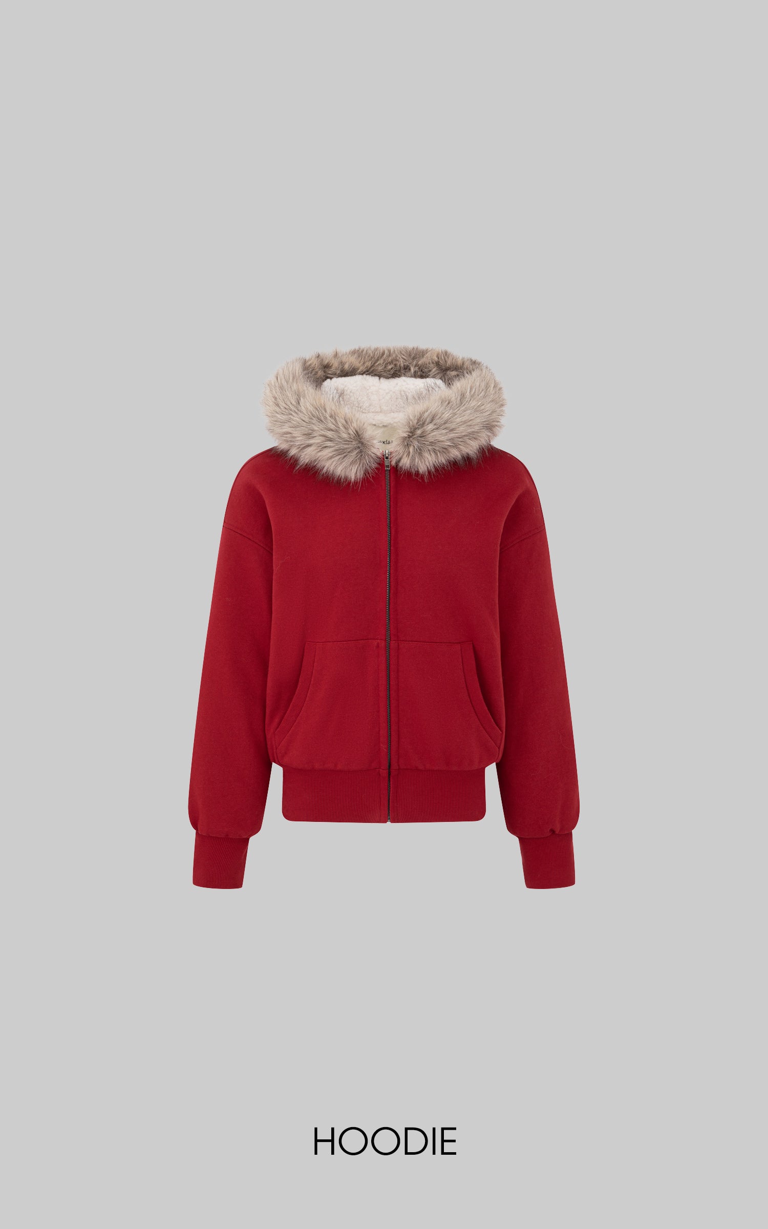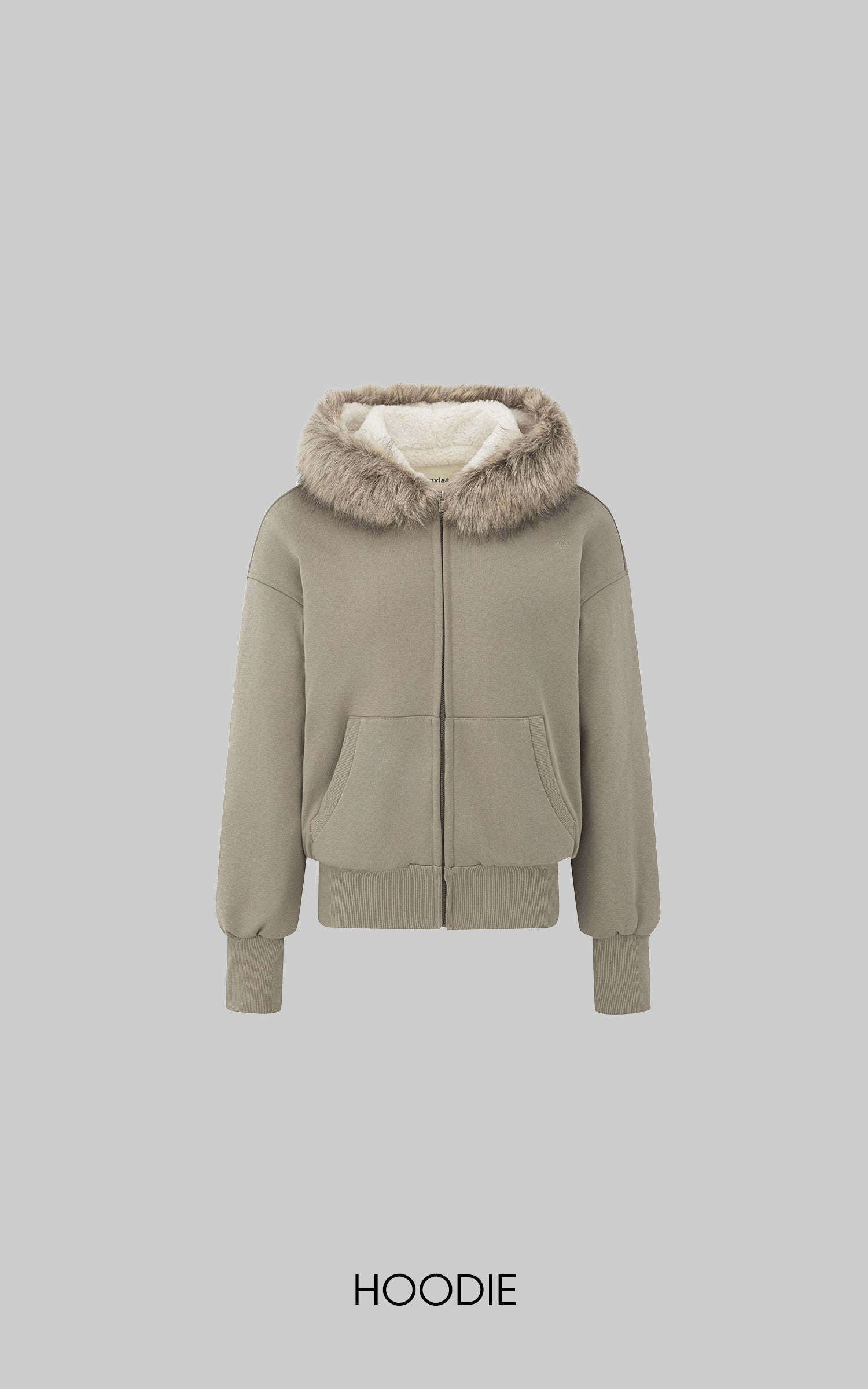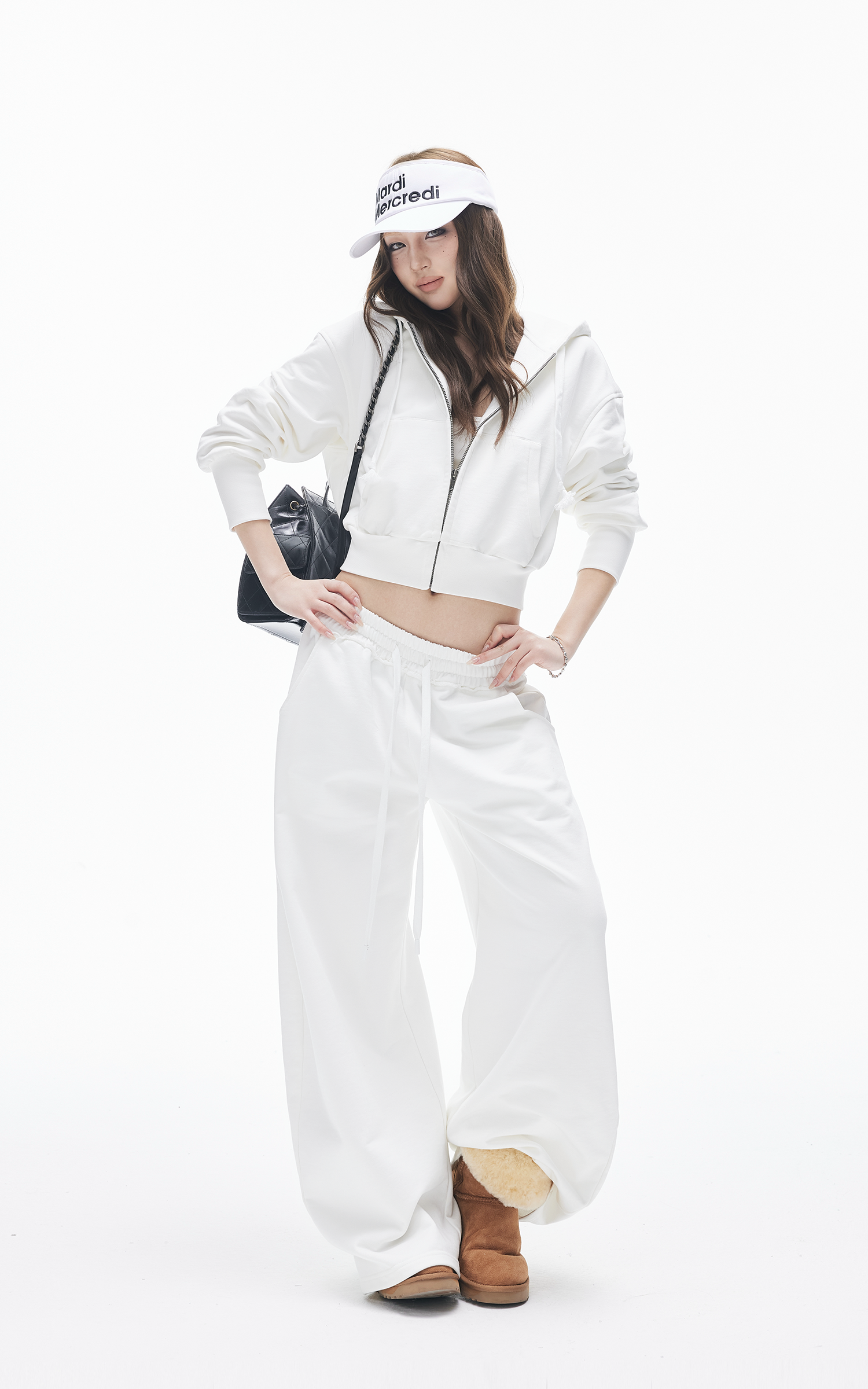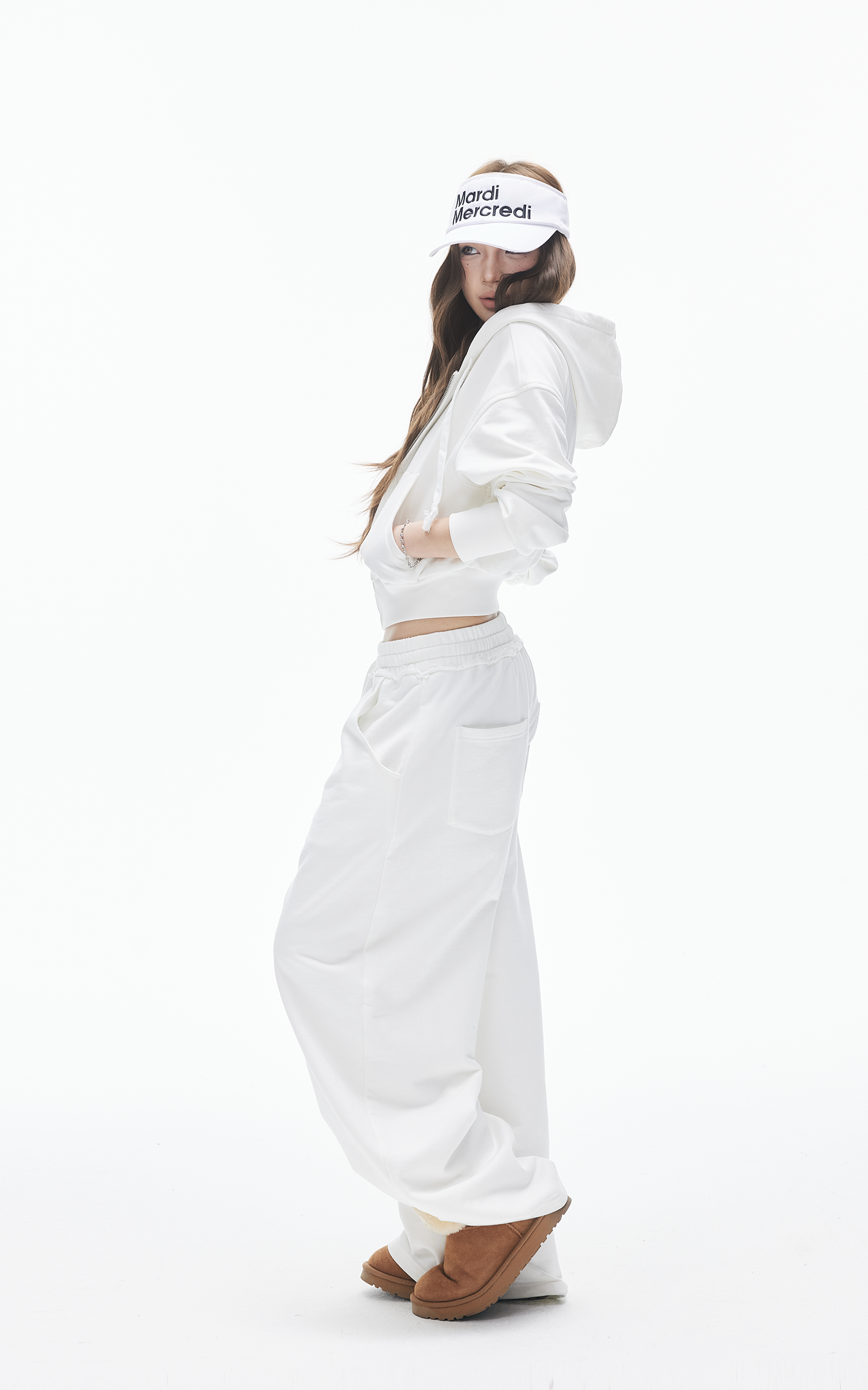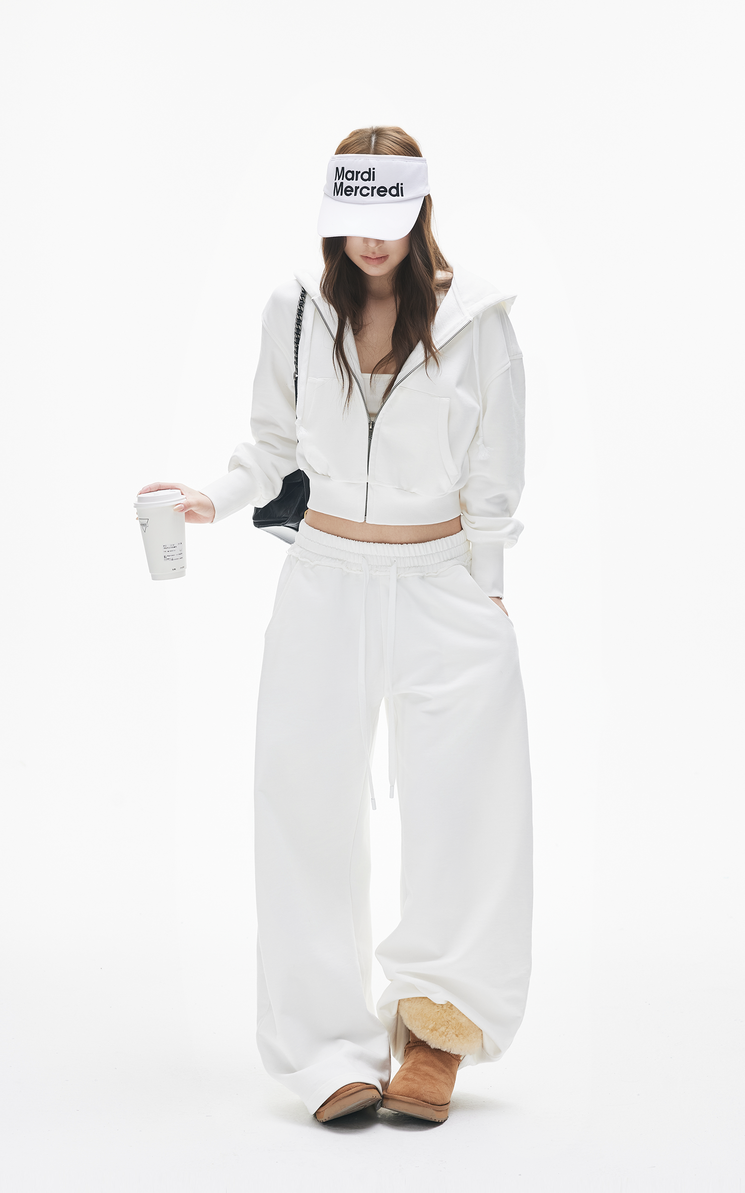 IAMXIAA フェイクファー トリム フーディ ジップ ジャケット & ワイドレッグ スウェットパンツ セット