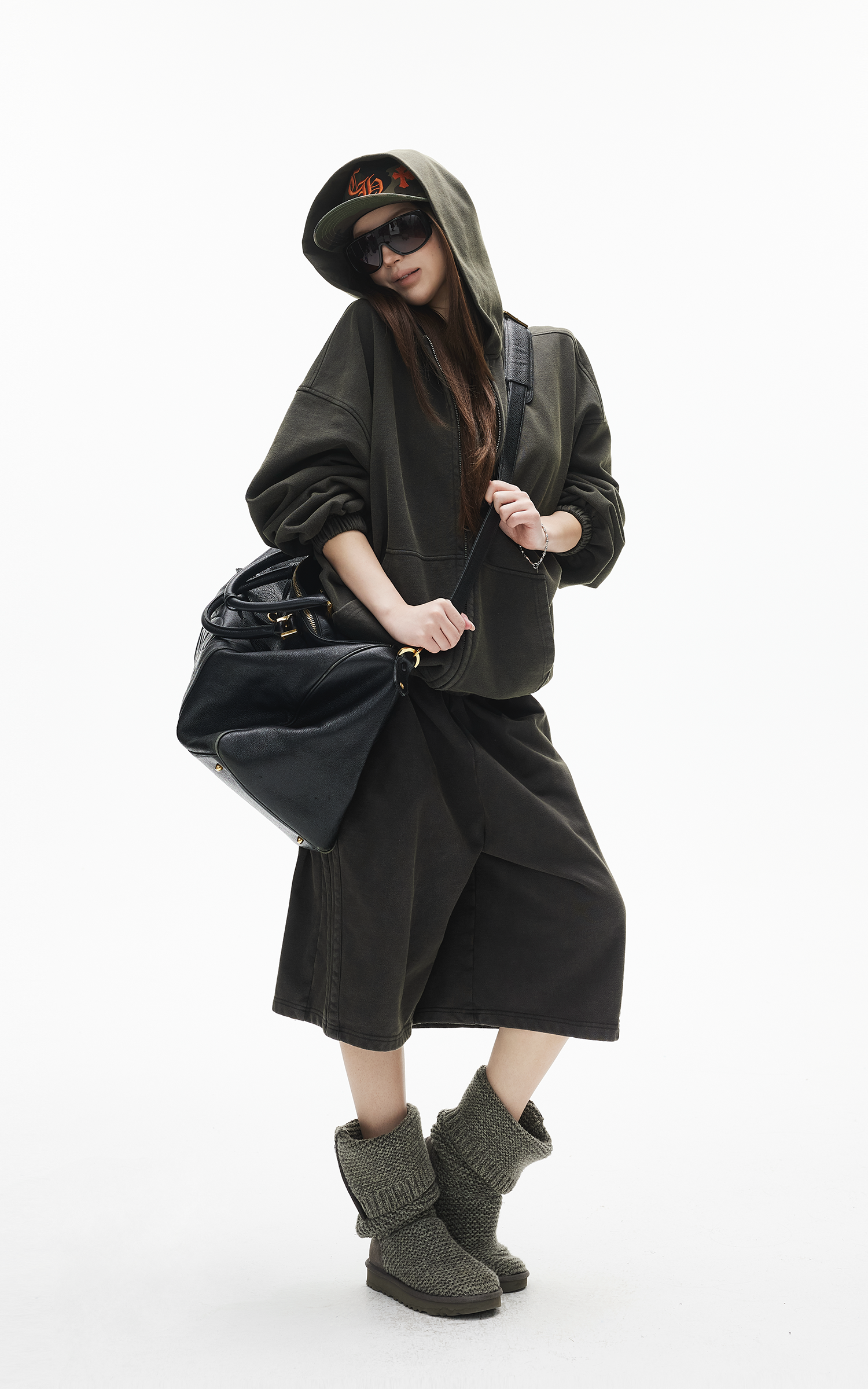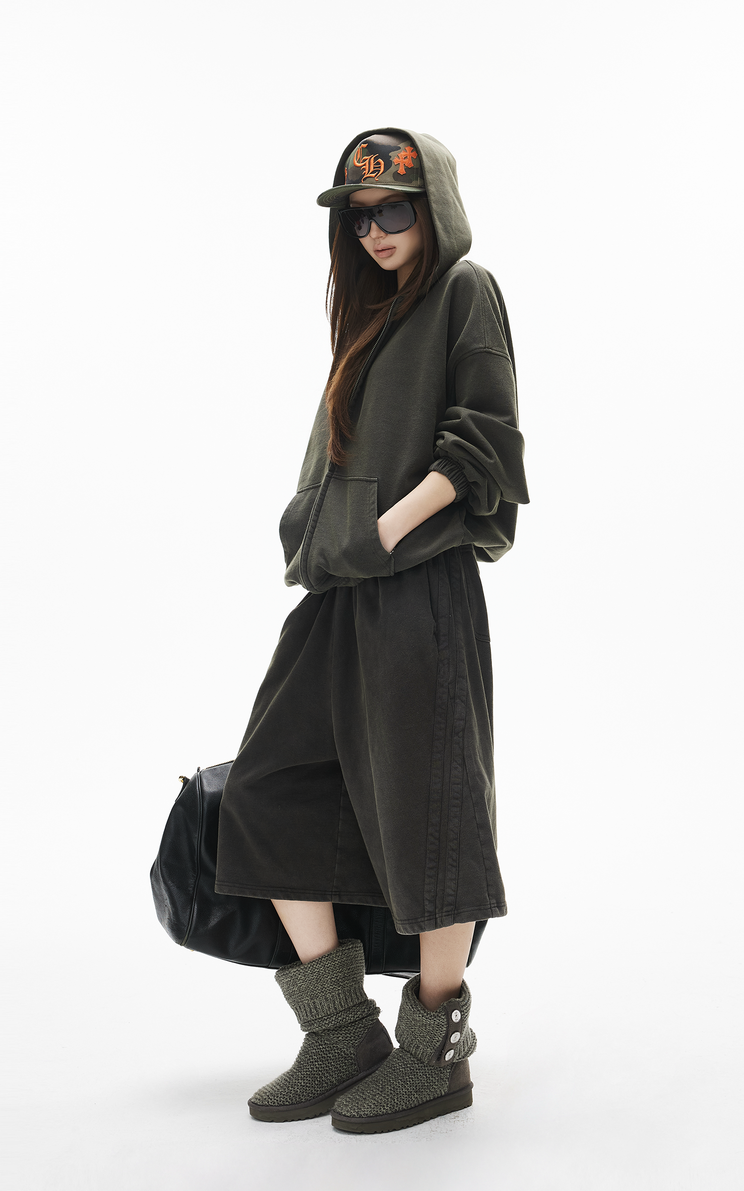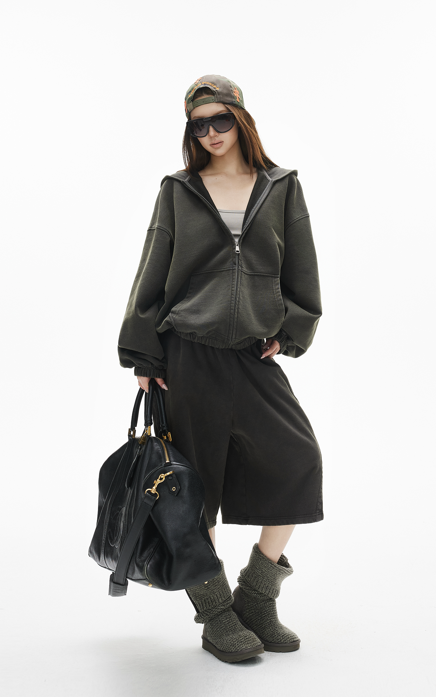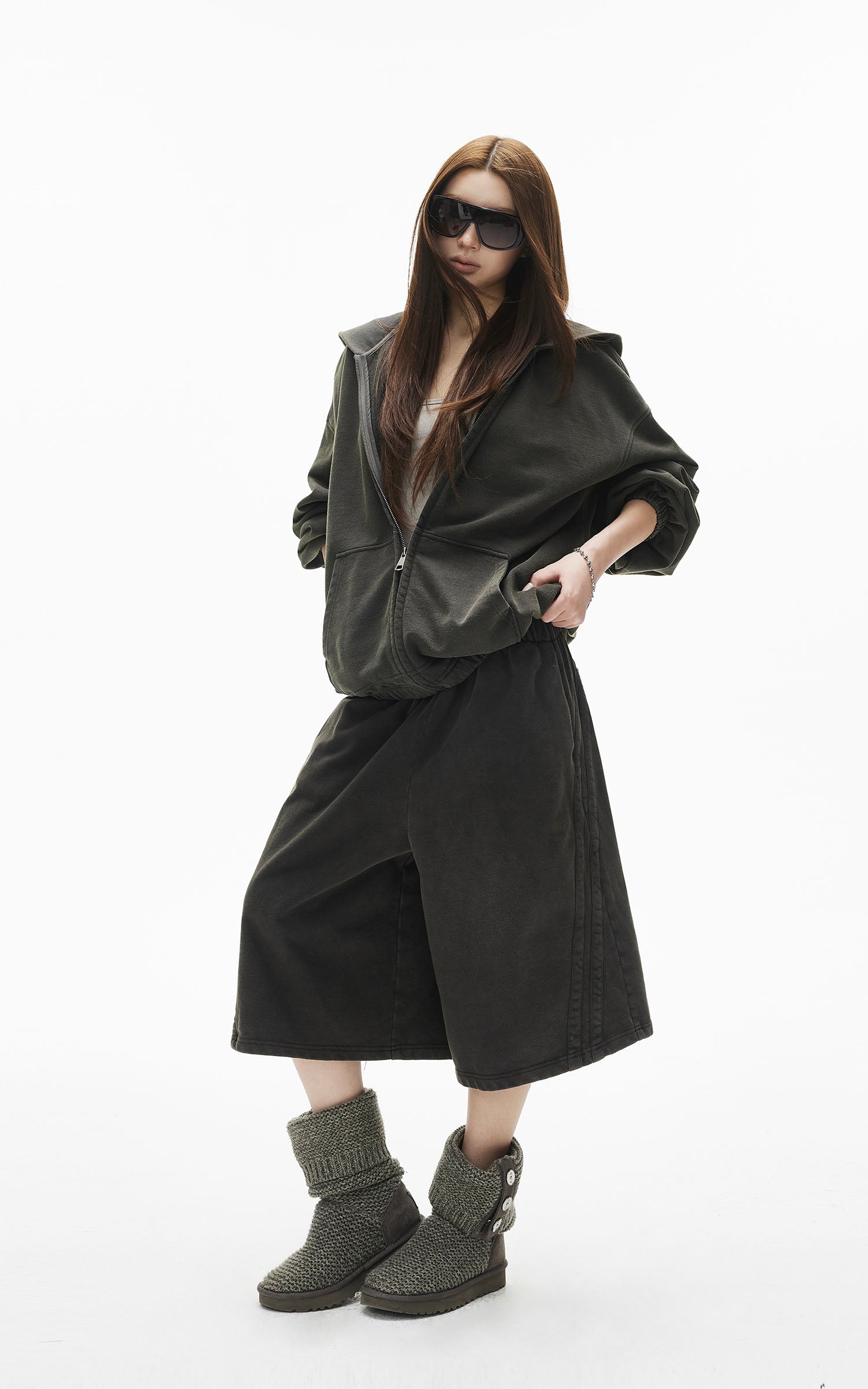 IAMXIAA ヴィンテージウォッシュジップアップフーディー&クロップドスウェットパンツセット