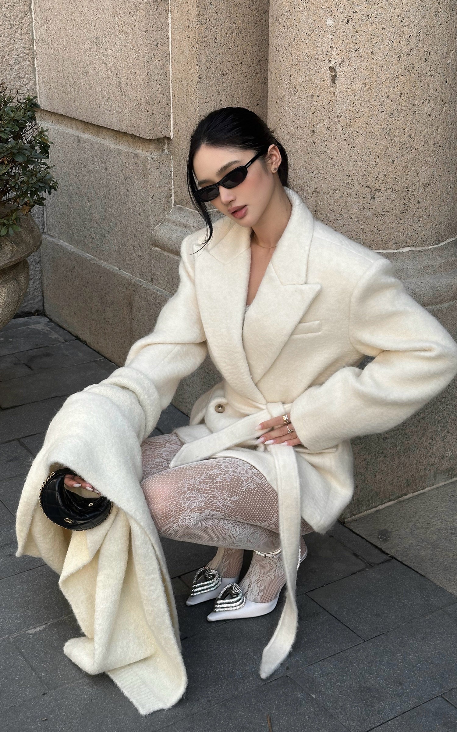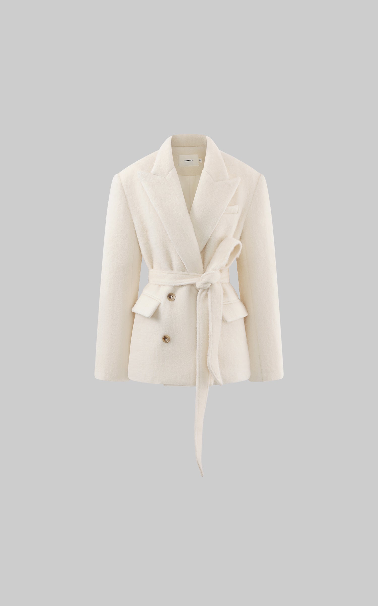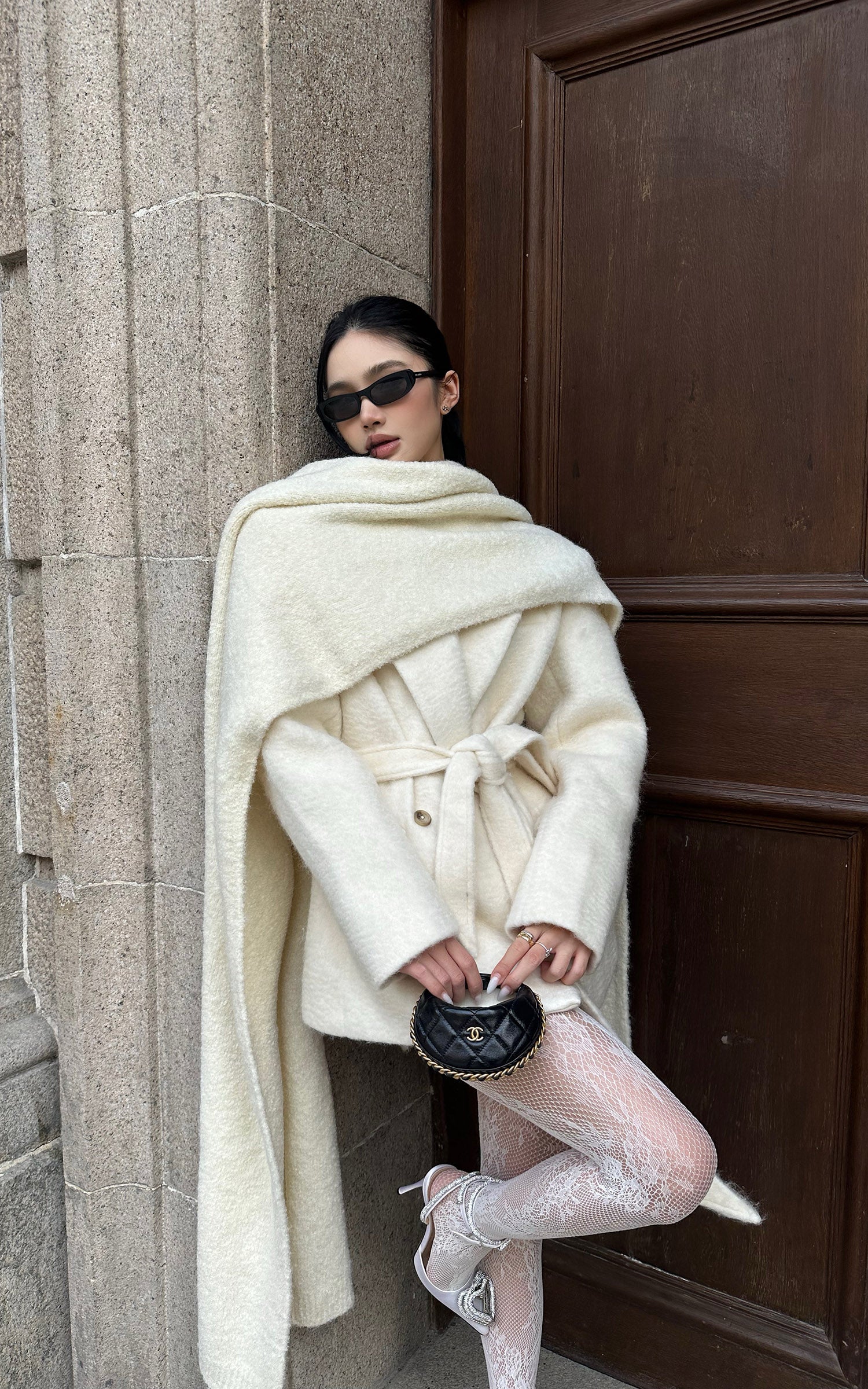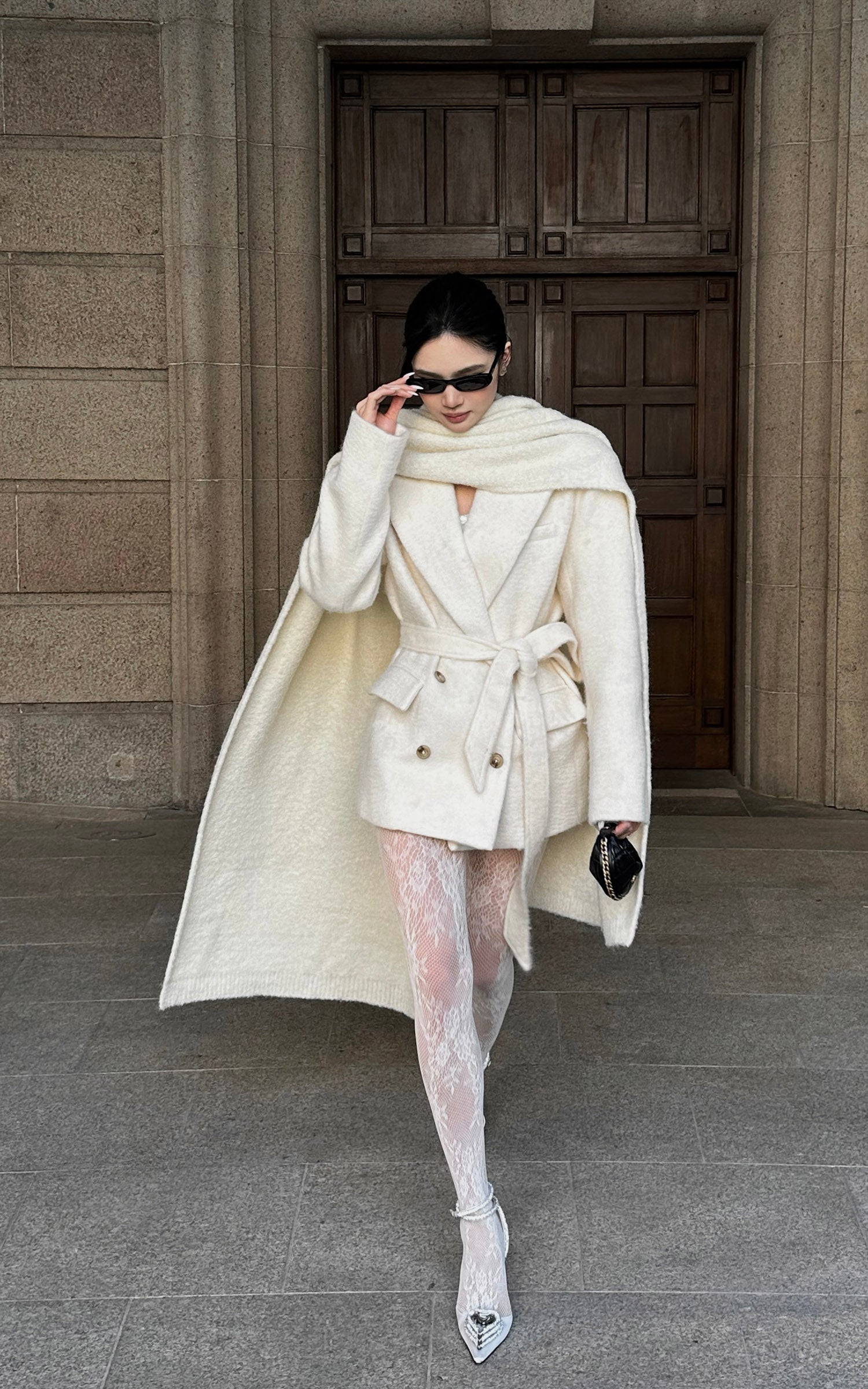 ROVENTE オーバーサイズのショール付きベルトウールコートセット