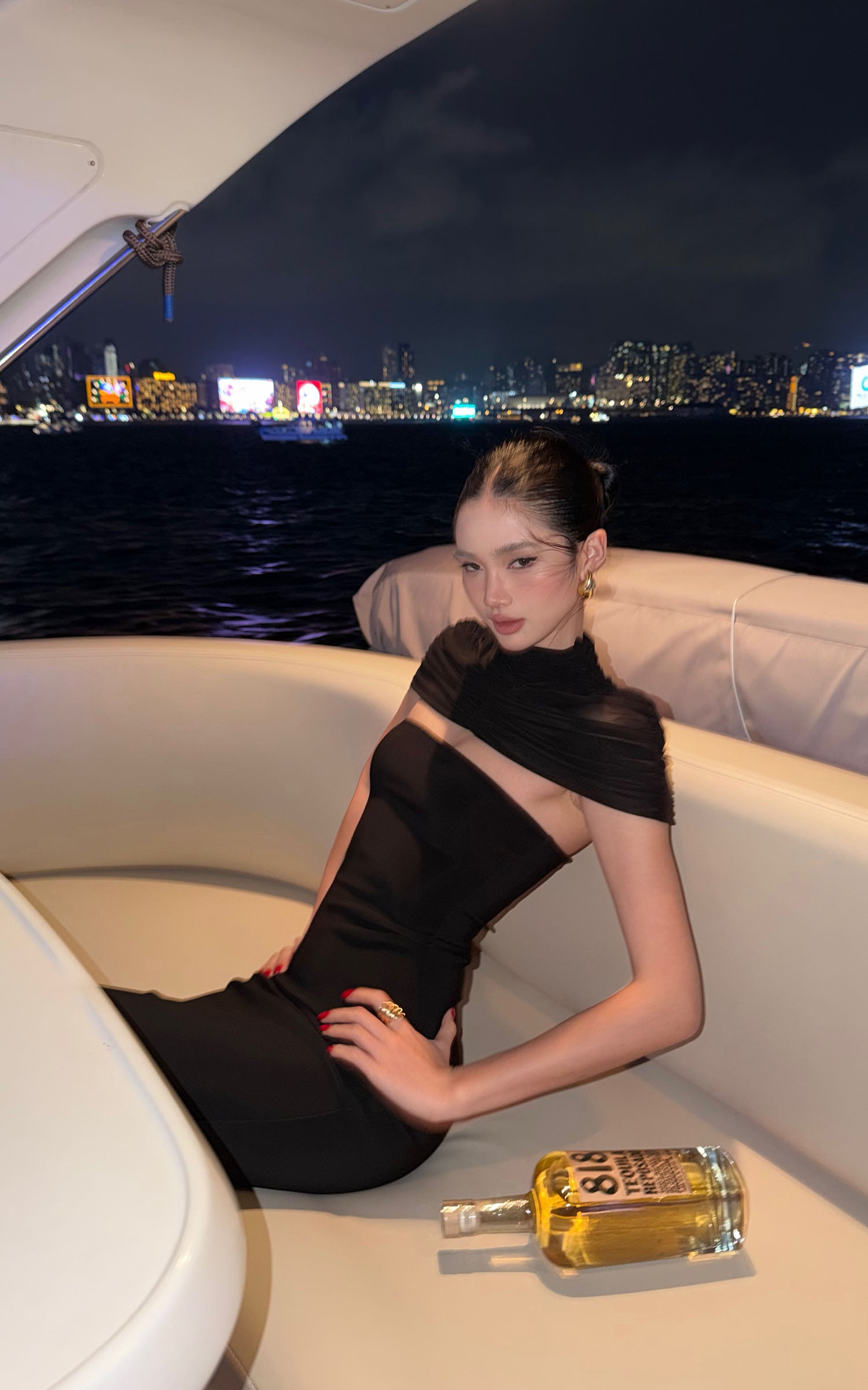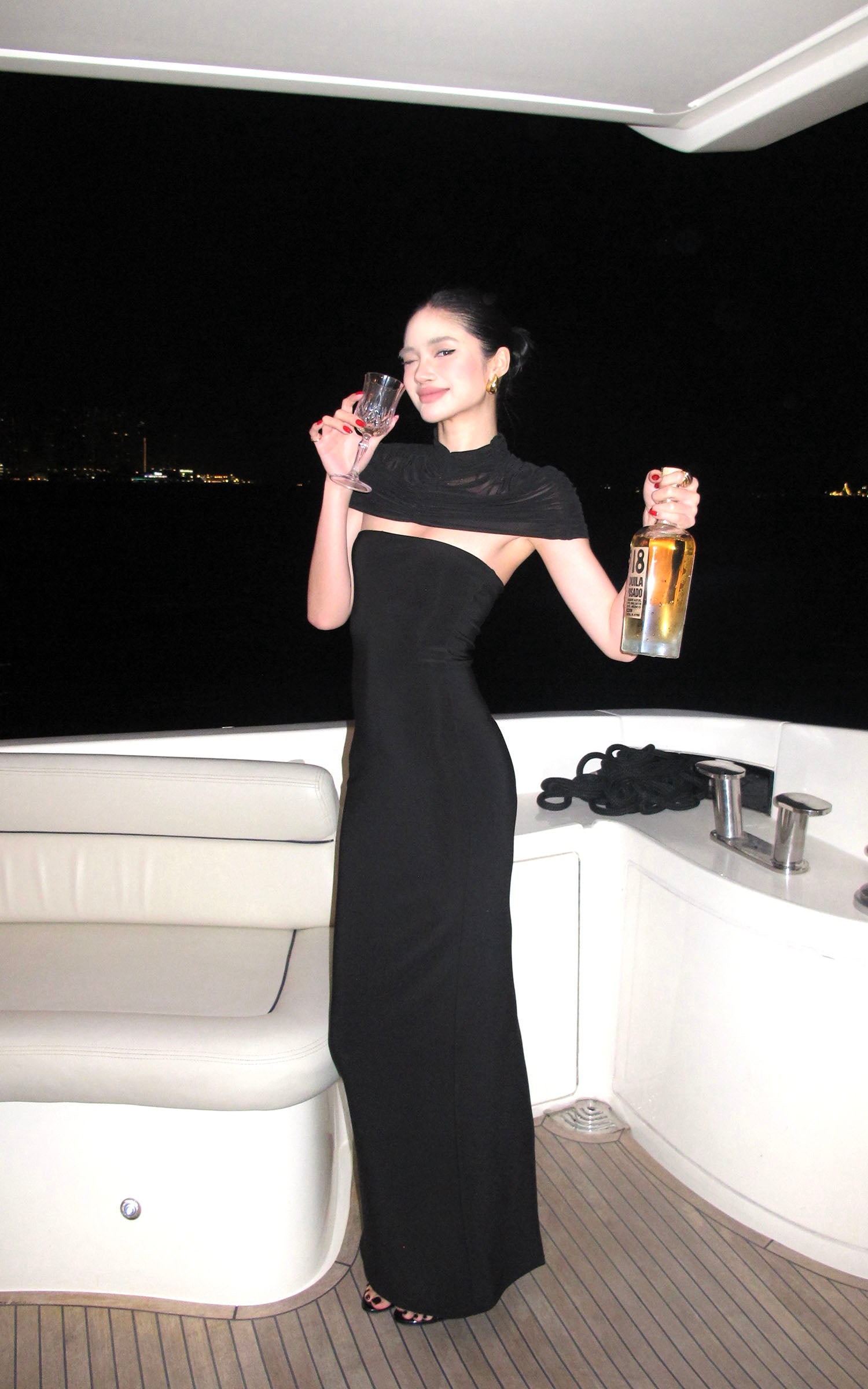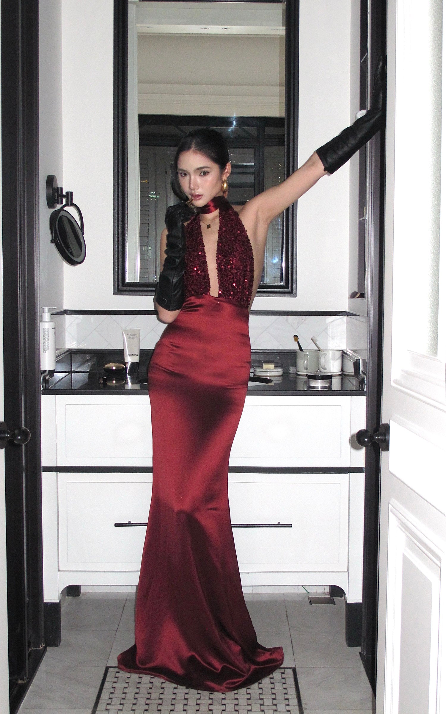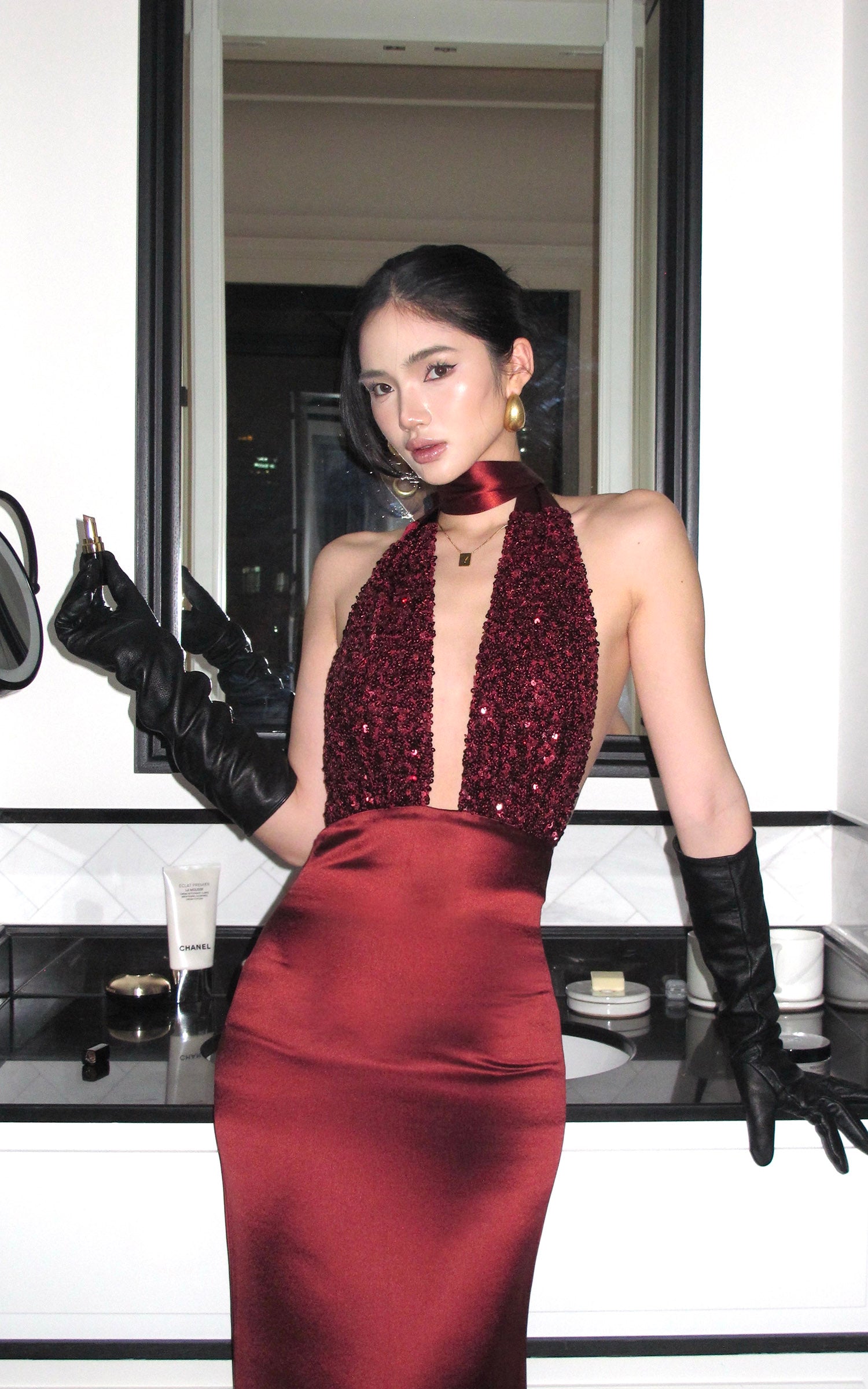 ROVENTE スパンコール付きホルターマキシドレス