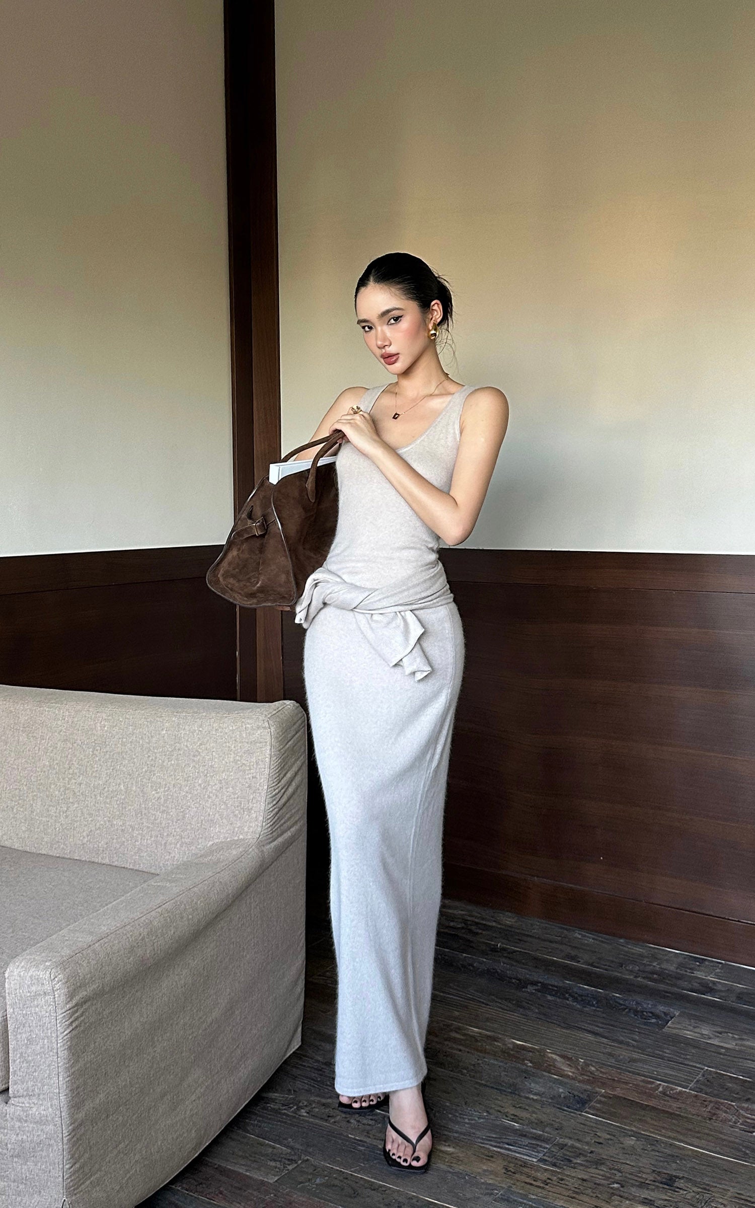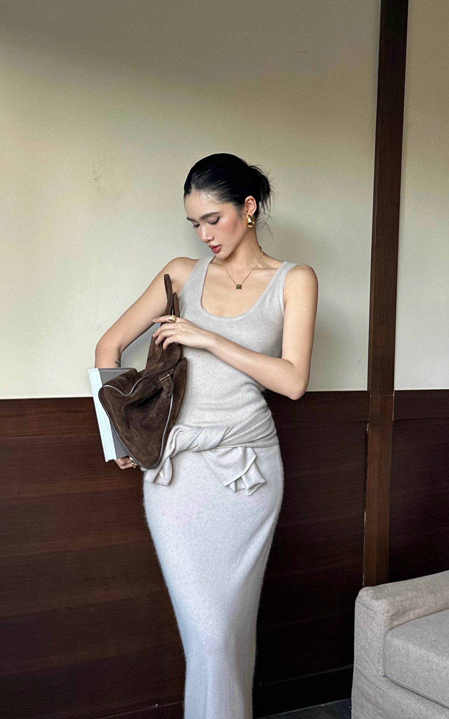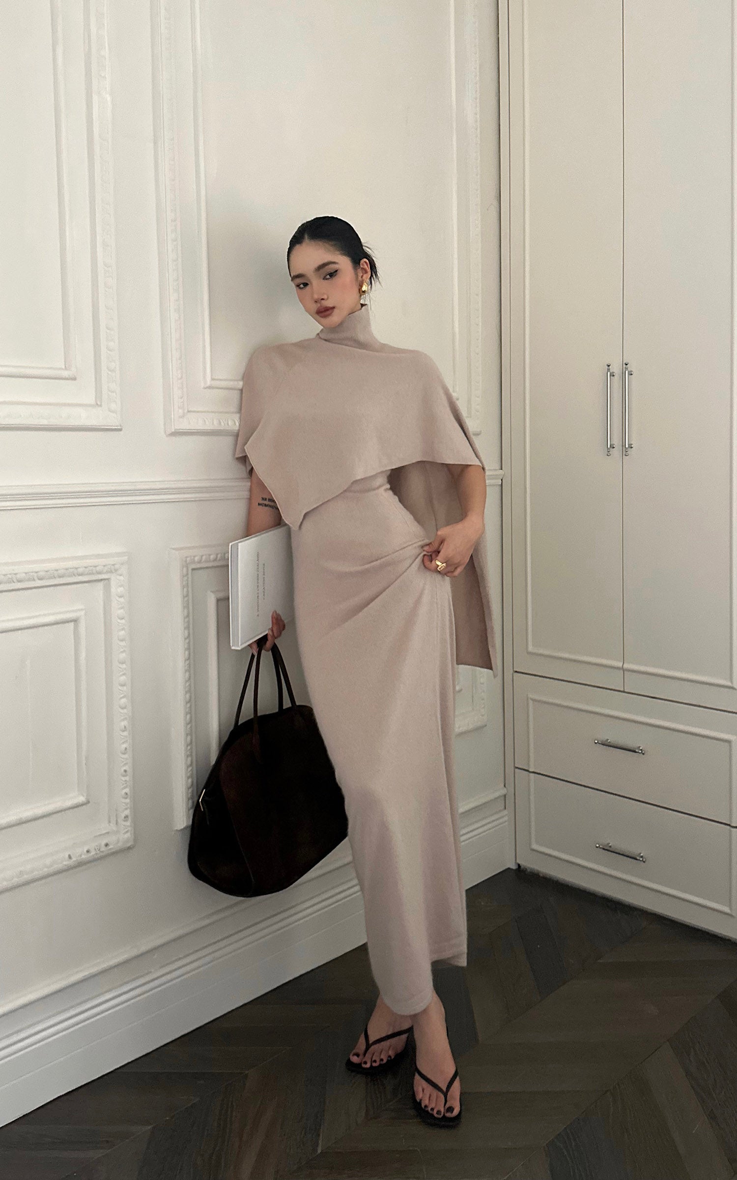 ROVENTE ドレープショール付きニットマキシドレス2点セット