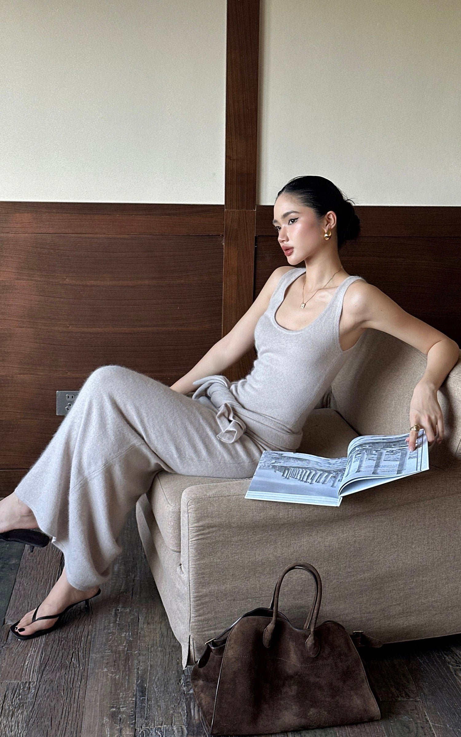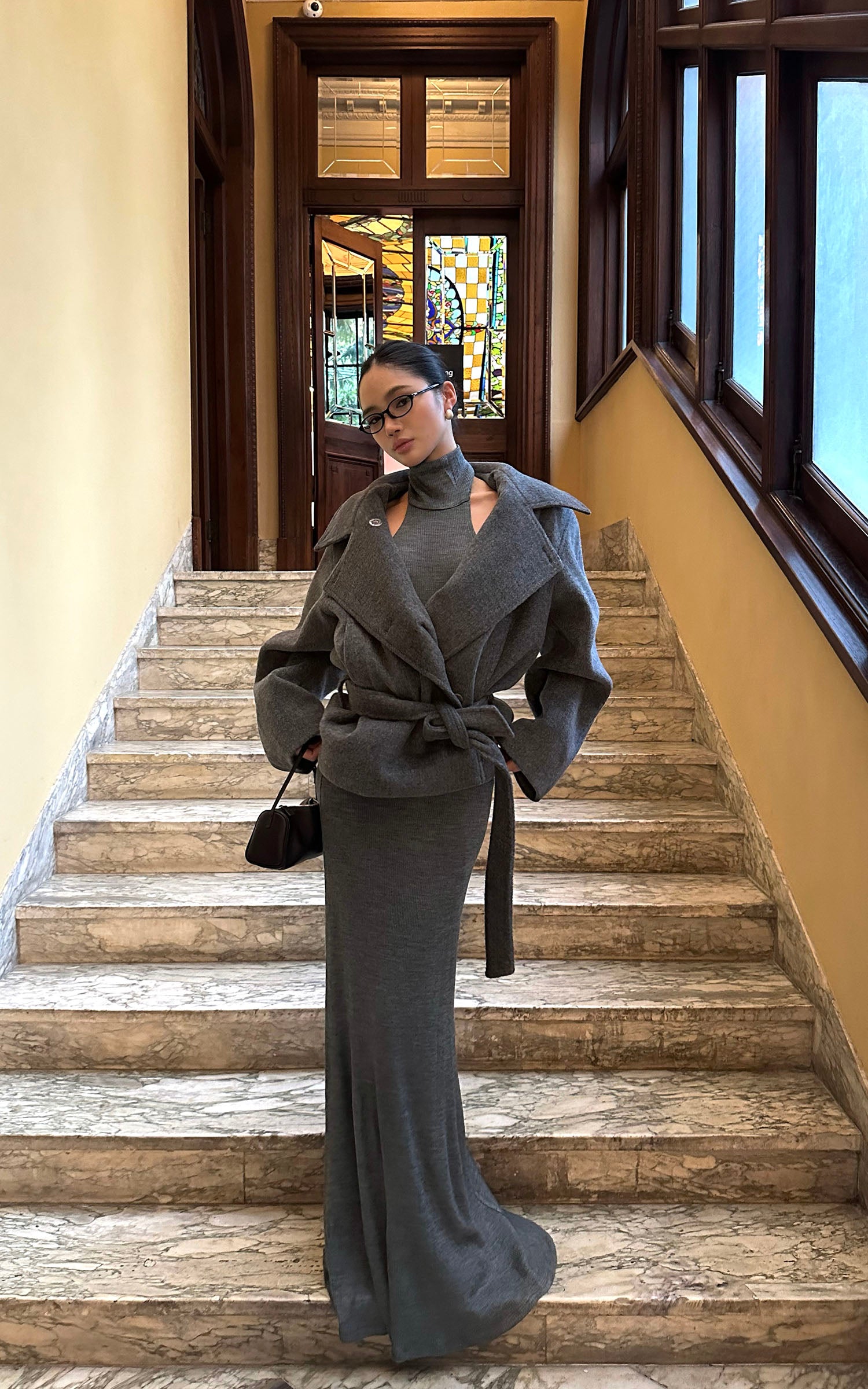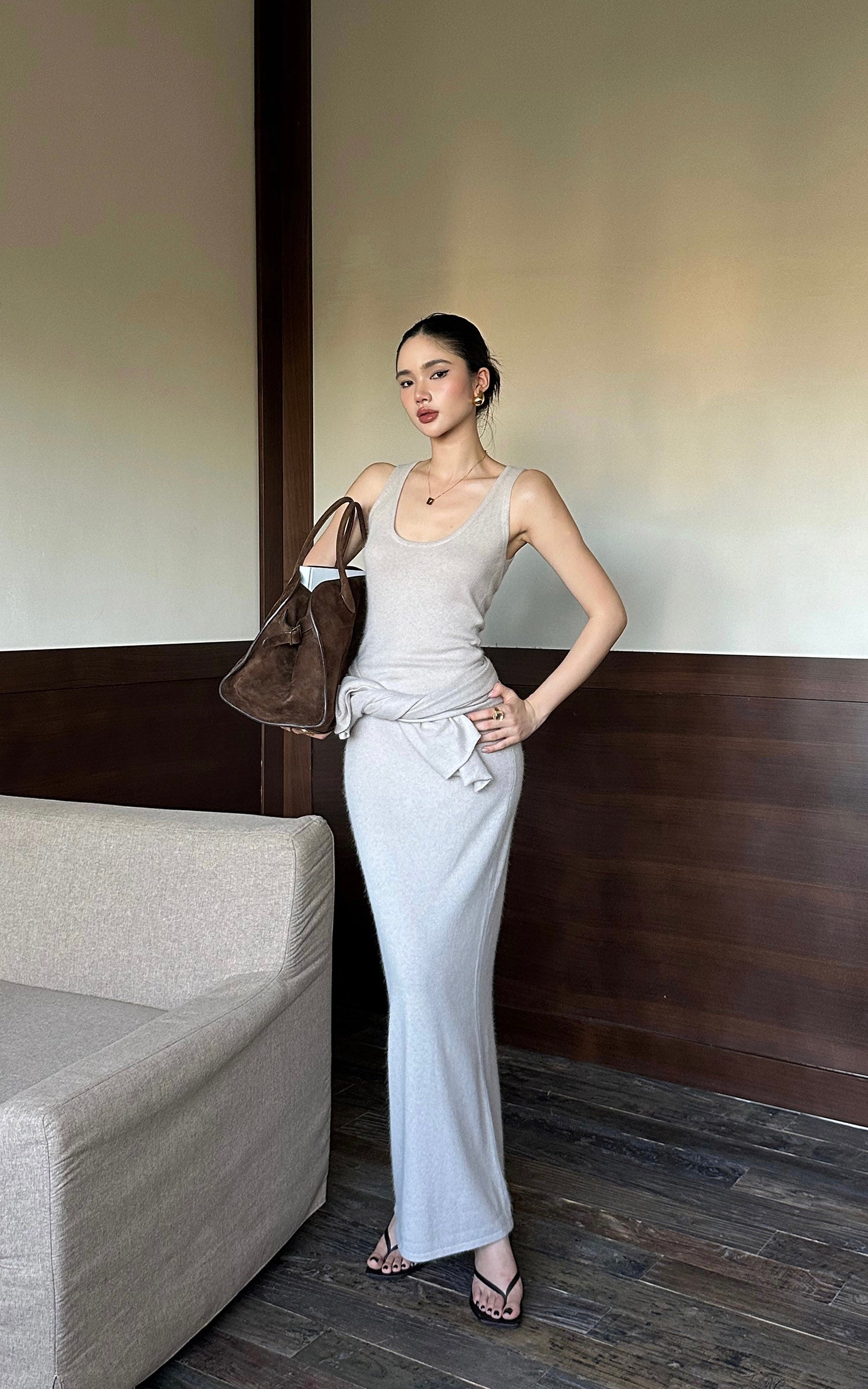 ROVENTE ドレープショール付きニットマキシドレス2点セット