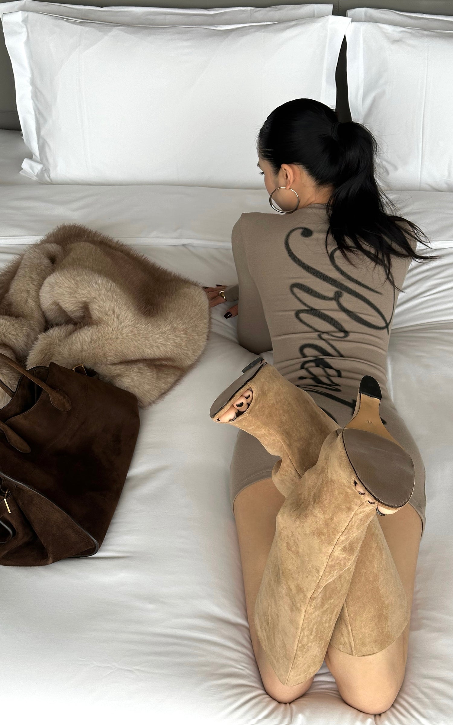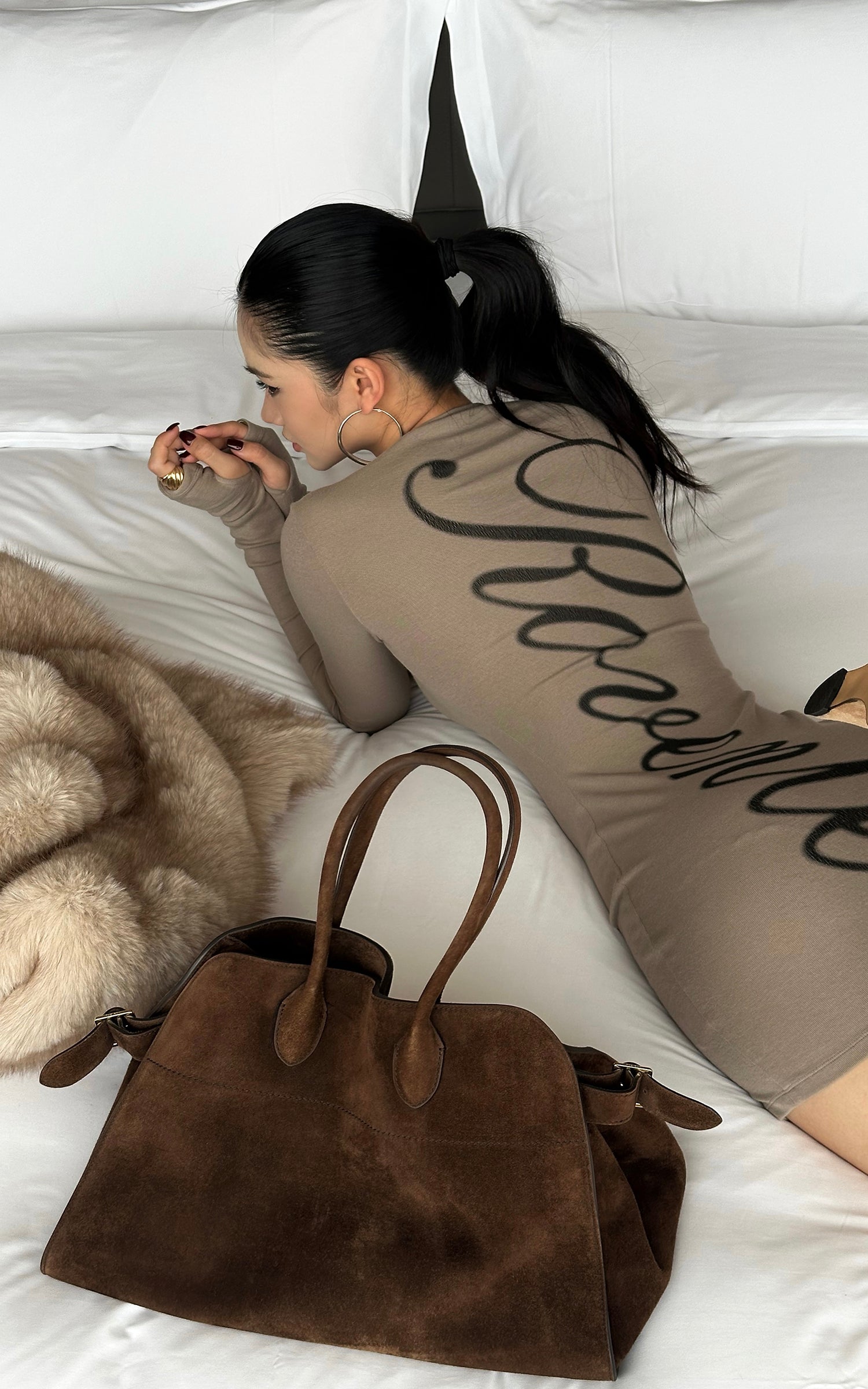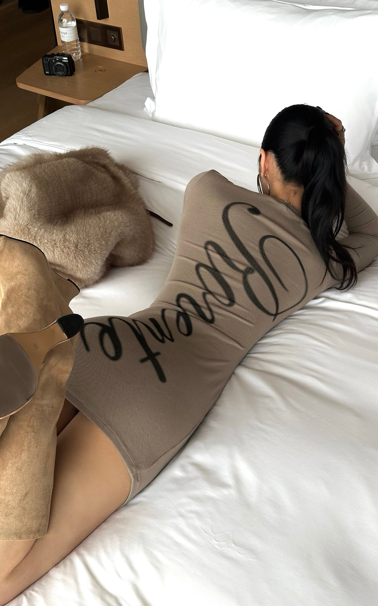 ROVENTE スクリプトバック ボディコン ニットミニドレス