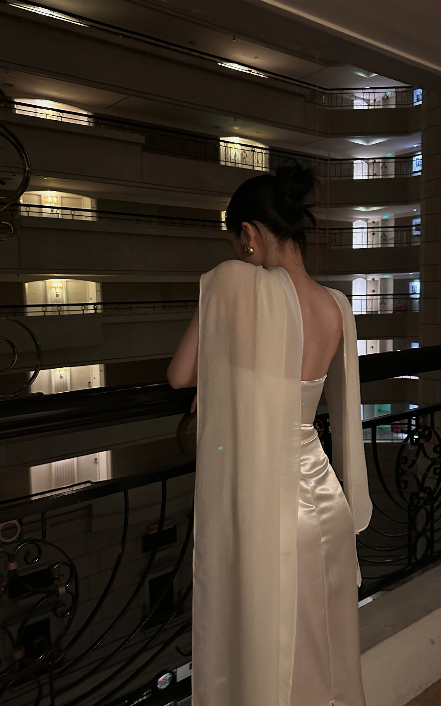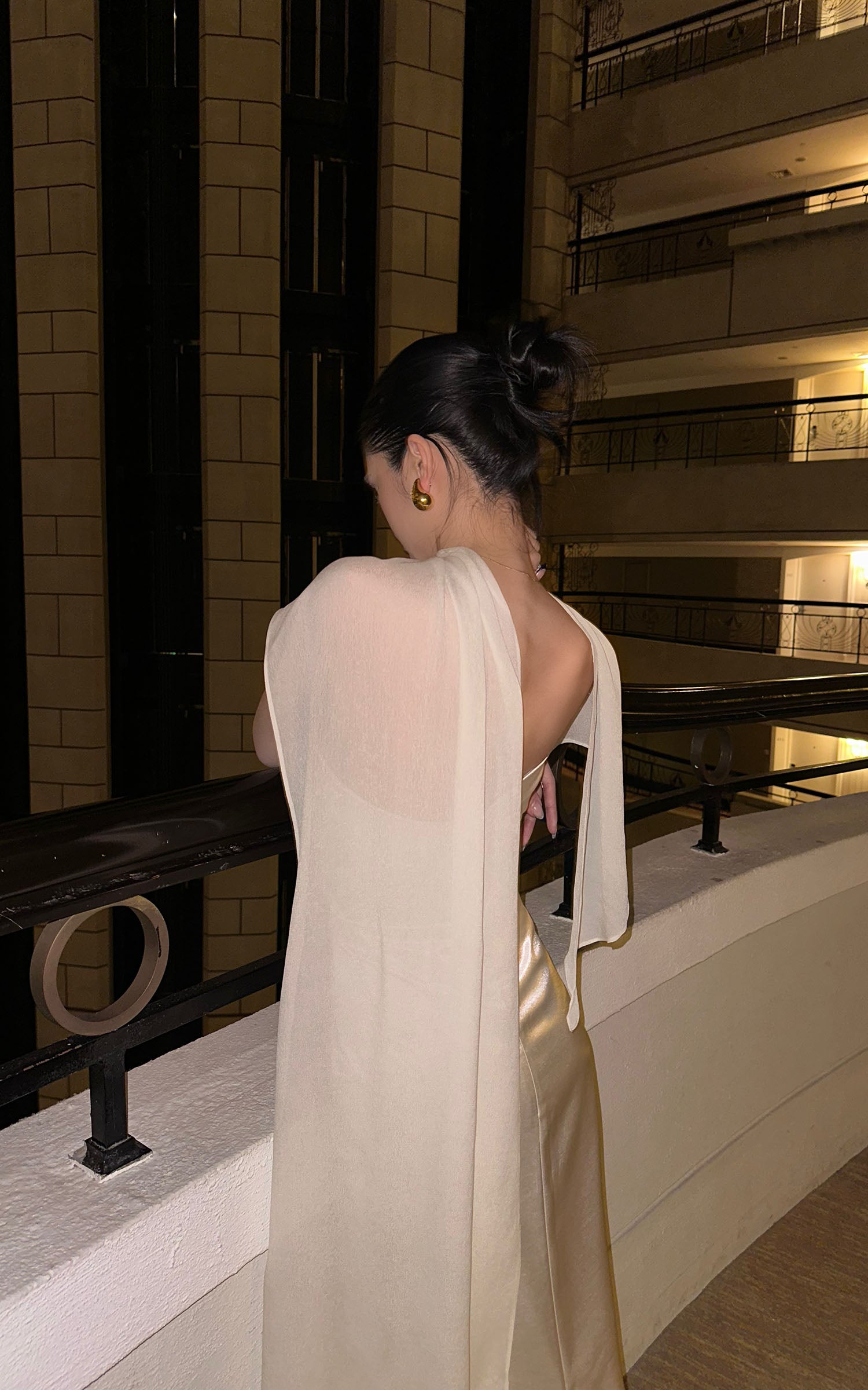 ROVENTE カットアウトドレープメタリックマキシドレス