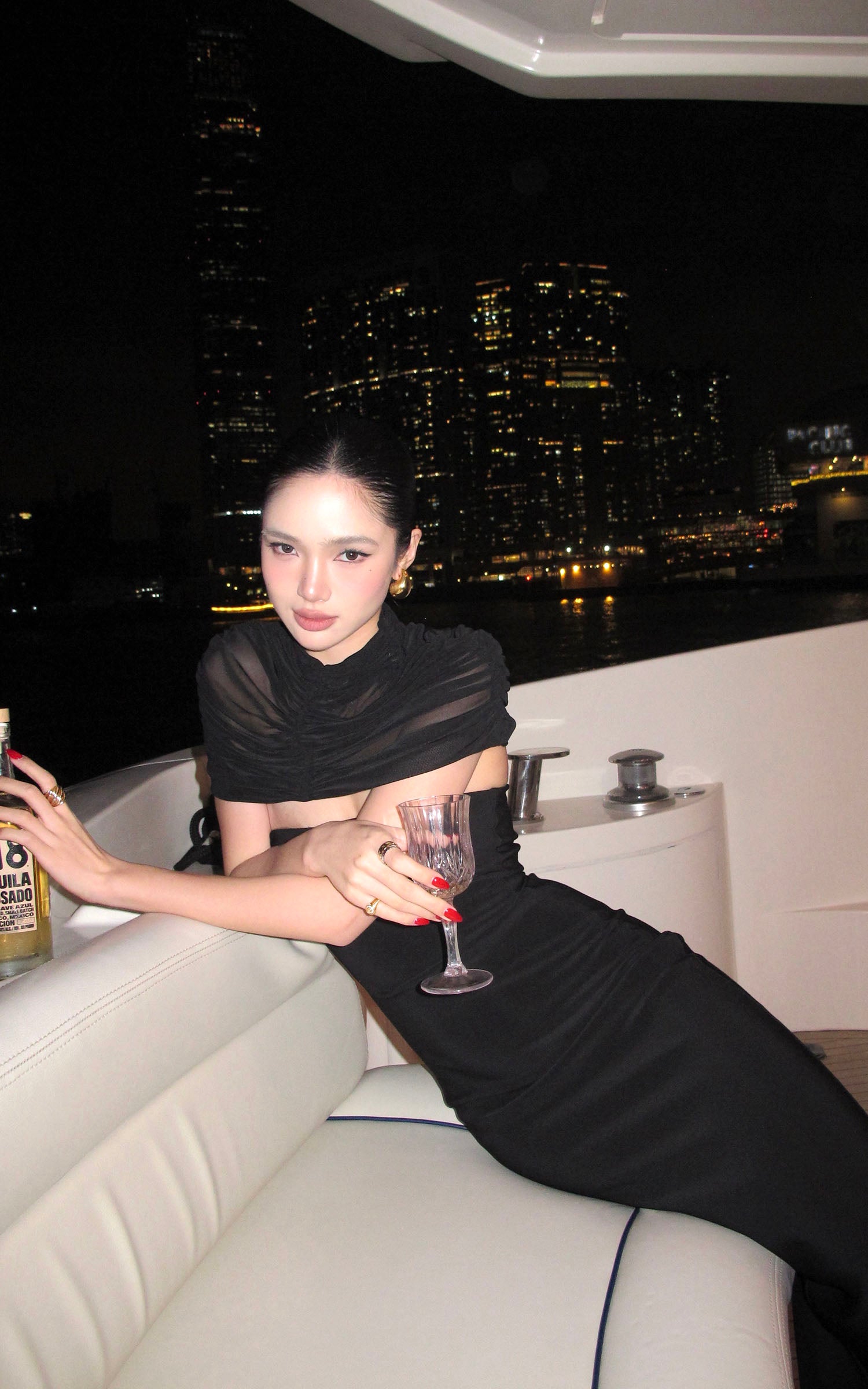 ROVENTE ディープVハルターボディコンシークインオープンバックマキシドレス