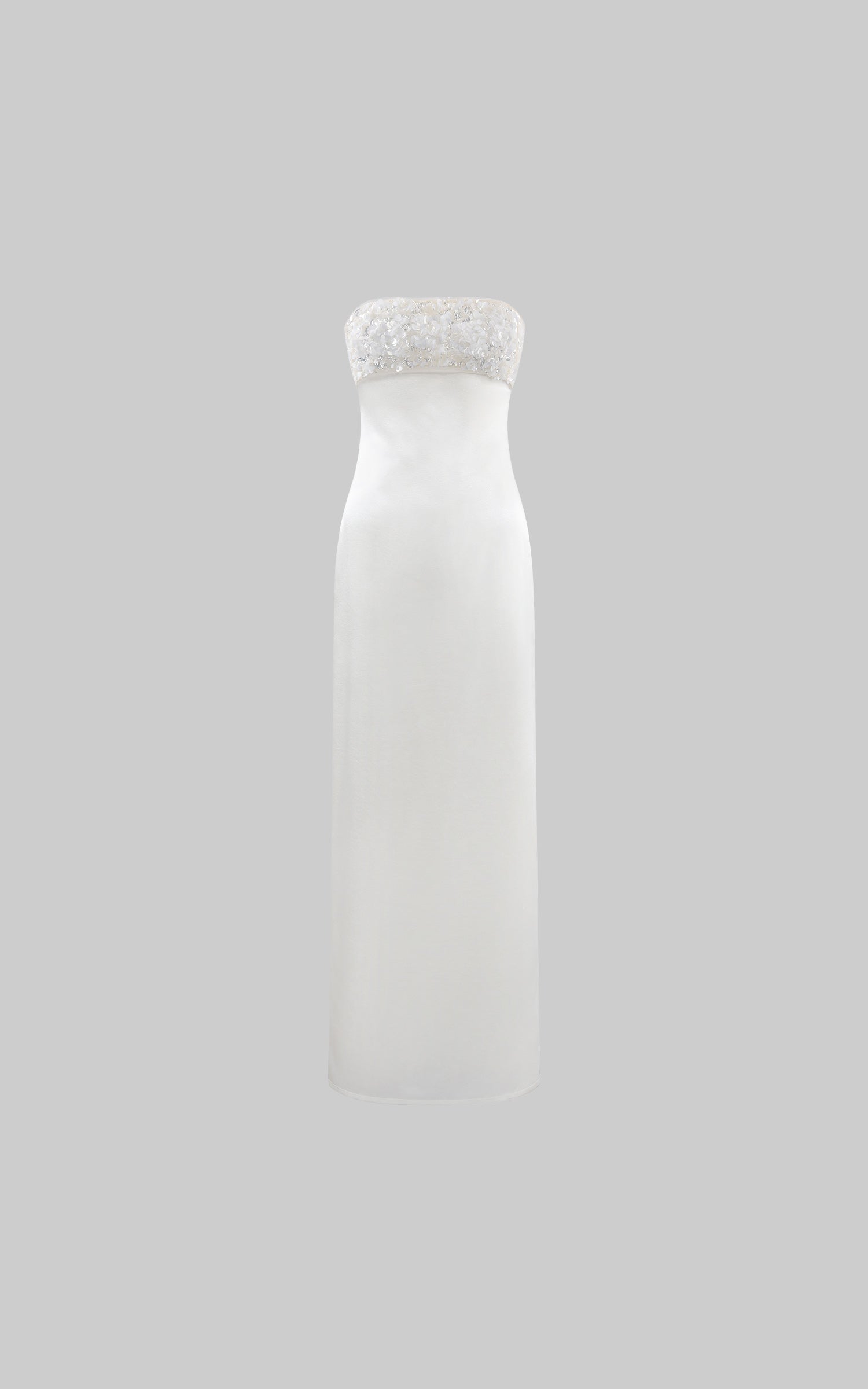 ROVENTE ストラップレスのスパンコール刺繍マキシドレス