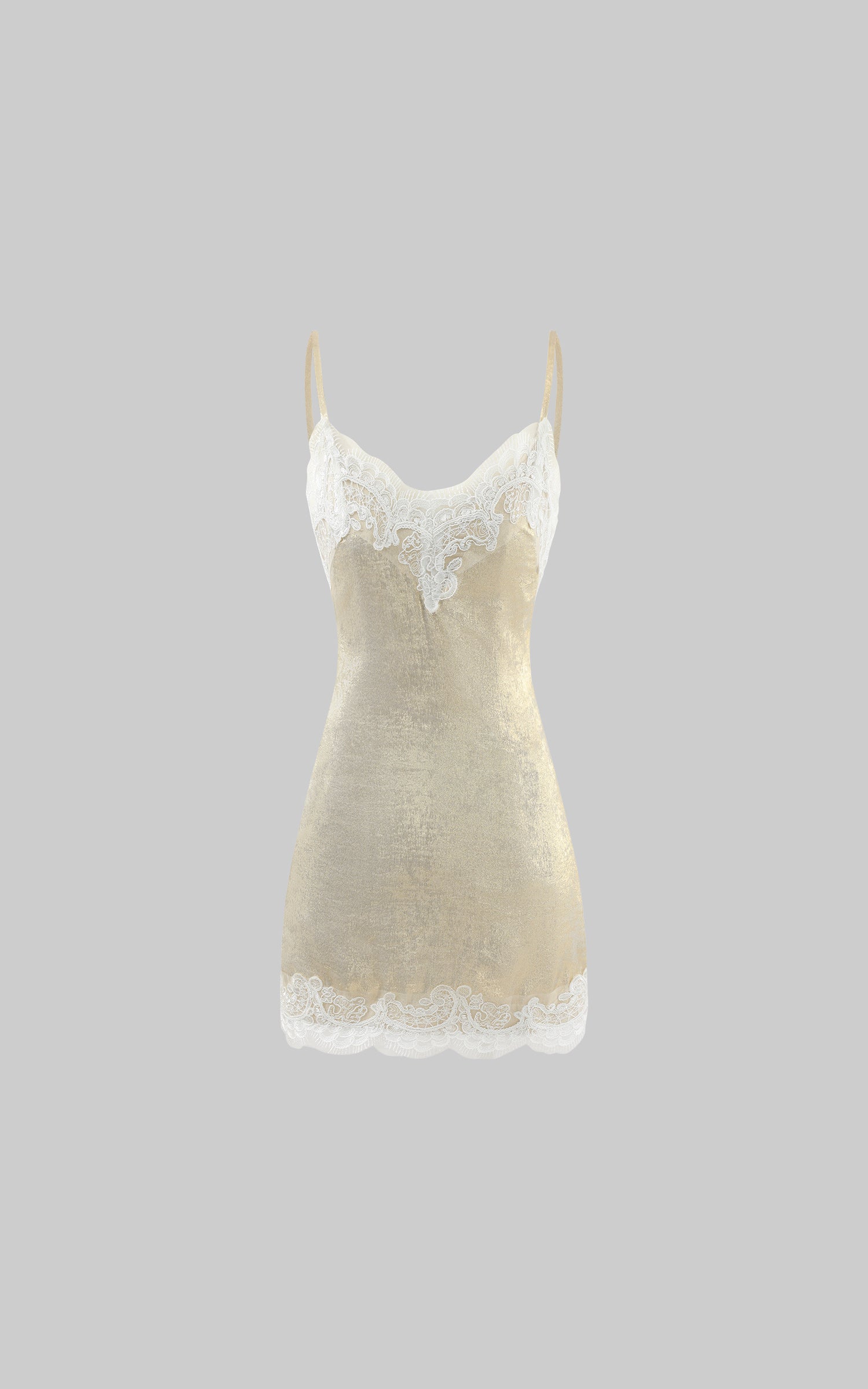 ROVENTE シマー レーストリム スリップミニドレス