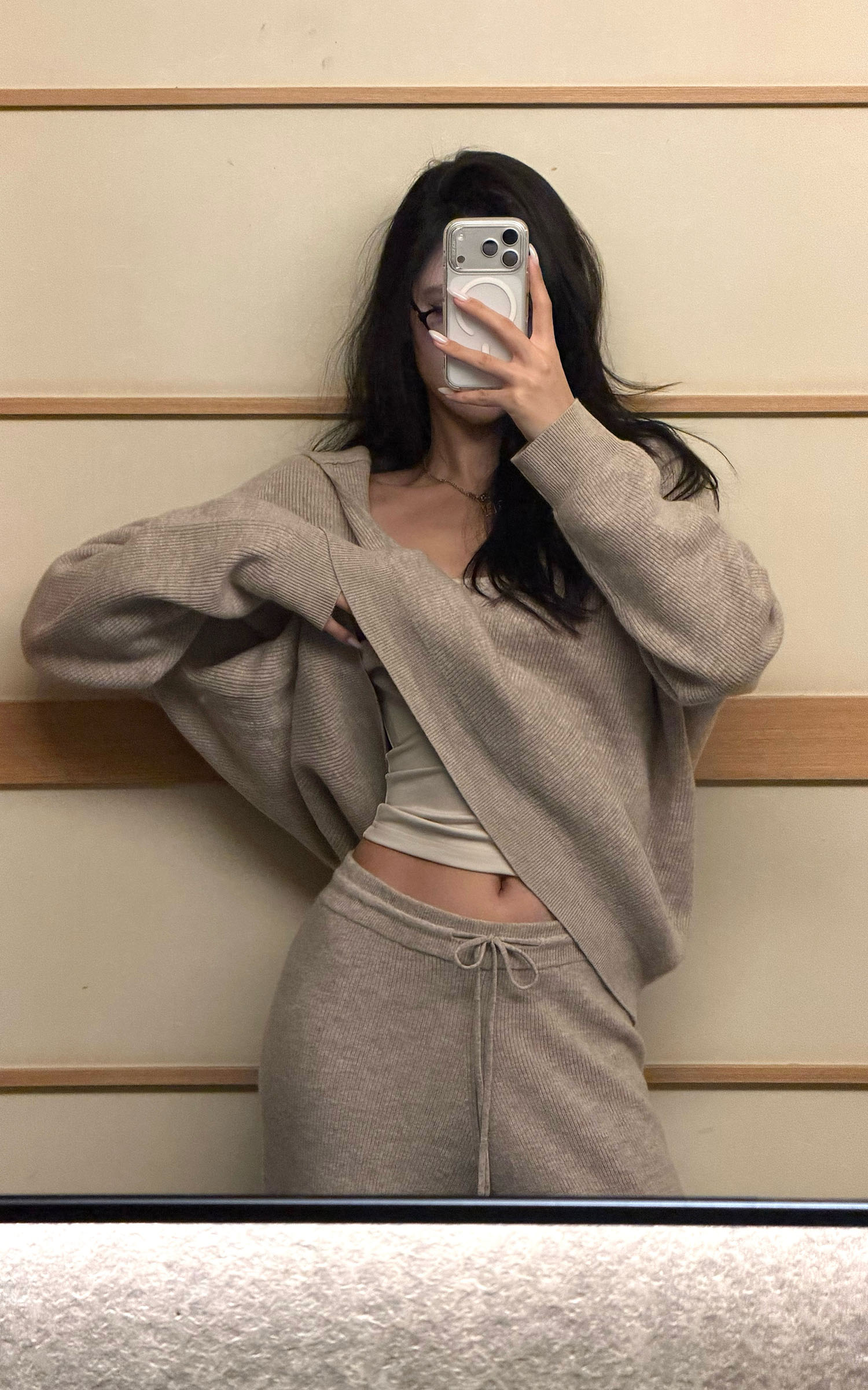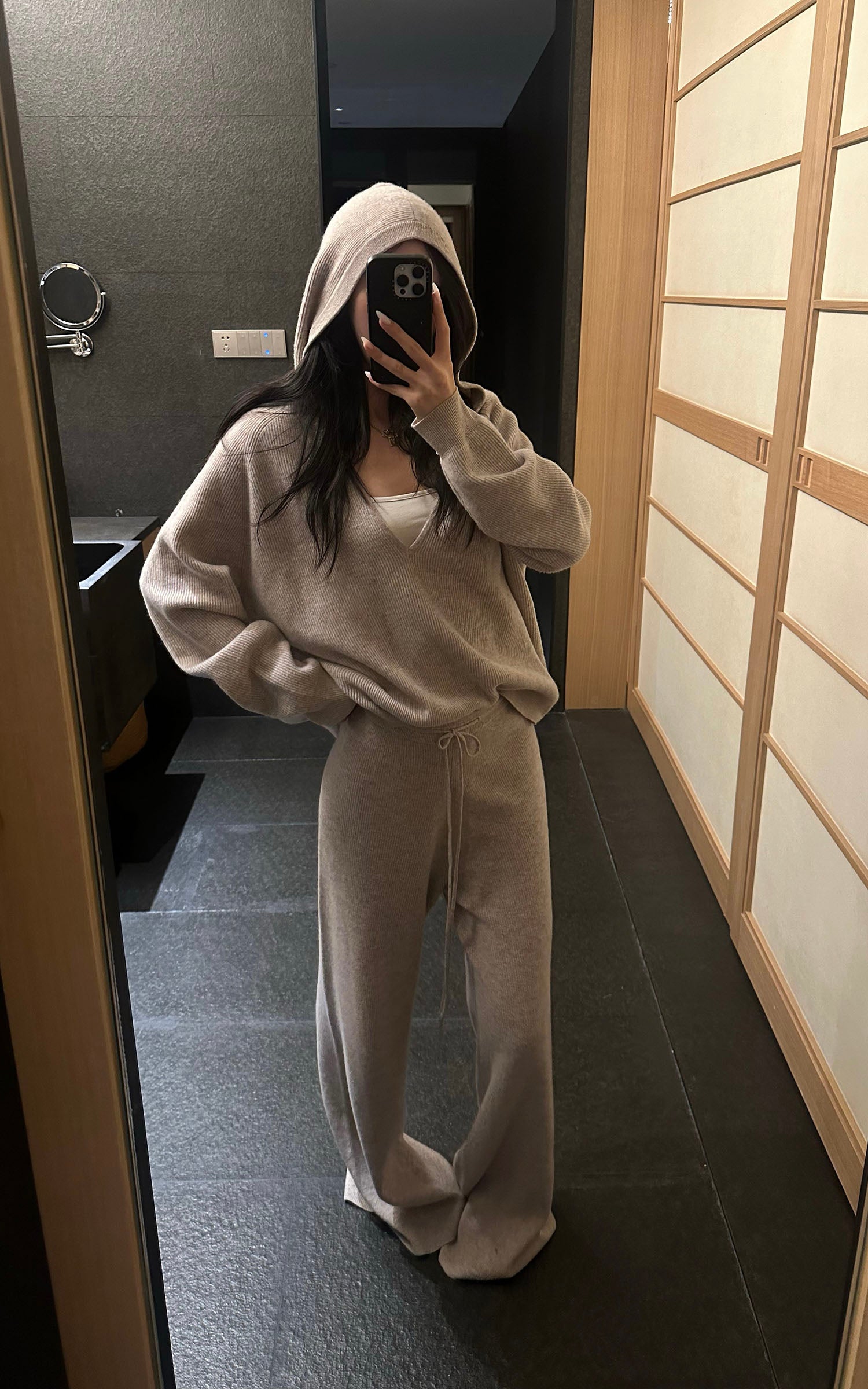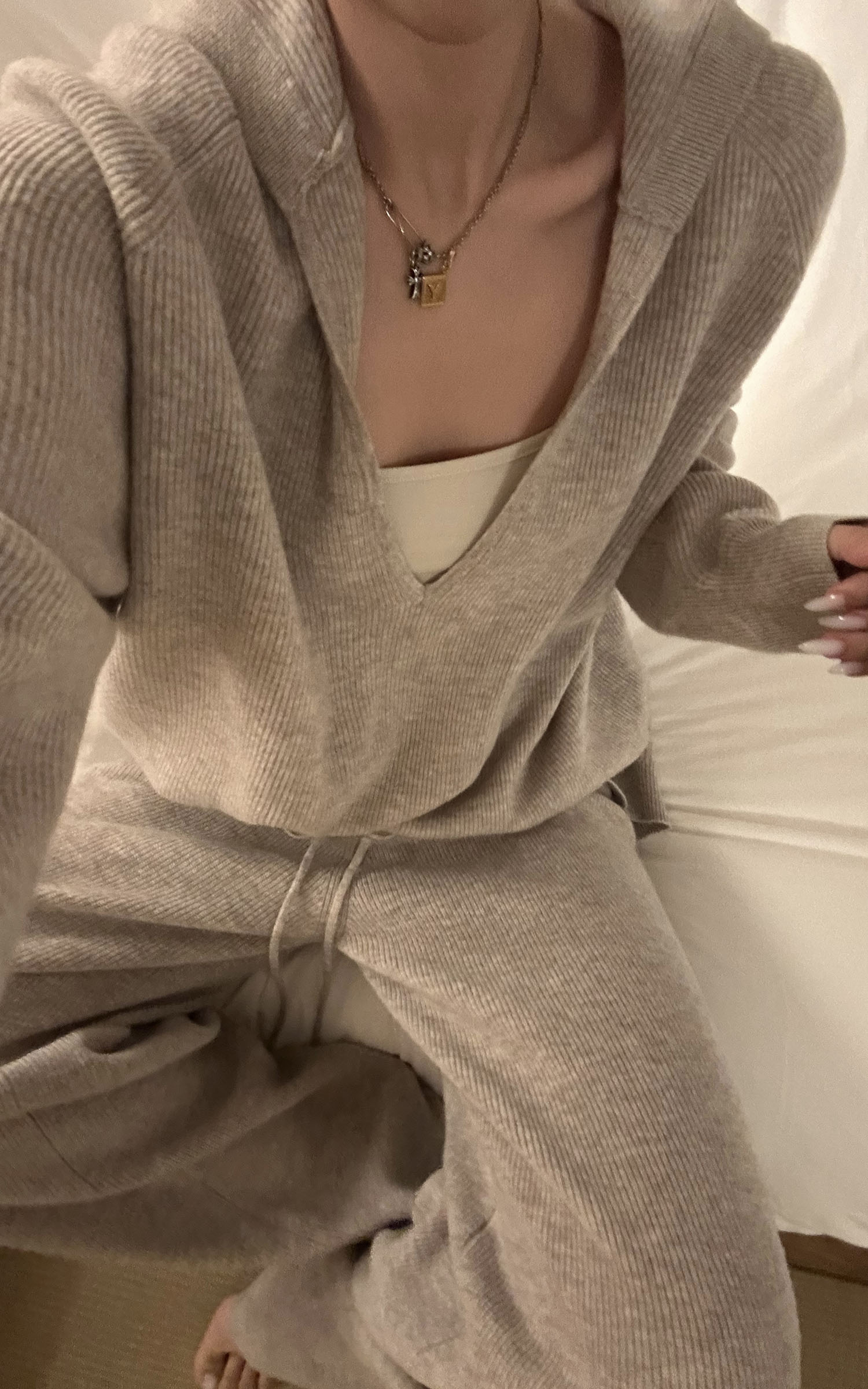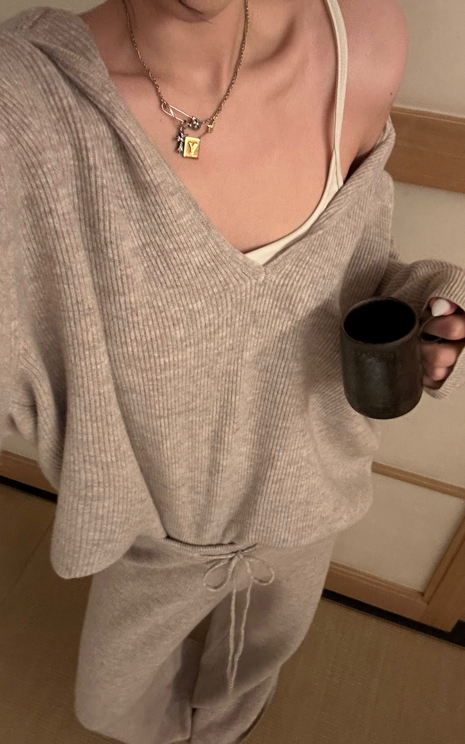 ROVENTE コージーリブニットフーディ & ワイドレッグラウンジパンツセット