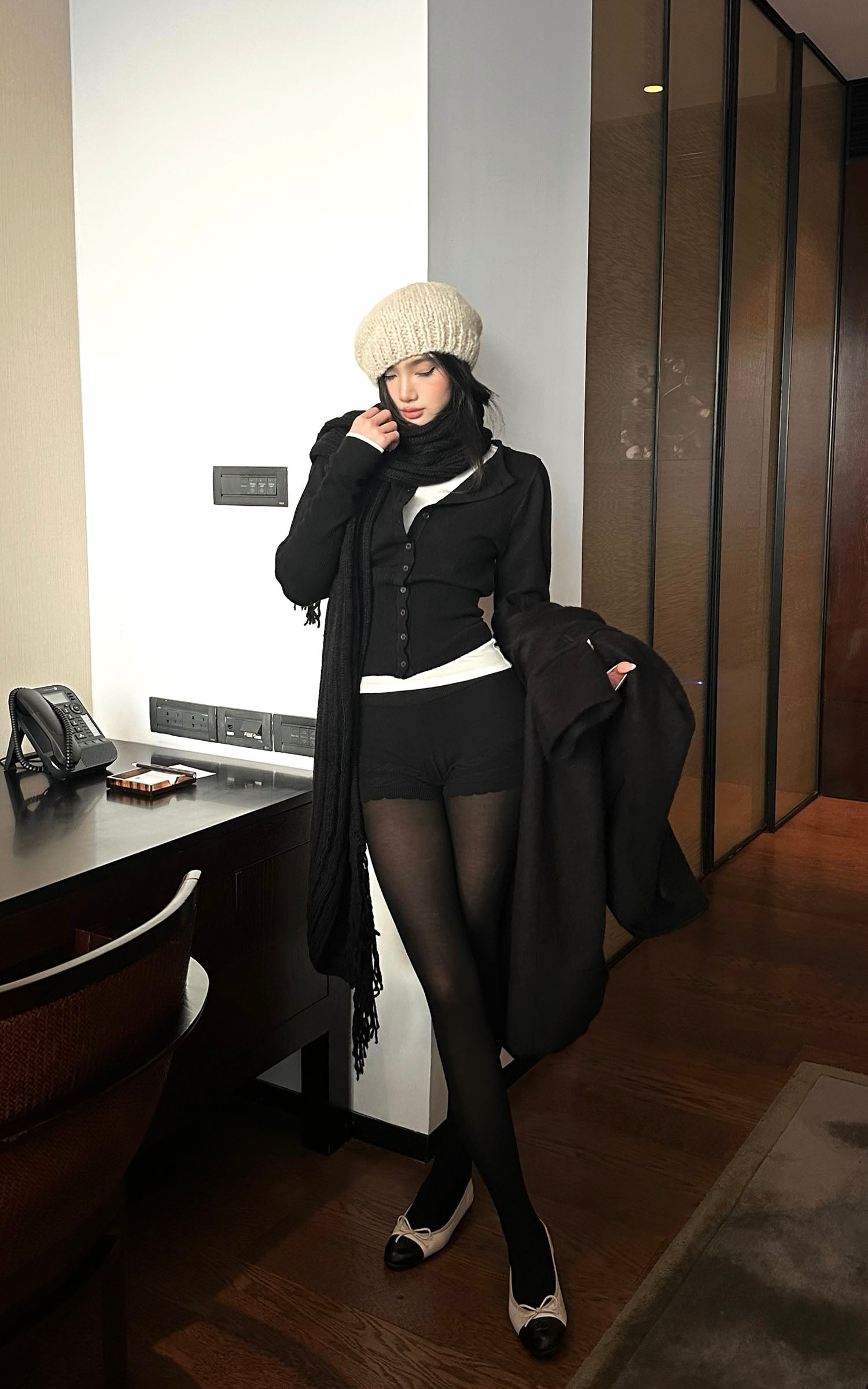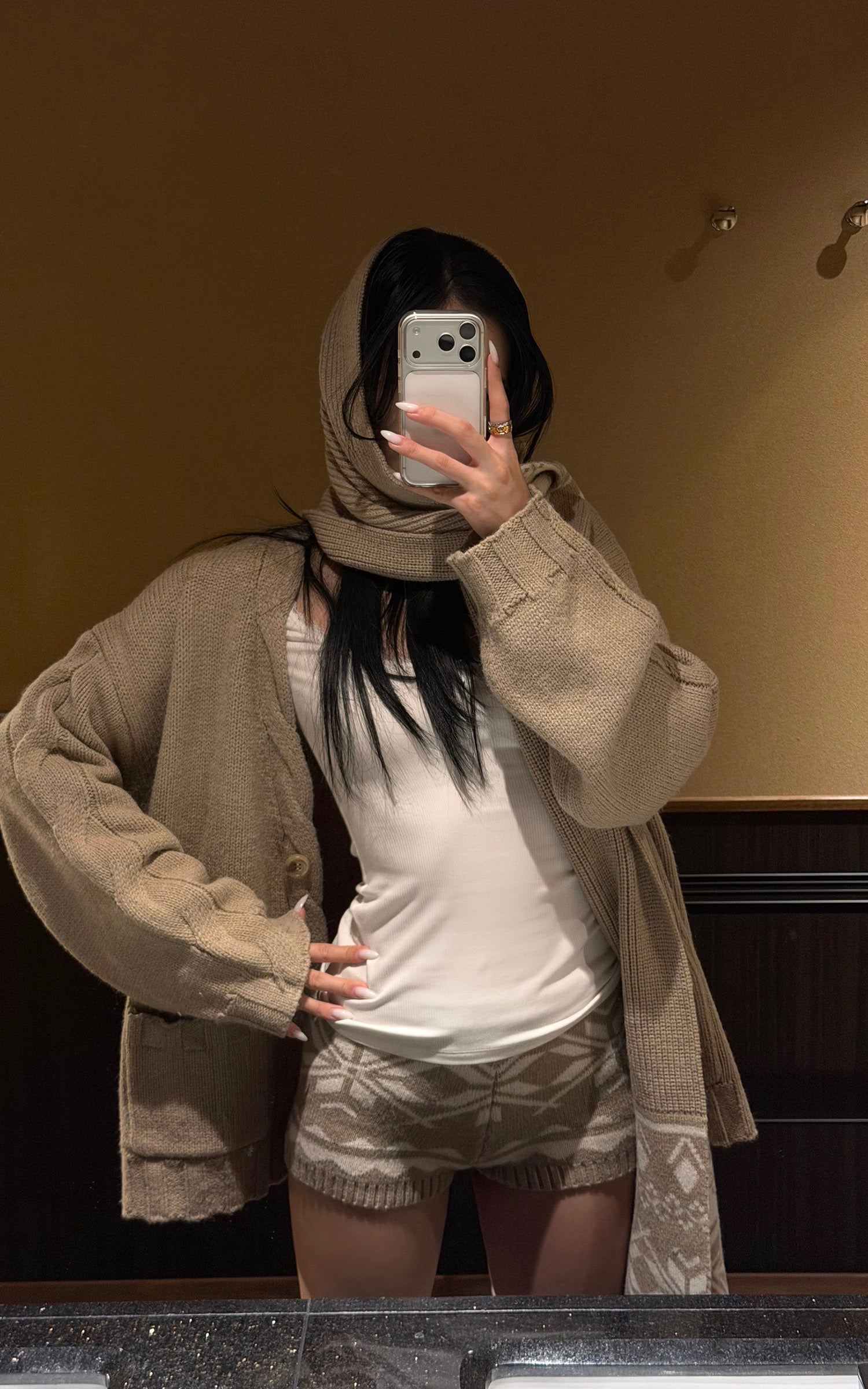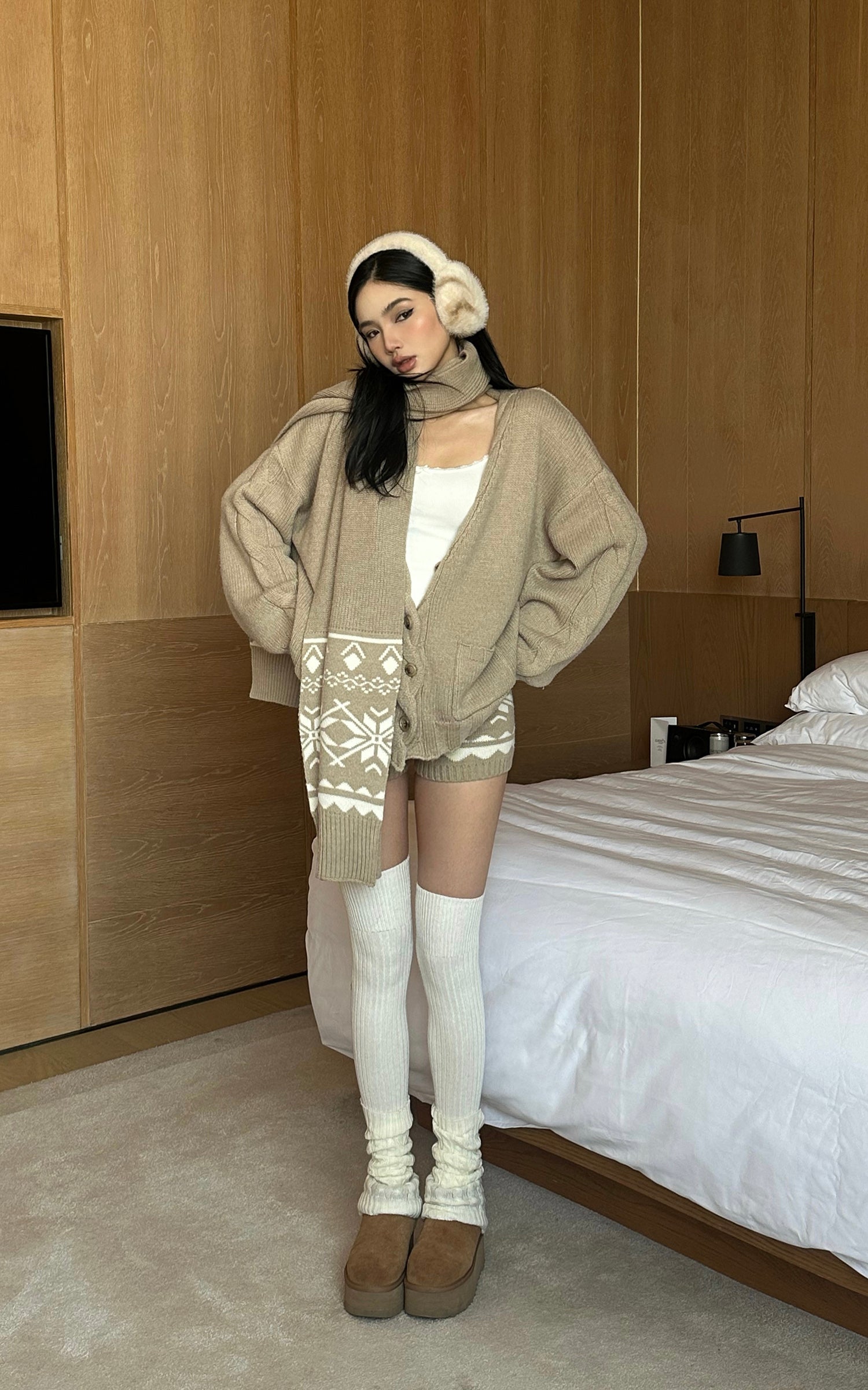 ROVENTE ノルディックジャカードニットカーディガンショーツとスカーフセット