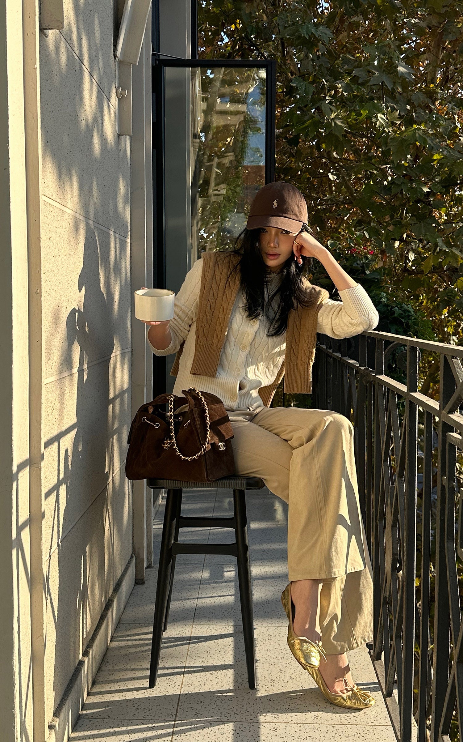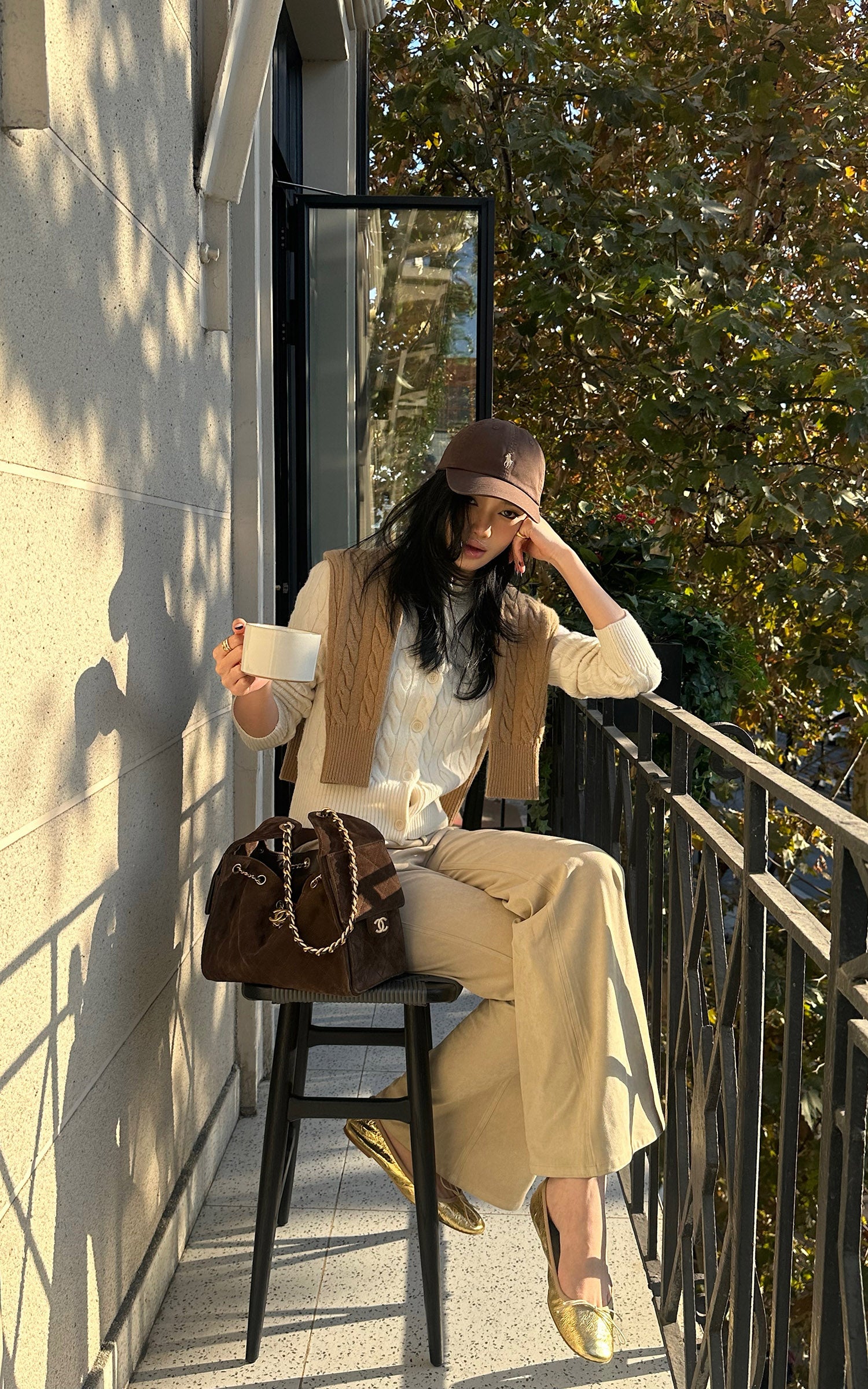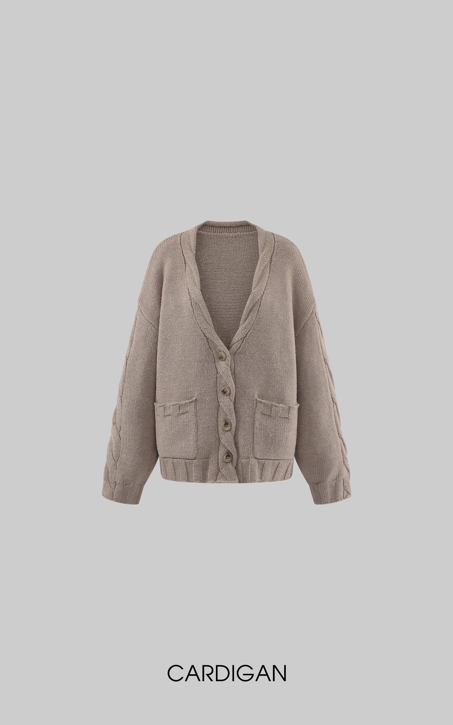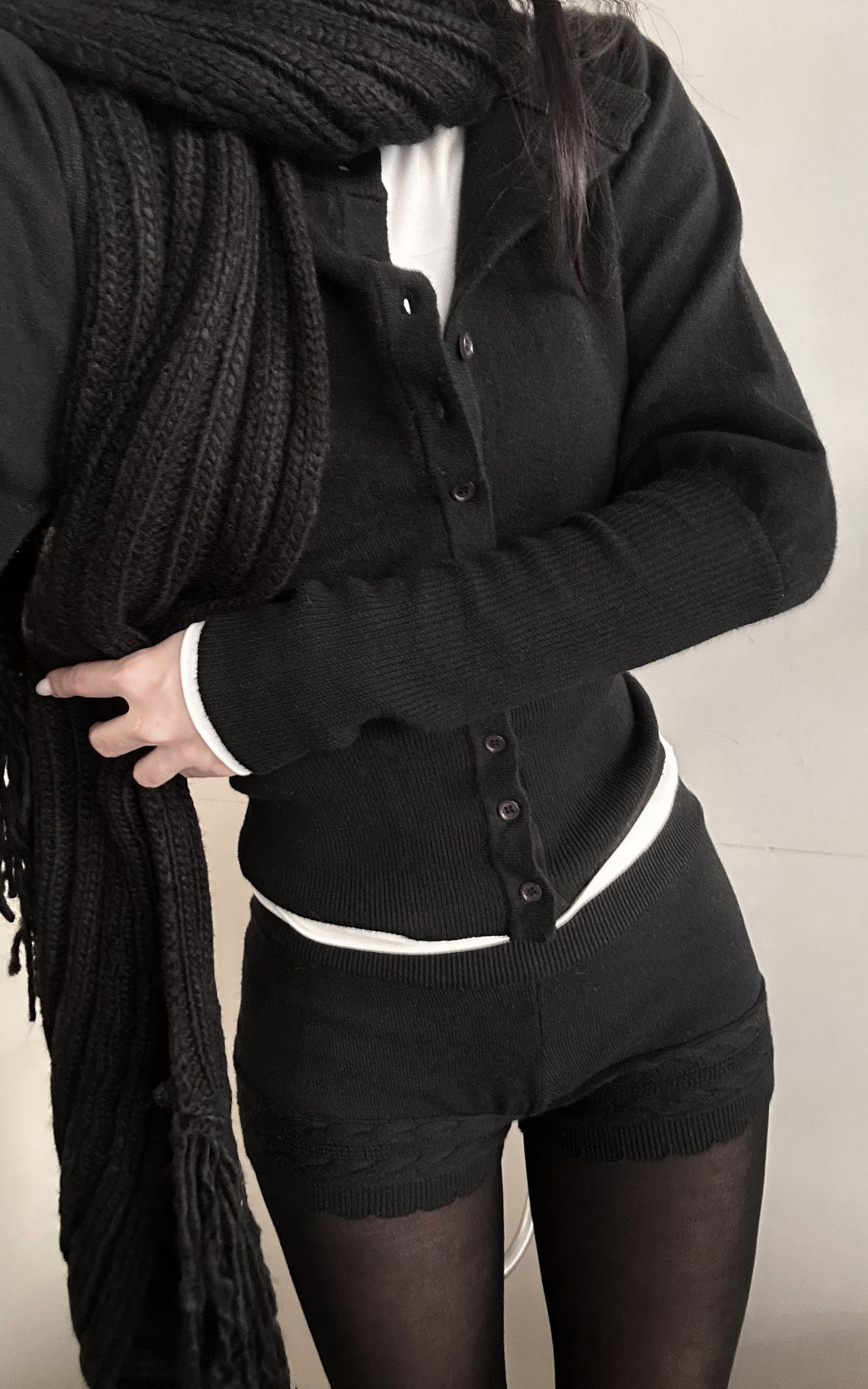 ROVENTE ケーブルニットカーディガン、ベスト、ショートパンツの3点セット